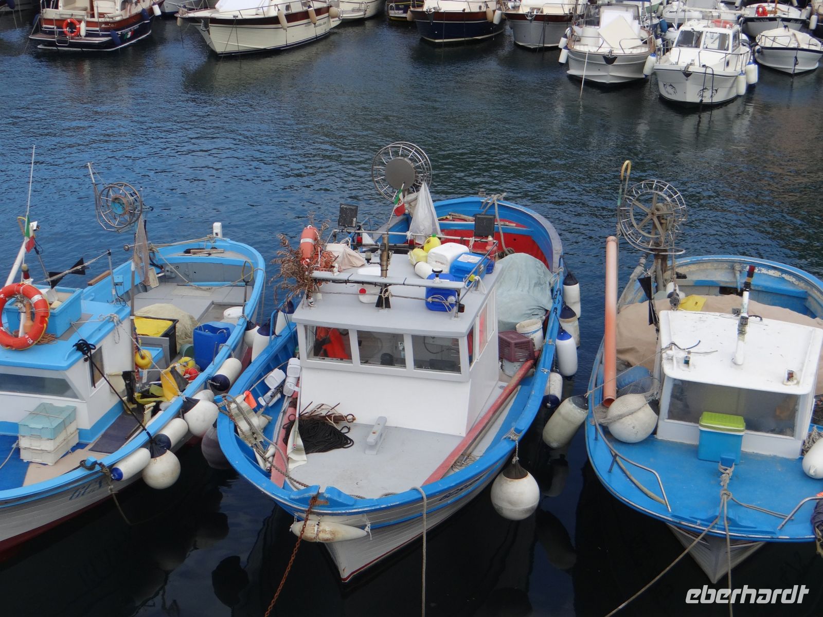 Dann erreichen wir Marina Grande, den Hafen der Insel. In der Hochsaison besuchen 20.000 Tagestouristen die Insel, 5.000 pendeln täglich für die Arbeit zwischen Festland und Insel. 12.000 Einwohner hat Capri. Viele finden hier keine Wohnung und sind gezwungen, aufs Festland zu ziehen. Die Situation kennen wir von Sylt.
