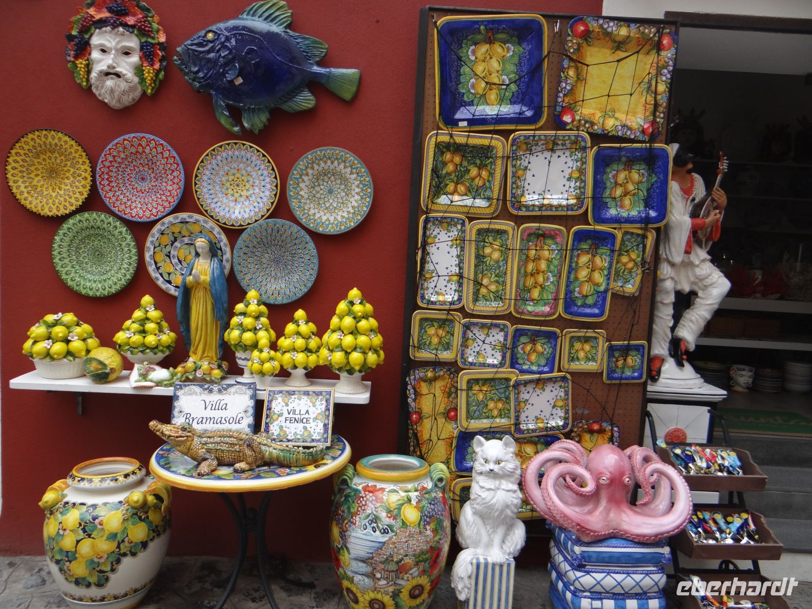 Positano ist vom Wasser her eine Ansammlung unzähliger Häuser in Pastellfarben, die ein malerisches Gesamtes ergeben. Das Panorama mit der gelb-grünen Kuppel der Kirche Santa Maria Assunta ist anziehend. Doch dieser Magnet ist so stark, dass dieser hübsche Ort aus den Nähten quillt. Alles drängt sich durch die engen Gassen, bleibt vor den zahlreichen Geschäften stehen, macht hier ein Foto, dort ein Selfie. Es gibt nur eine Straße, ansonsten Treppen, die nach oben führen und später auch nach unten.