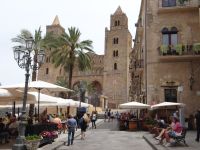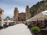 Der Muschelkalk ist vorherrschendes Baumaterial, mit einer warmen Farbgebung. Der Ort ist Bischofssitz wie Palermo und Monreale und hatte früher vier Eingangstoren, von denen noch der Zugang vom Hafen besteht. Im Zentrum die imposante Kathedrale, auch ein UNESCO-Weltkulturerbe mit seinen beeindruckenden byzantinischen Mosaiken und normannischer Architektur. Von hier aus läuft man ein paar Schritte zur Spiaggia, dem kleinen Strand, auf dem schon Liegen und Sonnenschirme auf die ersten Gäste warten.