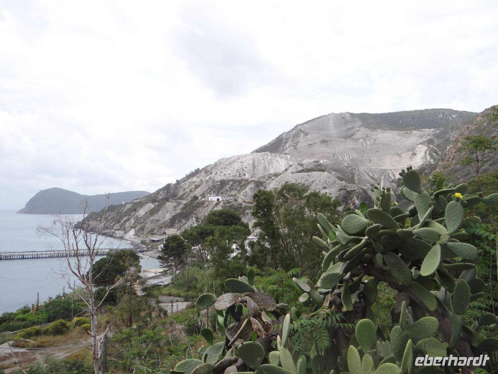 Im Nordosten der Insel liegt der Vulkan Pilato. Er besteht fast vollständig aus Bimsstein, einem glasigen Vulkangestein, dass durch seine vielen Poren leichter als Wasser ist.