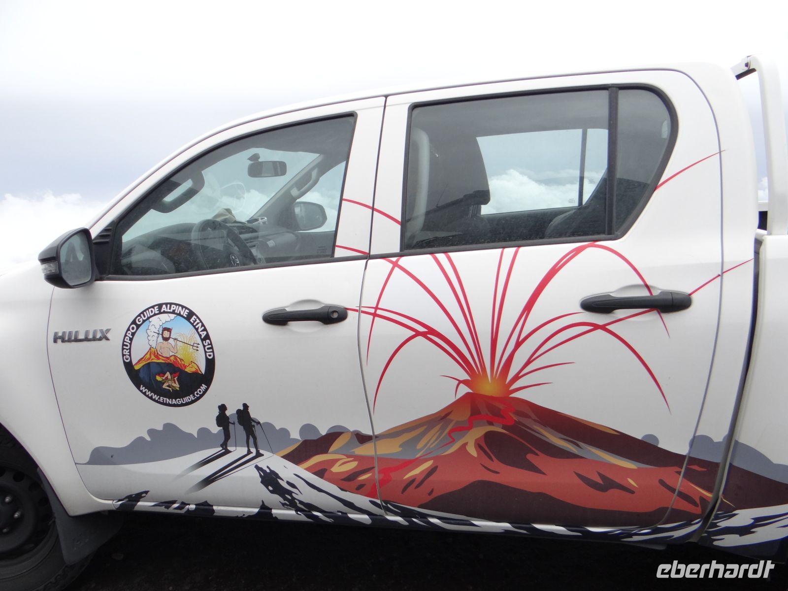 Nach einer kurvenreichen Fahrt sind wir an der Seilbahnstation angekommen. Von hier aus geht es in Etappen hoch zum größten aktiven Vulkan Europas