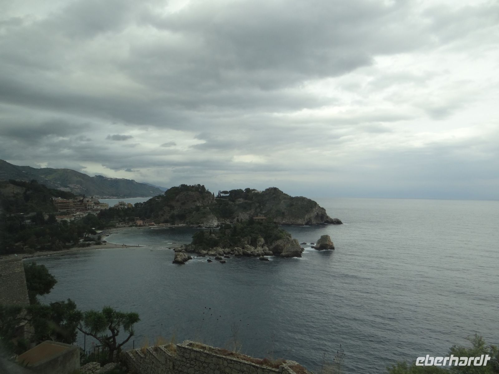 Die Hölle lassen wir hinter uns, auf in den Himmel, nach Taomina; der Erholungsort der Griechen soll auch unserer sein. Der Bus windet sich die Kurven hinauf und lässt uns mitten vor dem Stadttor aussteigen. Von hier aus ist ein Katzensprung zum Wahrzeichen der Stadt, dem griechisch-römischen Theater aus dem 3. Jahrhundert v. Chr. Der Blick aus dem Zuschauerrund geht über die Küste zum Ätna. Hier konkurrierten Bühnengeschehen und Landschaft ganz offensichtlich miteinander. Da die Aufführungen nachmittags stattfanden, denn Bühnenlicht gab es nicht, richtete man das Bauwerk nach dem kühlenden Wind aus, der vom Meer hinaufsteigt.