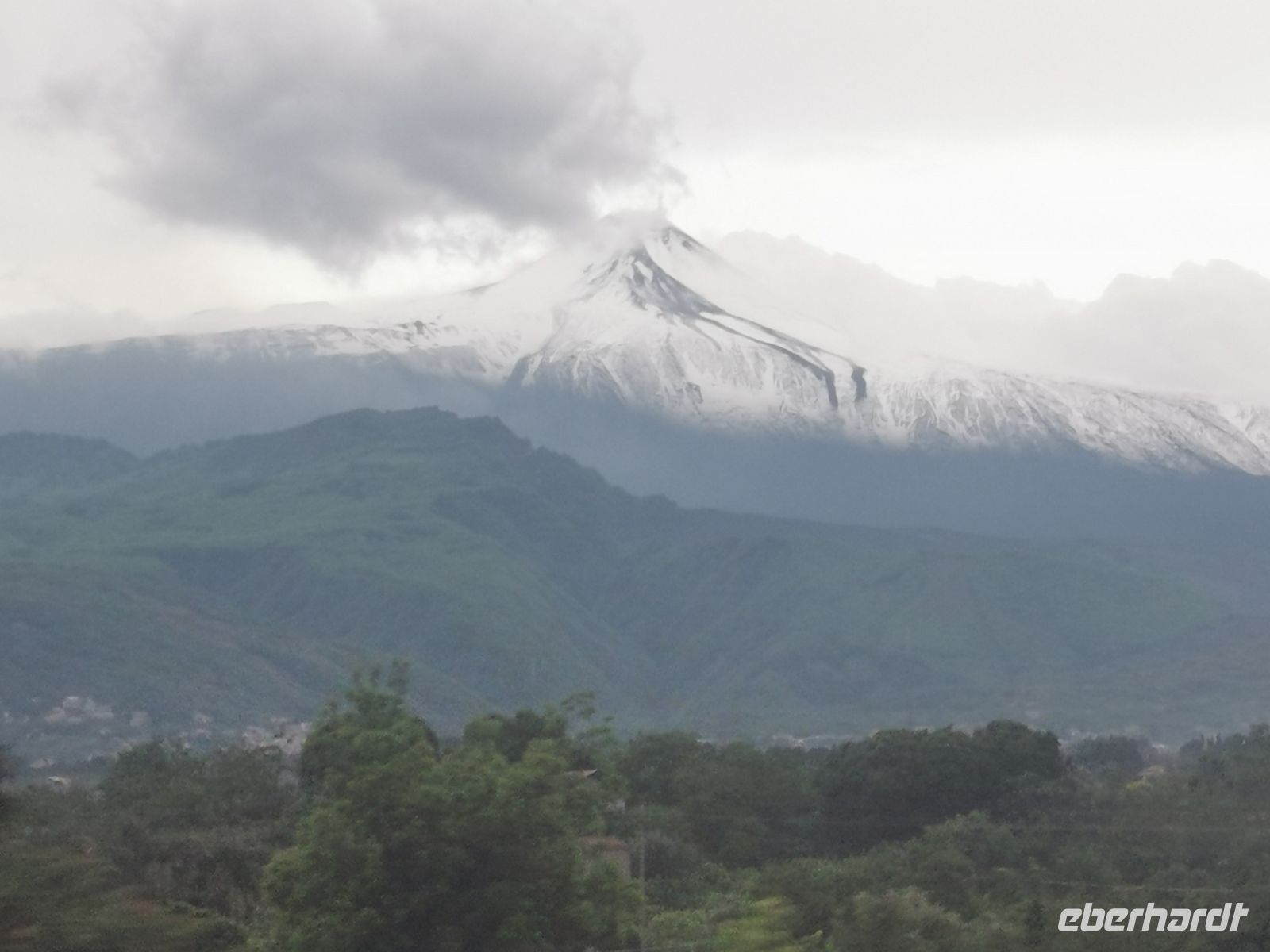 Es ist nicht zu glauben – die Wolken um den Ätna lichten sich, oben liegt Schnee! Da grüßt uns dieser Vulkanriese doch tatsächlich noch zum Abschied, was uns wahrlich in Verzücken setzt. Was für ein schönes letztes Foto und ein toller Schlusspunkt, passend zu dieser vollen Erlebnisreise zu den Vulkanen und Inselperlen.