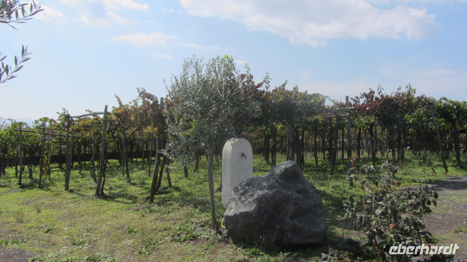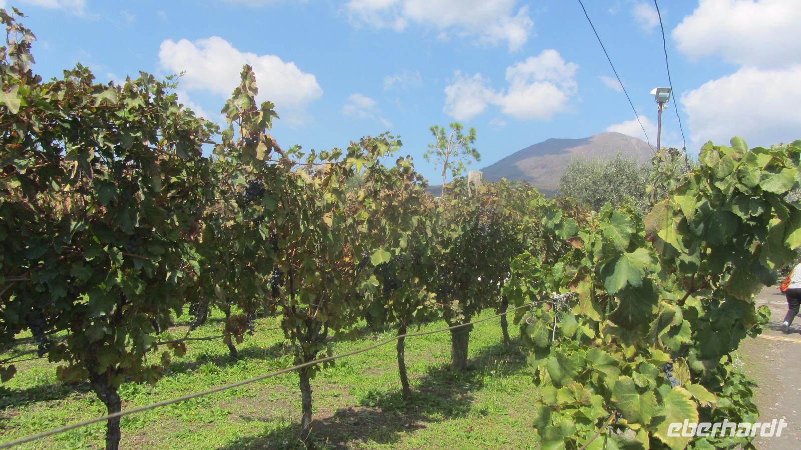 Unsere Mittagspause verbringen wir auf einem herrlichen Weingut, wo wir zuerst bei einer kleinen Führung mehr über den Weinanbau erfahren und anschließend verschiedene Weine, einen Grappa und einen Sekt verkosten. Auch das Essen ist schmackhaft und so lassen wir es uns beim Blick auf den Vesuv richtig gut gehen.