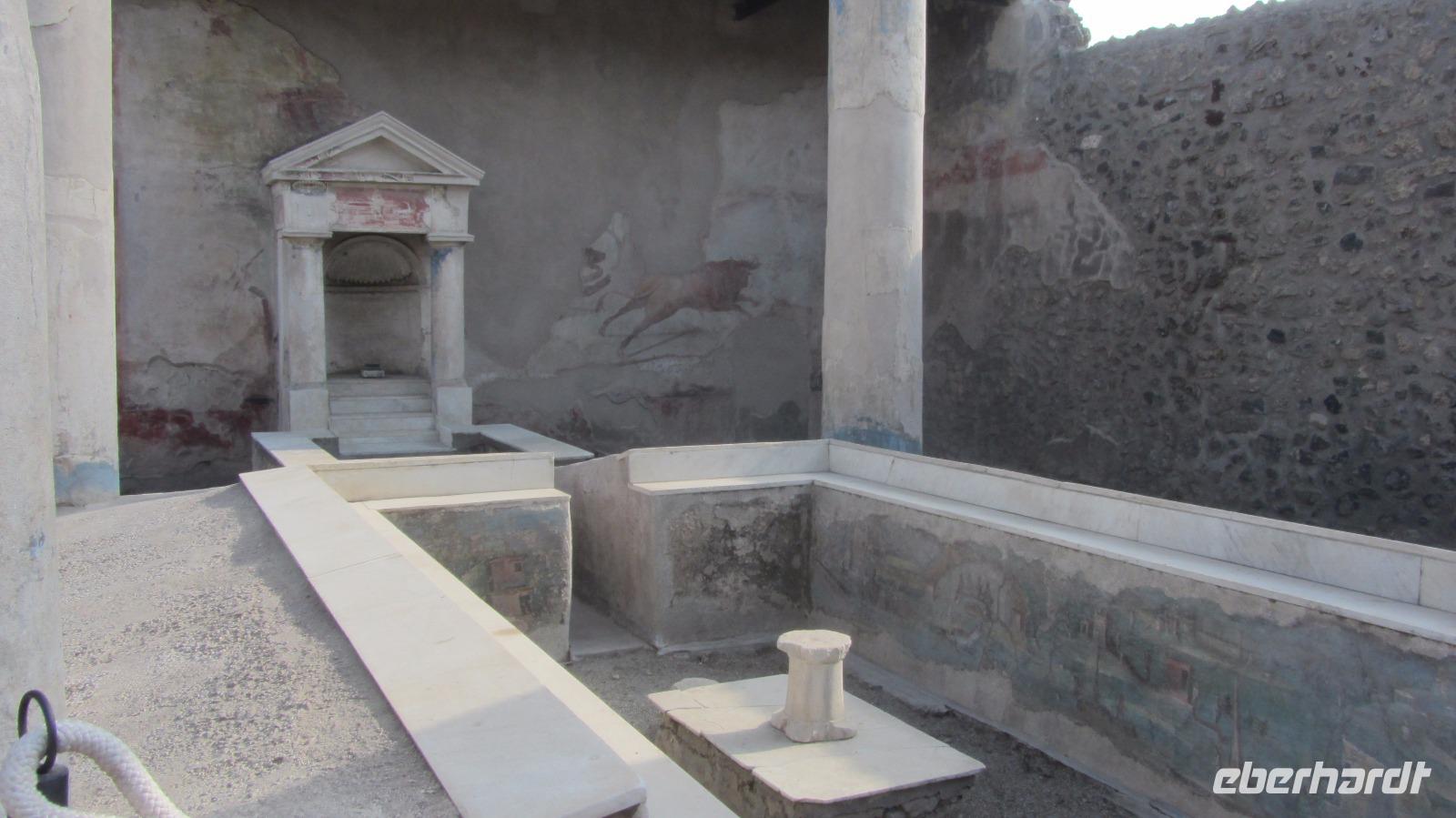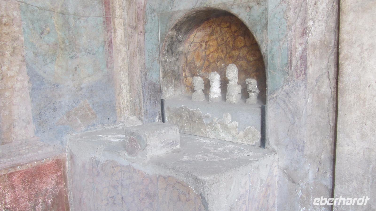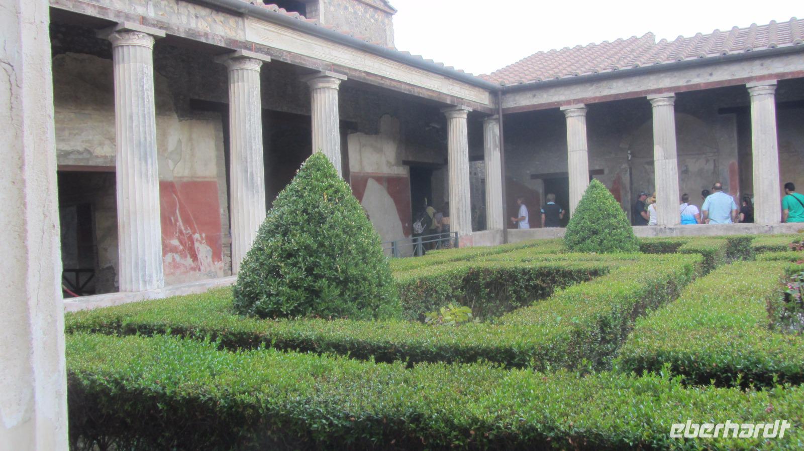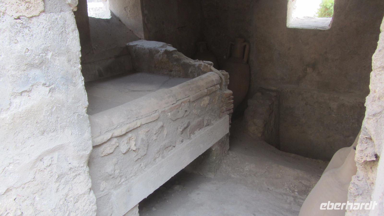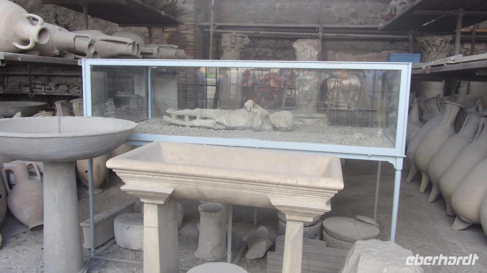 Nun steht noch Pompeji an - die versunkene Stadt. Durch den Wein sind die Füße heute schon etwas schwer, aber durch Angelos lebendige Erzählungen können wir uns gut vorstellen, wie es hier einmal ausgesehen hat. 79 n.Chr. wurde die Stadt von den Trümmern des Vesuv-Ausbruchs vergraben und dann nach und nach wieder ausgegraben. Wir sehen ein Thermalbad, ein früher prächtiges Wohnhaus, die gut erhaltenen Straßen und immer wieder entdecken wir neue Hinweise auf das damalige Leben.