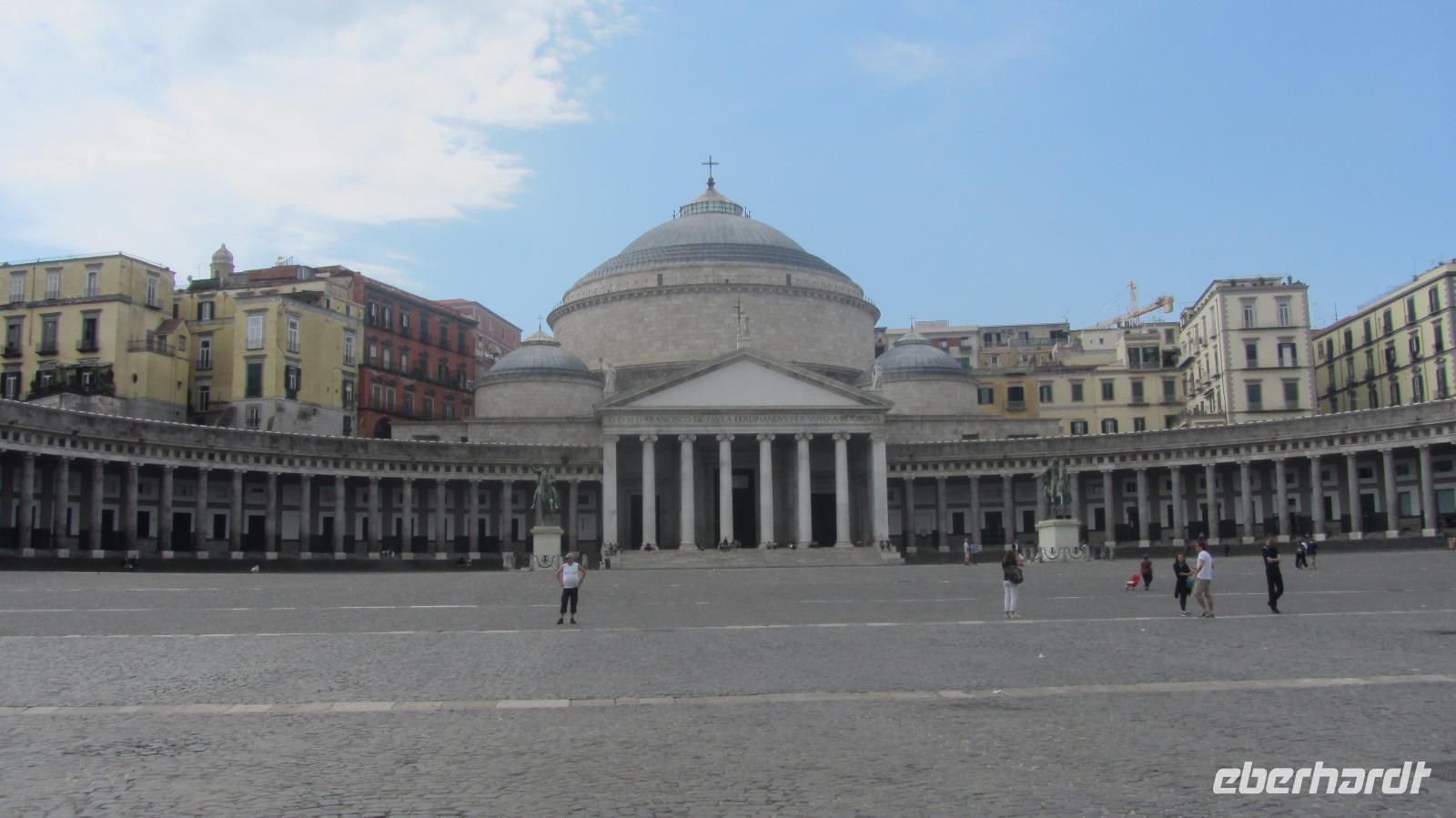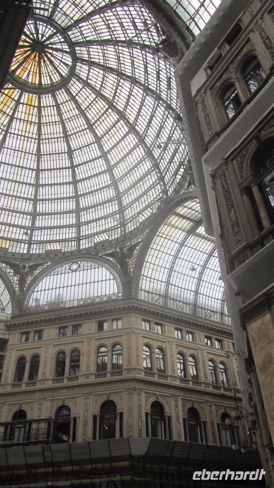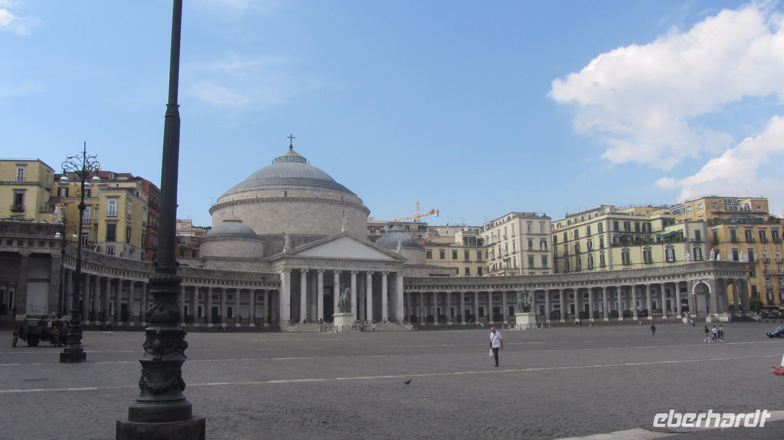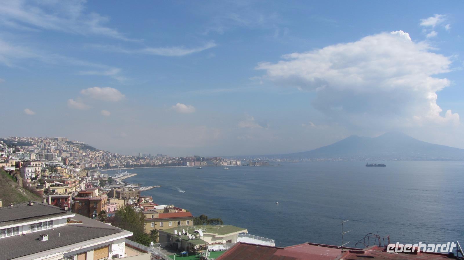 Heute steht die Metropole Neapel auf dem Plan. Wir sind gespannt, was uns erwartet. Wir fahren dieses Mal mit dem Circumvesuviana in Richtung Neapel. Unser Zug startet in Sorrent und bringt uns nach ca. 1 Stunde Fahrt nach Neapel, wo Mathias auf uns wartet. Da heute die Busse und die Metro in Neapel streiken, haben wir kurzfristig einen Bus organisiert, der uns am Vormittag die entfernteren Höhepunkte zeigt. Camillo ist ein besonderer Busfahrer, denn er hat Spaß dabei, uns auch abgelegene Ecken der Stadt zu zeigen und wir fahren durch Gassen, die wir sonst nie sehen würden. Immer wenn er einen Stau sieht, fährt er einfach in eine andere Richtung oder Gasse. Neapel ist die „Stadt, deren Häuser mit Wäscheleinen zusammengehalten werden" heißt ein Sprichwort. Wir sehen diese engen Gassen, wo überall die Wäsche hängt. Mit der Besichtigung starten wir spontan am „hässlichsten" Platz der Stadt und besuchen die Kirche Santa Maria del Carmine auf dem Piazza Mercato. Anschließend fahren wir entlang der Küste mit fantastischen Aussichten und enden am Castello Nuovo. Von der kleinen Insel spazieren wir entlang der Küste bis zum Piazza Plebiscito. Vor dem Königspalast befindet sich nicht nur der berühmteste Platz in Neapel, sondern auch der größte und repräsentativste. Durch das berühmte Café Gambrinus und die berühmte Einkaufspassage Umberto, die auch an das berühmte Mailänder Einkaufscenter erinnert, spazieren wir weiter zum Theaterhaus, was aktuell leider eingerüstet ist und gönnen uns hier einen schnellen Kaffee.