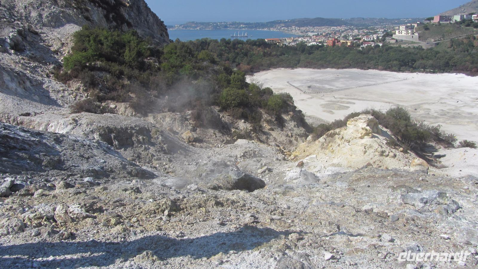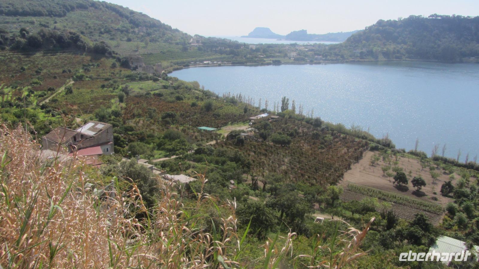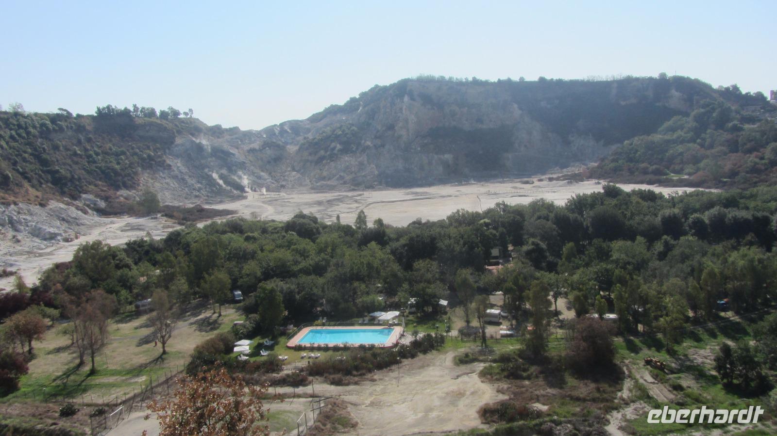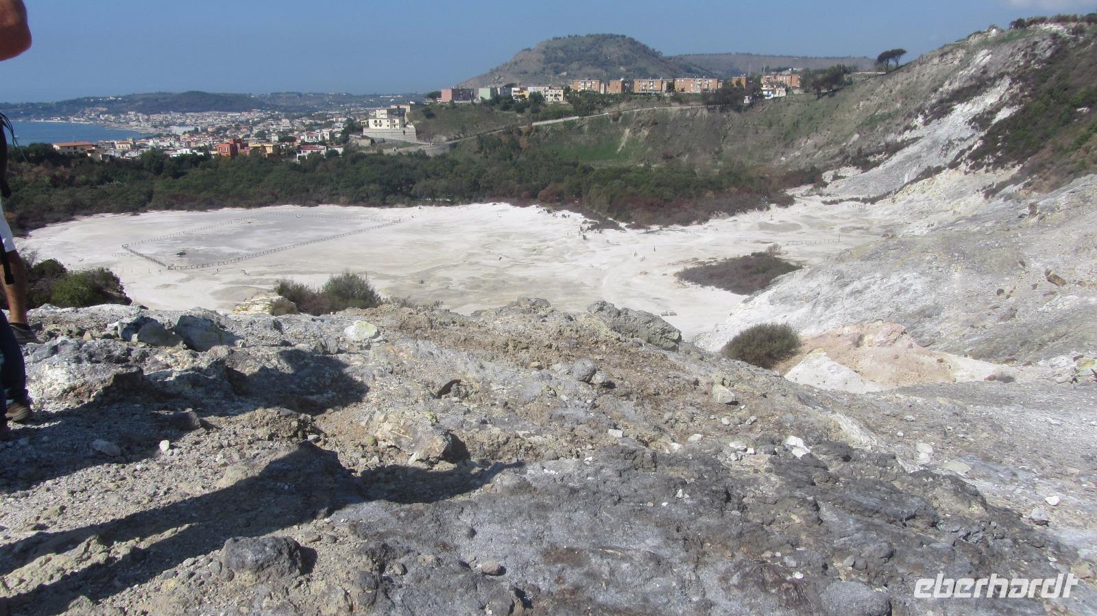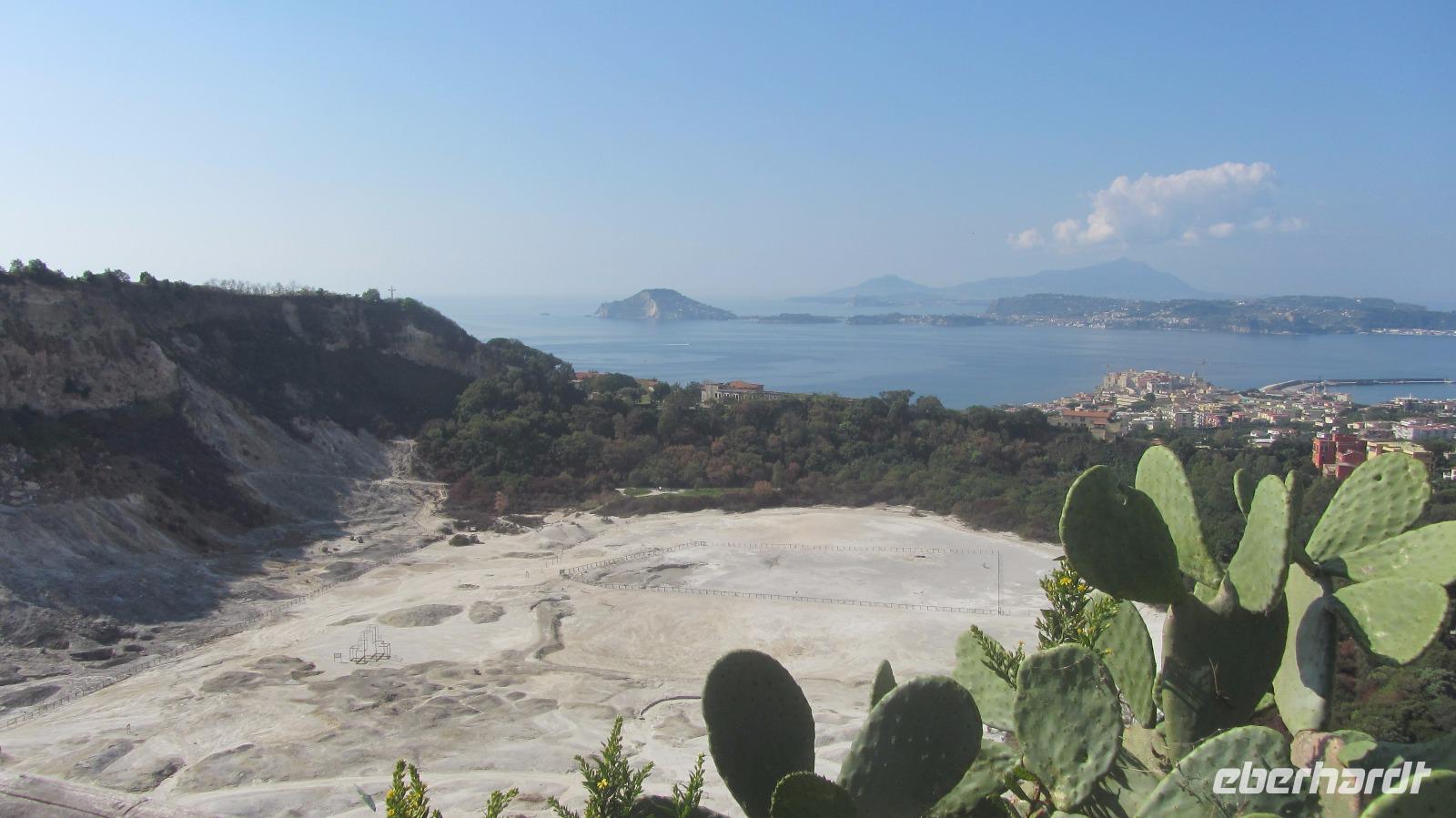 Zum heutigen Tag der deutschen Einheit und trotz kurzer Nacht starten wir wieder in Richtung Neapel. Unterwegs begrüßen wir wieder unseren Reiseleiter Mathias. Heute sind unser Ziel die Phlegräischen Felder mit dem Vulkan Solfatara. Wir umrunden Neapel und haben noch einmal Blick von der anderen Seite auf die Stadt. Als wir ankommen, müssen wir leider feststellen, dass das Gebiet gesperrt ist, da sich hier vor circa 3 Wochen ein schrecklicher Unfall ereignet hat. Wie auch in den deutschen Medien berichtet wurde, ist hier eine Familie ums Leben gekommen, da das Kind hinter die Absperrung geraten und in den Tod gerissen wurde, und den Eltern beim Retten das Gleiche passiert ist. Da die Aufklärung noch andauert, wurde das Gebiet gesperrt. Aber unser Reiseleiter Mathias hat für alles eine Lösung und einen Plan. Er ruft seinen Freund Geraldo an, der direkt über den Feldern wohnt. Dieser holt die Gäste, die nicht gut laufen können, mit seinem Auto ab. Alle anderen laufen gemeinsam entlang des Feldes bis auf den oberen Kamm. Von hier aus hat man einen herrlichen Blick auf das ganze Areal und auch noch weiter bis zum Meer. Die Sicht ist ganz besonders und es hat sich wirklich gelohnt. Geraldo lebt hier oben mit seiner Familie nahezu autark - nur Nudeln muss er kaufen. Er gewährt auch Einblicke in sein Leben und wir erfahren einiges über die Fauna an diesem Ort. Eine kleine Wanderung mit Mathias führt uns bis zum oberen Rand des Feldes. Anschließend fahren wir mit dem Bus zum Lago d´Averno und genießen ein schmackhaftes Mittagessen mit selbst angebauten Produkten am Fuße des Sees. Hier probieren wir kleine frittierte und eingelegte Fische, selbstgemachtes Pesto und natürlich auch den Wein, der hier angebaut wird. Anschließend verabschieden wir unseren lieb gewonnenen und immer gut gelaunten Reiseleiter Mathias bei einem Limoncello. Ein schöner Tag bei strahlendem Sonnenschein geht zu Ende. Zum Abschied bummeln einige von uns noch in Sorrent, um die letzten Einkäufe zu tätigen.