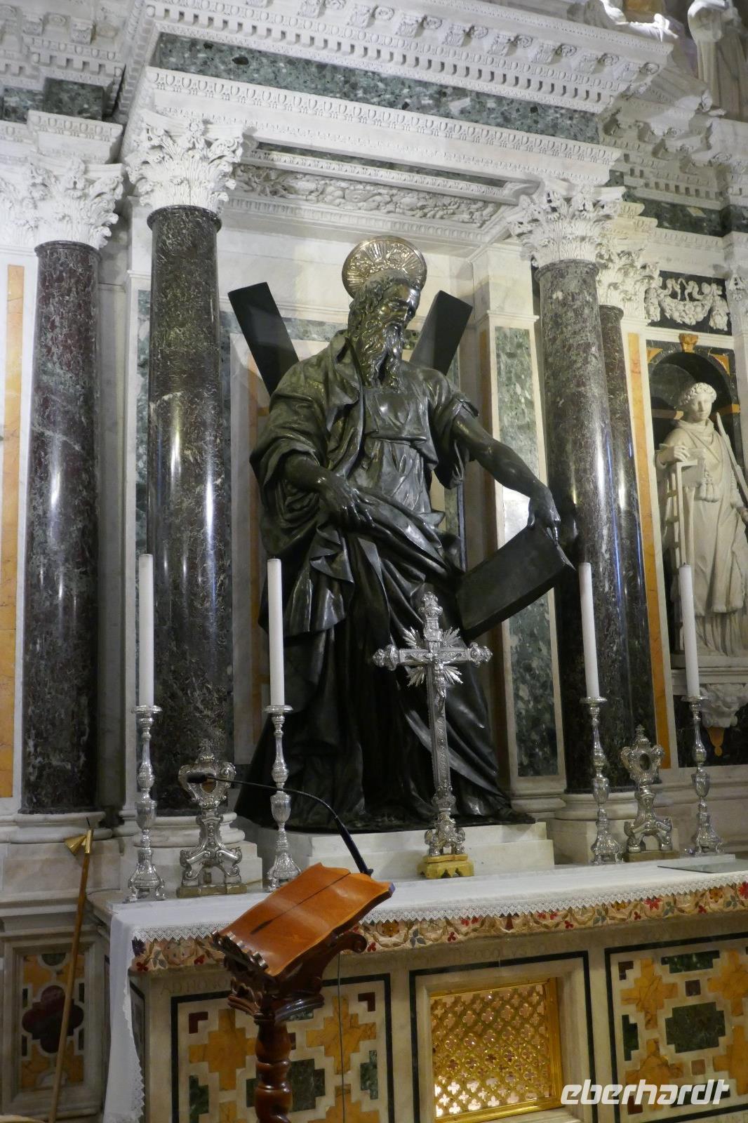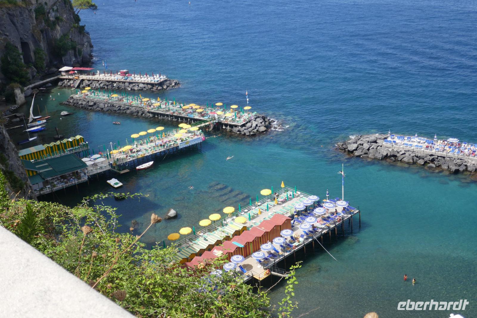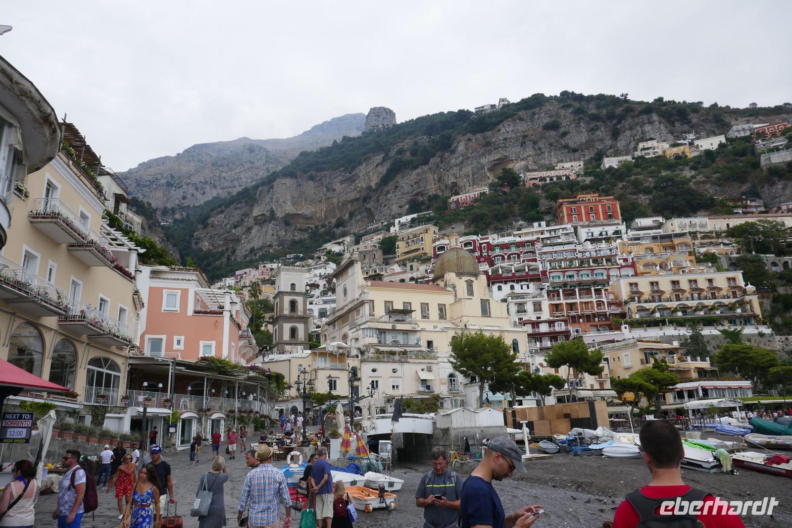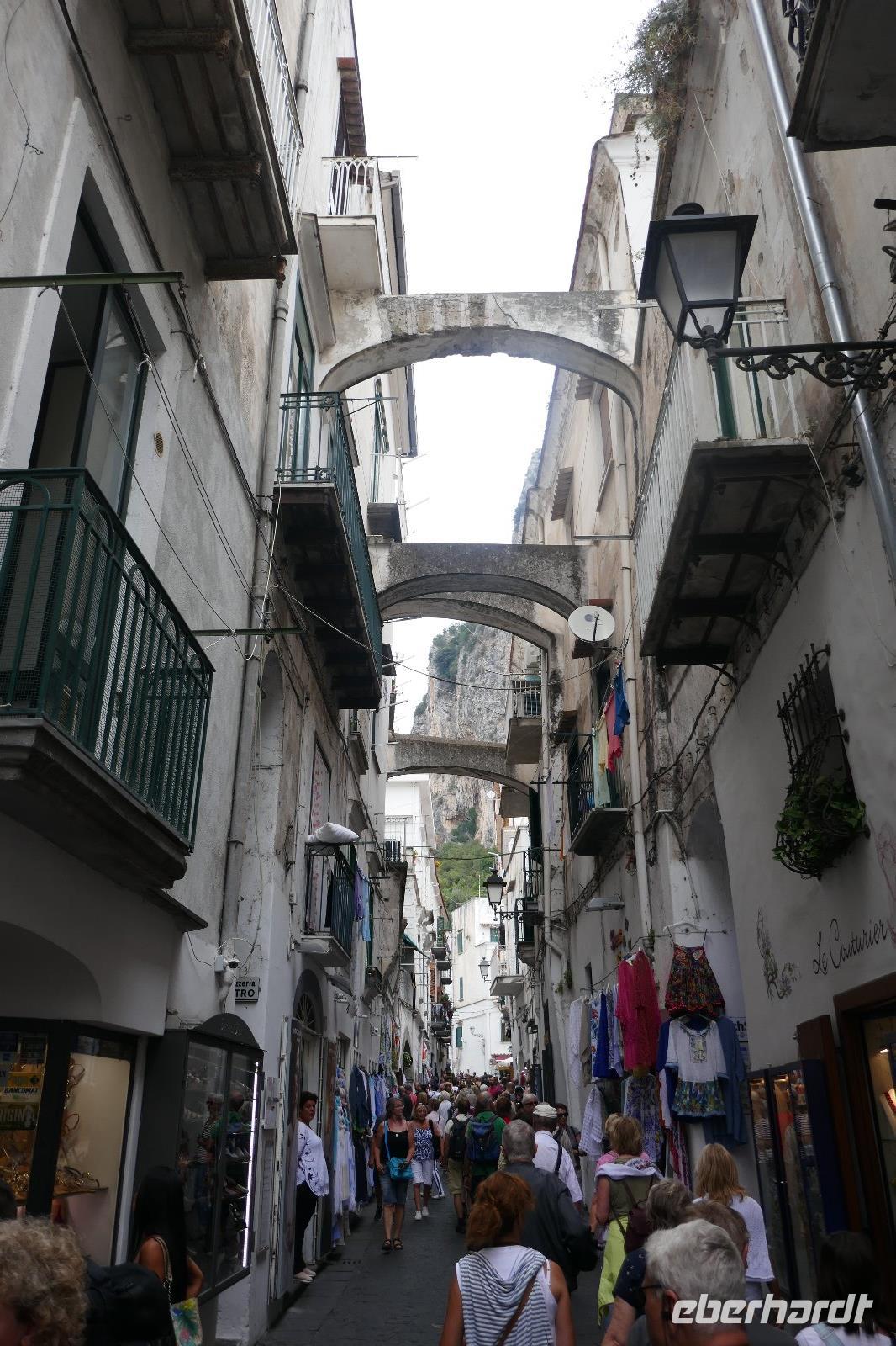 Die Amalfiküste, der Ort wo die Zitronen blühen, sei die schönste Küste der Welt. Unsere Gruppe wollte sich heute selbst ein Bild davon machen. Senkrecht aufragende Felswände am glitzernden Tyrrhenischen Meer. Man hatte das Gefühl zwischen Himmel und dem Abgrund zu sein. Hier wurde in abenteuerlicher Weise eine der schönsten Küstenstraßen gebaut. An jeder Ecke ein interessantes Fotomotiv. Und einige der schönsten Dörfer Italiens scheinen fast wie an den Felsabhängen zu kleben. Positano war unser erster Stopp. Schon John Steinbeck nannte ihn „der einizige senkrechte Ort der Welt". Alle steilen Gassen laufen auf den kleinen Strand zu. Wir schlenderten durch die Gassen Positanos und dann setzten wir die Fahrt mit dem Boot fort. Eine ganz andere Perspektive - Gigantisch wirkt das Felsmasiv, das sogar einen Fjord besitzt. So steuerten wir Amalfi an. Entlang viele Villen bekannter Persönlichkeiten u. Grandhotels, die sich wie eine Perlenschnur entlang der Küste anreihen. Im Gegensatz zu Positano bietet Amalfi einen majestätischen Dom. Mit seiner pinsittoresk-bunten Fassade - ein kunstgeschichtliches Highlight - manifestiert er die Seerepublik Amalfis aus dem 11. Jahrhundert. Eine Besichtigung unter fachkundiger Führung von Esther war ein Erlebnis, besonders die Krypta, in dem die Reliquien des Hl. Andreas liegen. Natürlich durfte die Besichtigung des Papiermuseums nicht fehlen. Hier erfuhren wir viel über die Herstellung geschöpften Papiers. Übrigens der Vatikan bezieht heute noch Papier von der Amalfiküste.Zwischendurch hatte jeder auf auch seine Weise Gelegenheit diesen Ort zu entdecken. So mancher stellte auch fest, dass Schönheit seinen Preis hat. Kurve für Kurve, Serpentine für Serpentine hangelten wir uns dann in entgegengesetzter Richtung zurück zum Hotel. Nun wird dem letzten Bewusst, warum man hier nur mit einem einheimischen Busfahrer unterwegs sein kann. Staus sind auf Strecke manchmal inbegriffen und kostenlos. Geübt und mit der nötigen Gelassenheit umfährt er jede noch so kleine „Klippe". Tourist und andere große Gefährte sind für unseren italienischen Fahrer kein Problem. Am Ende kamen wir nach einem tollen Tag wieder wohlbehalten im Hotel an.