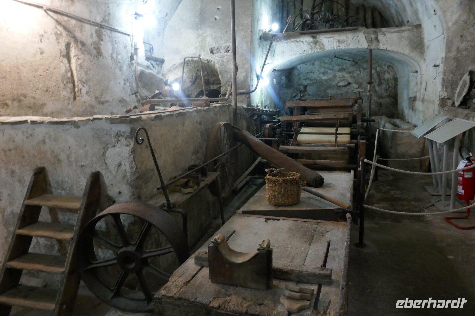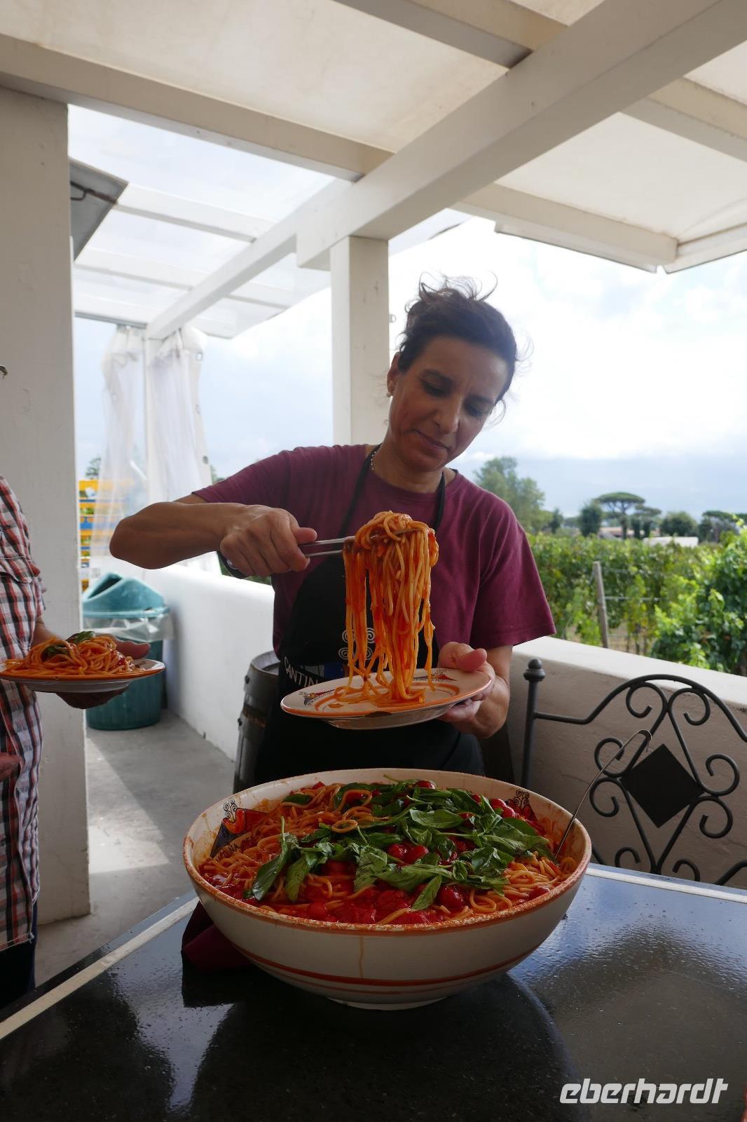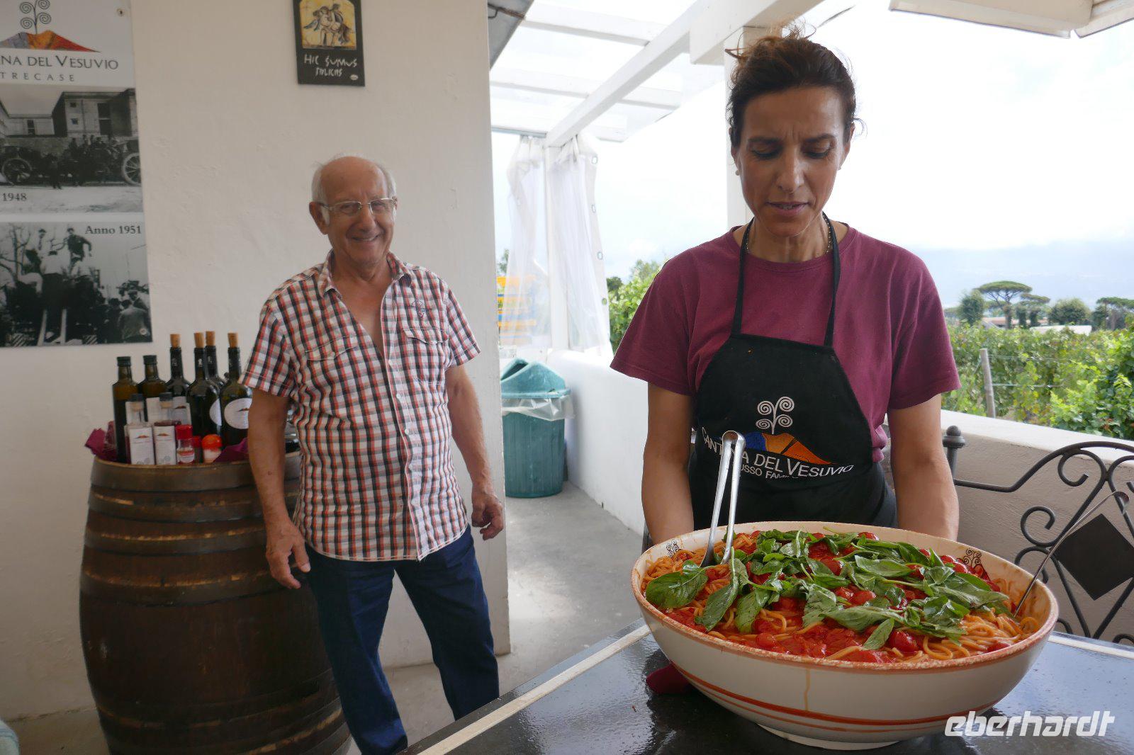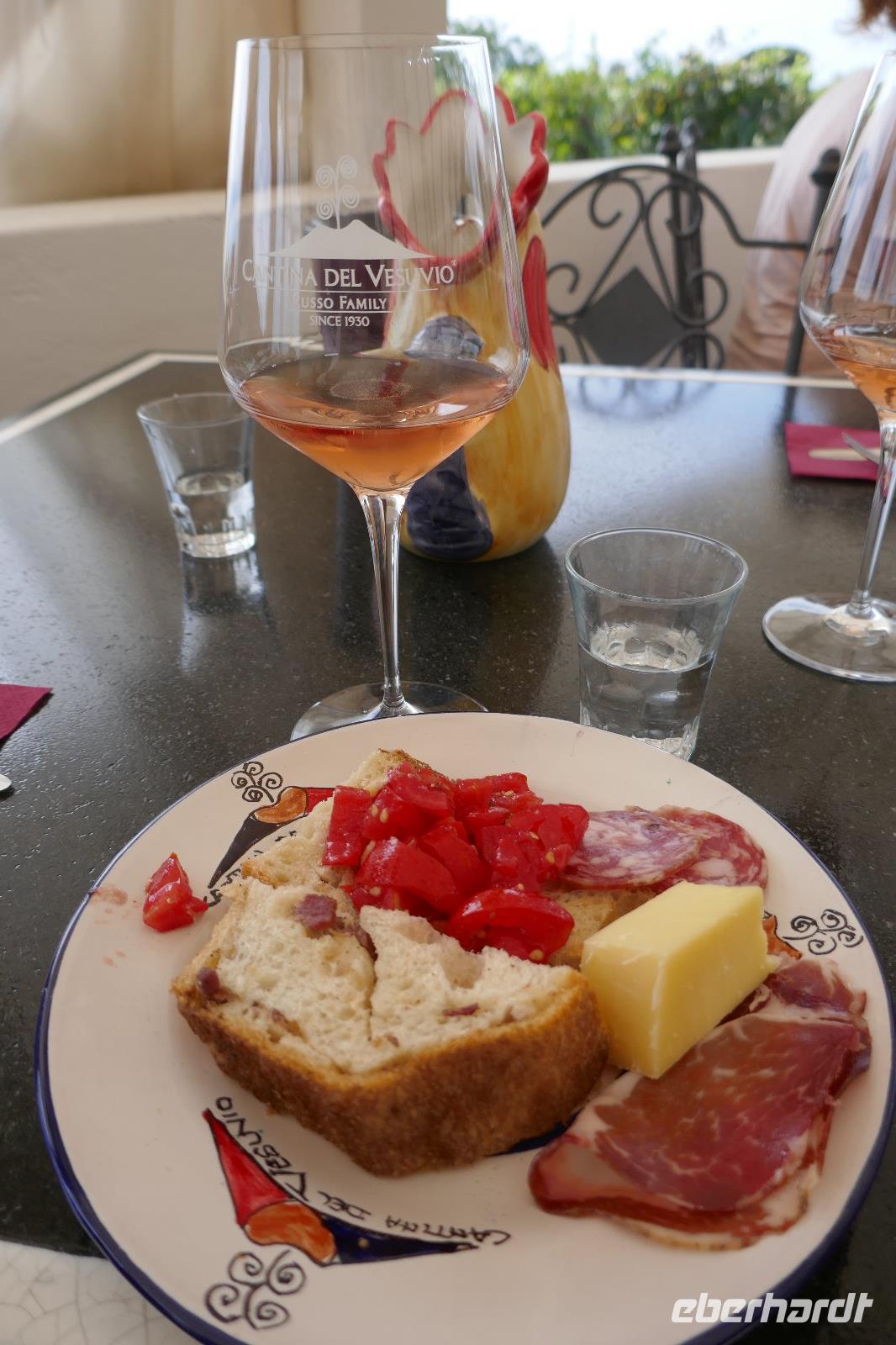 Zunächst ging es ging es nach San't Agata de Goti. Eine Gegend, die für ihren guten Wein bekannt ist. Auf dem Weingut Mustilli erfuhren wir einiges dazu und konnten natürlich das „flüssige Gold des Südens" bei kleinen Häppchen probieren. Vorher ging es aber in die geheiligten Hallen in dem die Köstlichkeiten lagerten. Heiter und beschwingt traten wir den Weg nach Neapel an