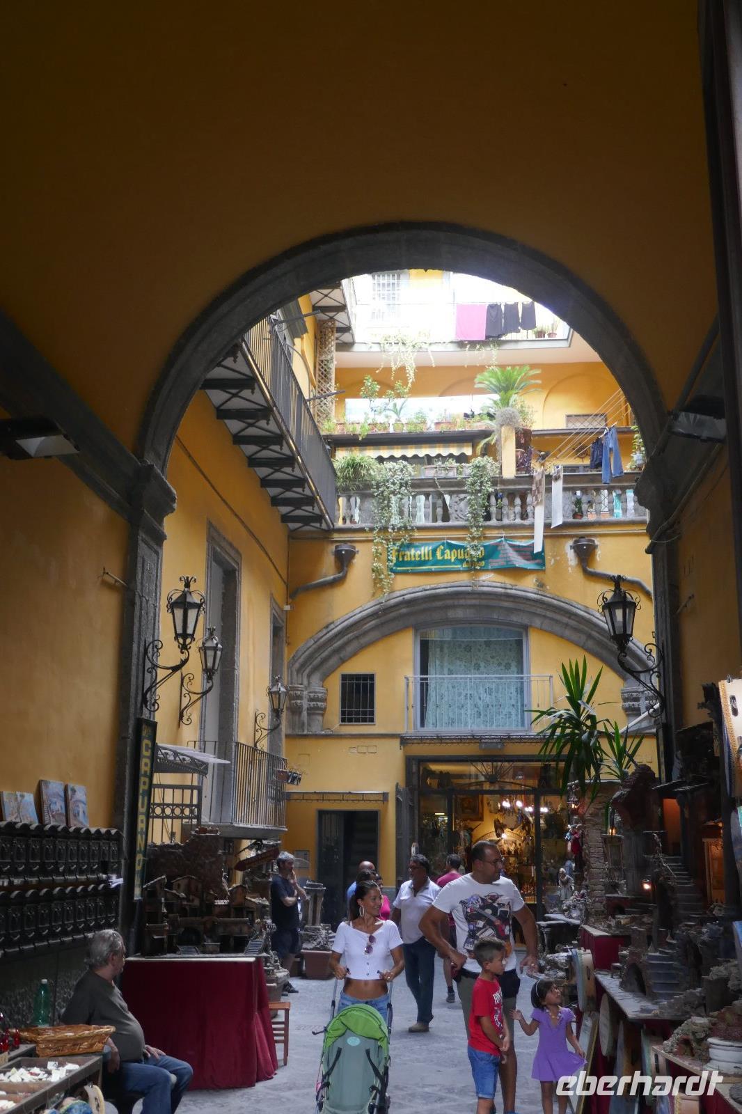 Ein Sprichwort der Einheimischen lautet: „In Neapel weint man zweimal; einmal wenn man kommt und einmal wenn man geht". Die Tränen wurden durch die sommerlichen Temperaturen schnell getrocknet als wir die Stadt erreichten. Autohupen und das Geschrei der Kinder benebeln uns ein wenig. Dennoch machten wir uns mit unserer Reiseleiterin Esther auf die Stadt zu erkunden. Durch die bunten und gefüllten Gassen mit lokalen Ständen oder die wichtigsten Sehenswürdigkeiten wie z. B. Basilica di Santa Clara, Piazza Plebiscito, Palazzo Reale oder die berühmte Galleria Umberto I waren die Fotomotive des heutigen bzw. folgenden Tages. Dabei erfuhren wir allerlei Wissenswerte über die Küche der Kampanie und natürlich zum Geburtsort der Pizza Margherita aber auch zur Geschichte der Stadt. Zum Mittagessen am 4. Tag durfte natürlich das probieren der Pizza Margherita nicht fehlen. In der bekannten Pizzeria Brandi frönten wir dem Gaumenschmaus mit historischem Hintergrund. Es blieb auch etwas Zeit für die quirlige Stadt , in der die Straßenkünstler um die Kunst der Touristen buhlen.