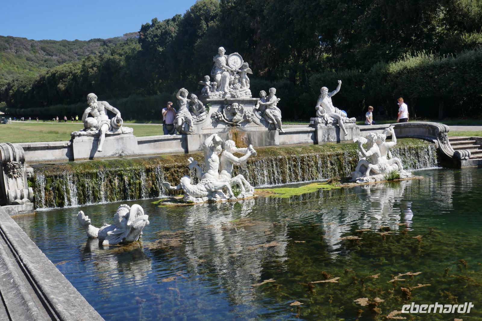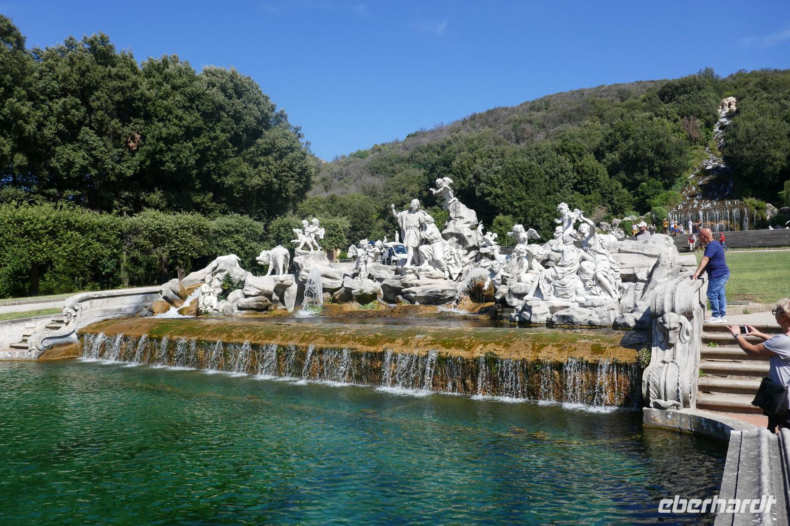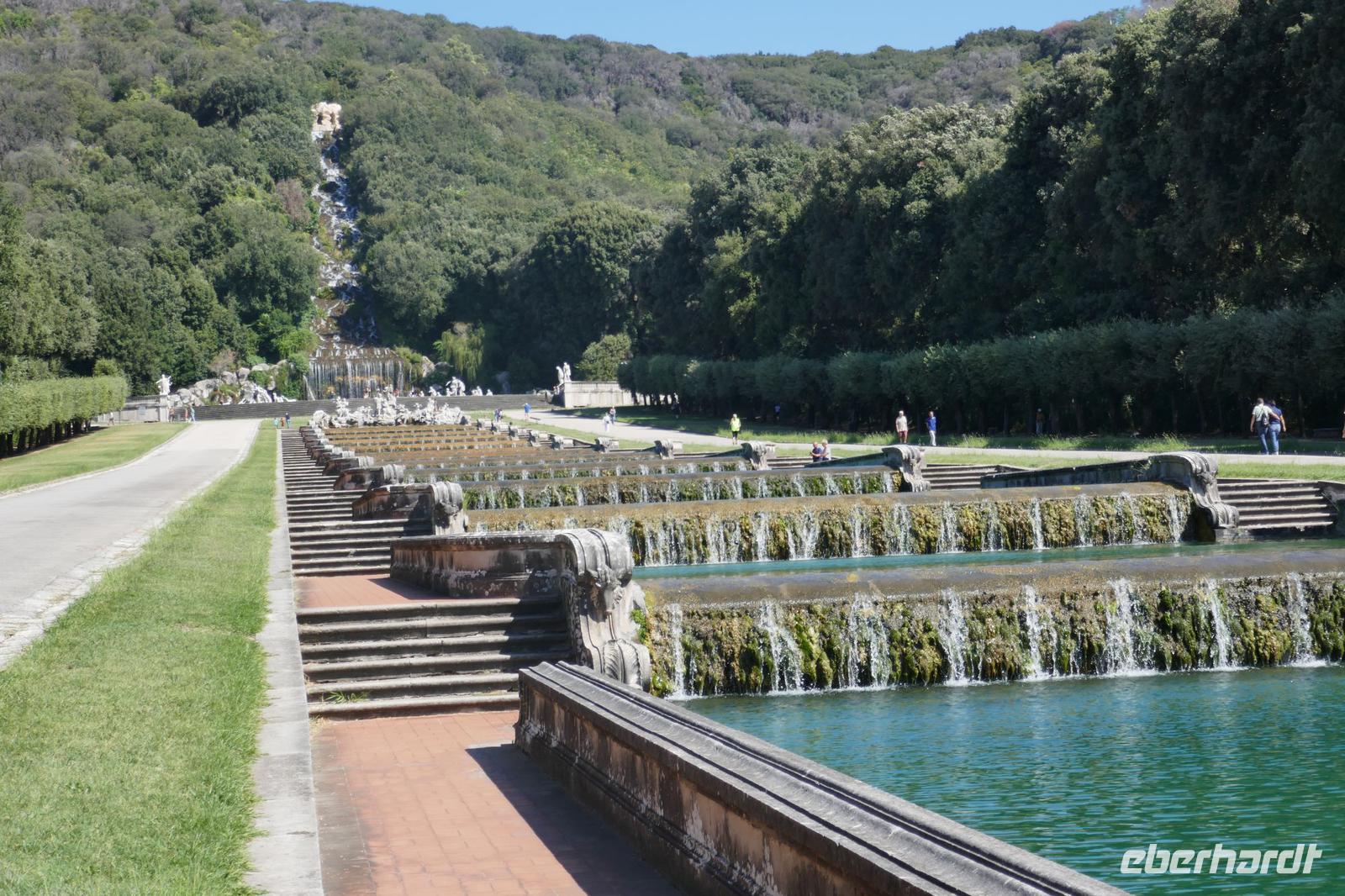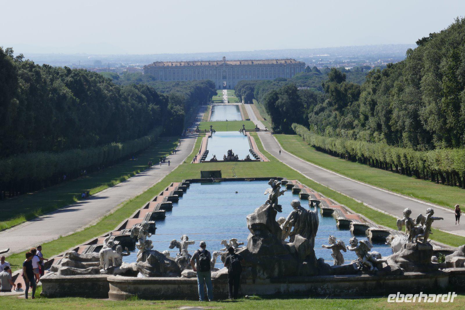 Nicht weit von Neapel und dem Vesuv steht die Bourbonen-Residenz Caserta. Diesen steuerten wir dann am 4. Tag nochmals an. Auf den ersten Blick ein Königspalast wie überall auf der Welt. Auf den zweiten Blick wurden wir vom weitläufigen Schlosspark überrascht. Viel Wasser mit Wasserspielen erinnert es ein wenig an Versailles - nicht umsonst wird es auch Versailles des Südens genannt. Die Besichtigung stand im Zeichen der Superlative. Größte europäische Schlossanlage aus dem 18. Jahrhundert. Die größten Architekten dieser Zeit haben die Wünsche der Auftraggeber erfüllt. Bei einer Fläche von 44.300 m² konnten wir auf unserer Besichtigung nur die wichtigsten Räume besuchen. Diese waren aber dafür prachtvoll ausgestattet. Bei einer Länge von 3-4 Km auf der Hauptachse war es sehr angenehm, mit dem Shuttle bequem die wichtigsten Bereiche des Parks zu erreichen. Hier erkundete jeder nach seinen eigenen Bedürfnissen den Park. Zurück am Treffpunkt, den alle pünktlich erreichten, ging es nach Neapel. Mit einer zweiten Tour durch Neapel (Fotostopp eingeschlossen) und dem Essen in der Pizzeria Bradi endeten zwei erlebnisreiche Tage.