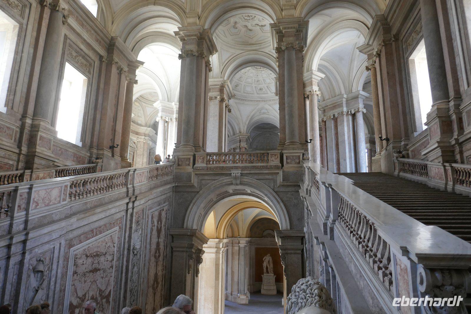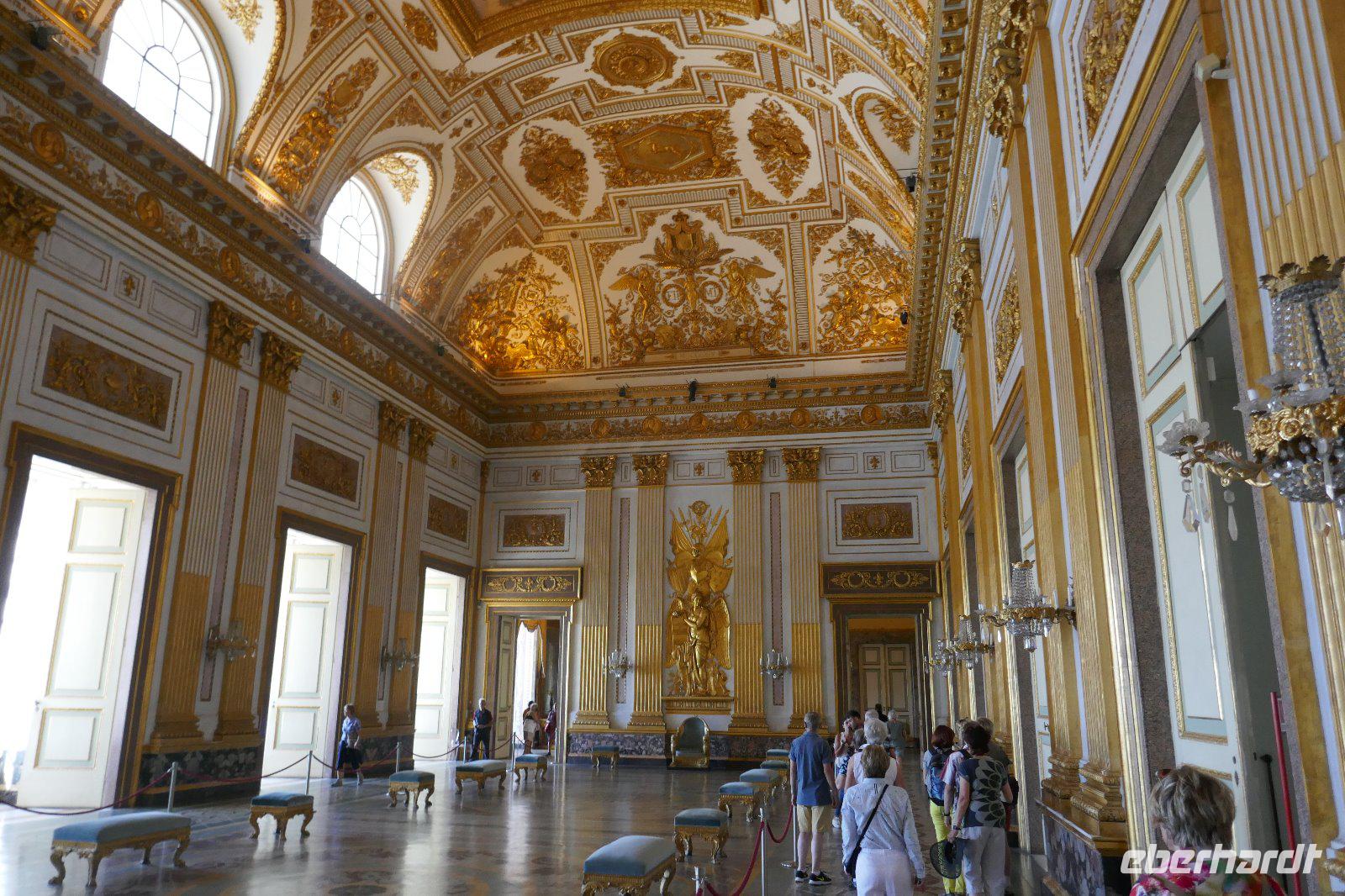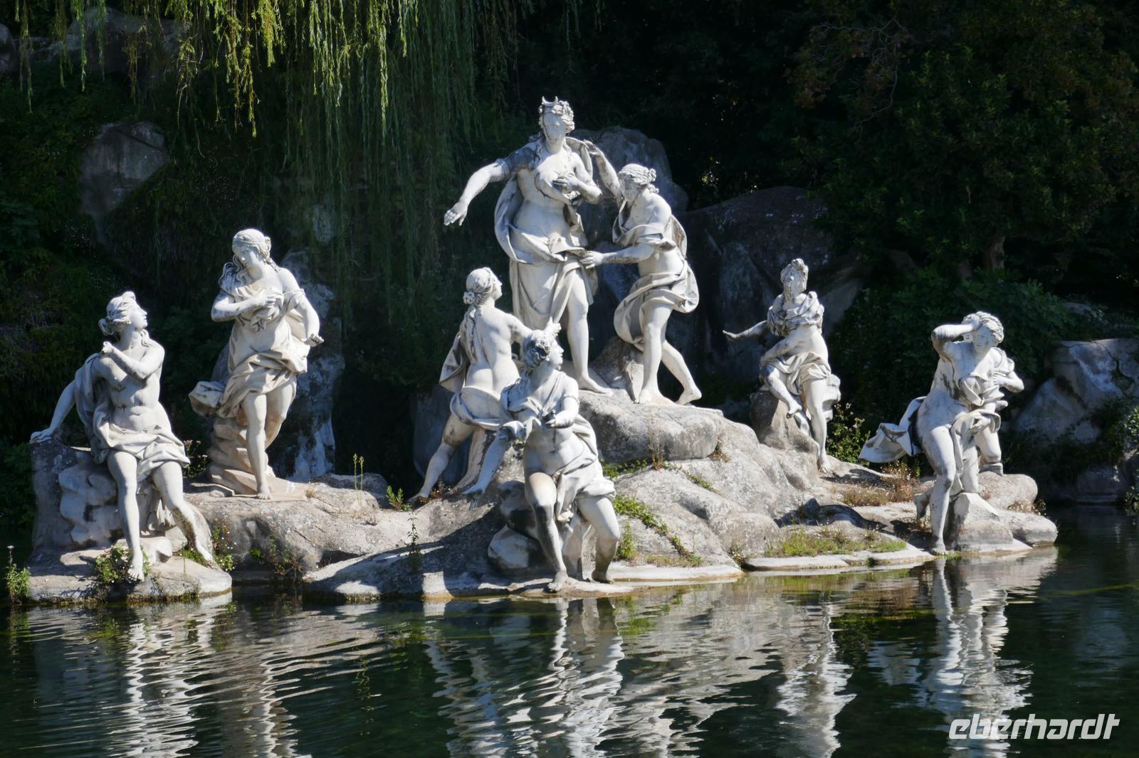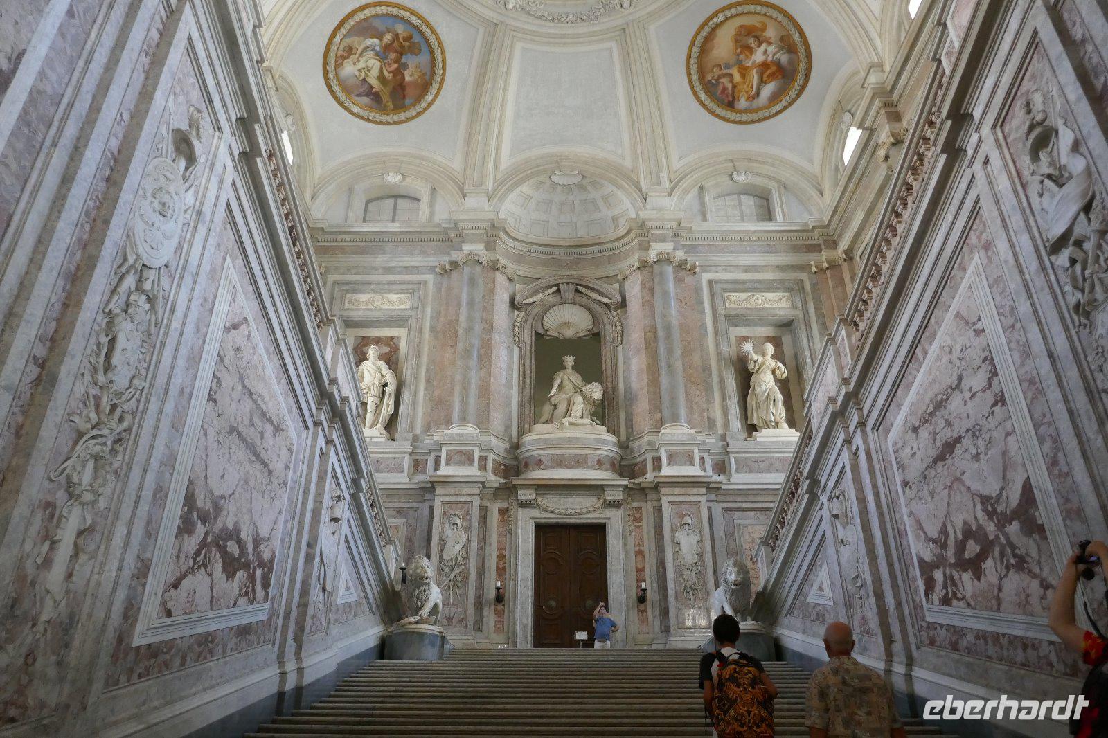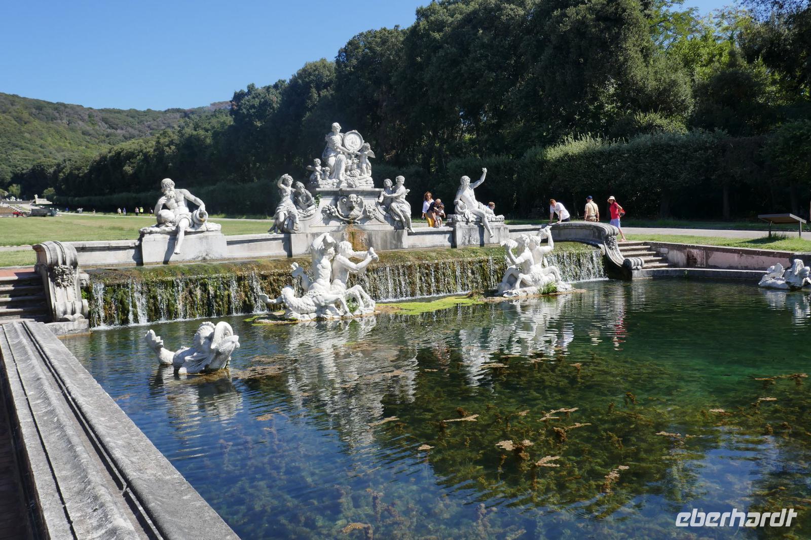 Nicht weit von Neapel und dem Vesuv steht die Bourbonen-Residenz Caserta. Diesen steuerten wir dann am 4. Tag nochmals an. Auf den ersten Blick ein Königspalast wie überall auf der Welt. Auf den zweiten Blick wurden wir vom weitläufigen Schlosspark überrascht. Viel Wasser mit Wasserspielen erinnert es ein wenig an Versailles - nicht umsonst wird es auch Versailles des Südens genannt. Die Besichtigung stand im Zeichen der Superlative. Größte europäische Schlossanlage aus dem 18. Jahrhundert. Die größten Architekten dieser Zeit haben die Wünsche der Auftraggeber erfüllt. Bei einer Fläche von 44.300 m² konnten wir auf unserer Besichtigung nur die wichtigsten Räume besuchen. Diese waren aber dafür prachtvoll ausgestattet. Bei einer Länge von 3-4 Km auf der Hauptachse war es sehr angenehm, mit dem Shuttle bequem die wichtigsten Bereiche des Parks zu erreichen. Hier erkundete jeder nach seinen eigenen Bedürfnissen den Park. Zurück am Treffpunkt, den alle pünktlich erreichten, ging es nach Neapel. Mit einer zweiten Tour durch Neapel (Fotostopp eingeschlossen) und dem Essen in der Pizzeria Bradi endeten zwei erlebnisreiche Tage.