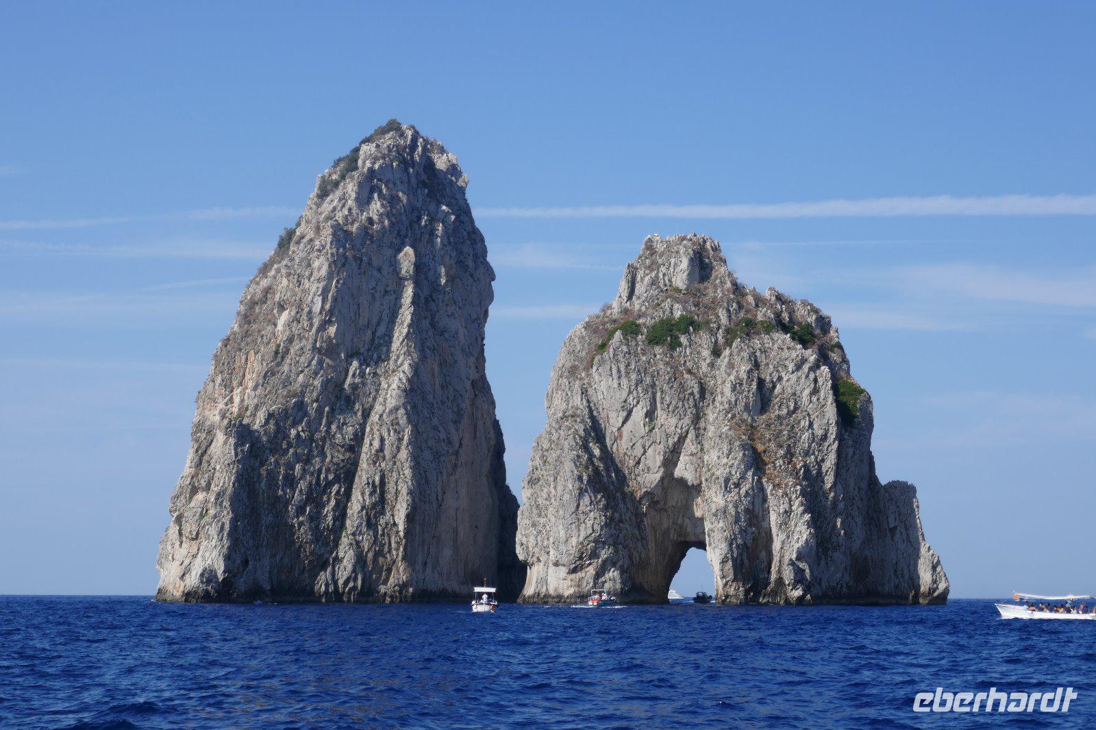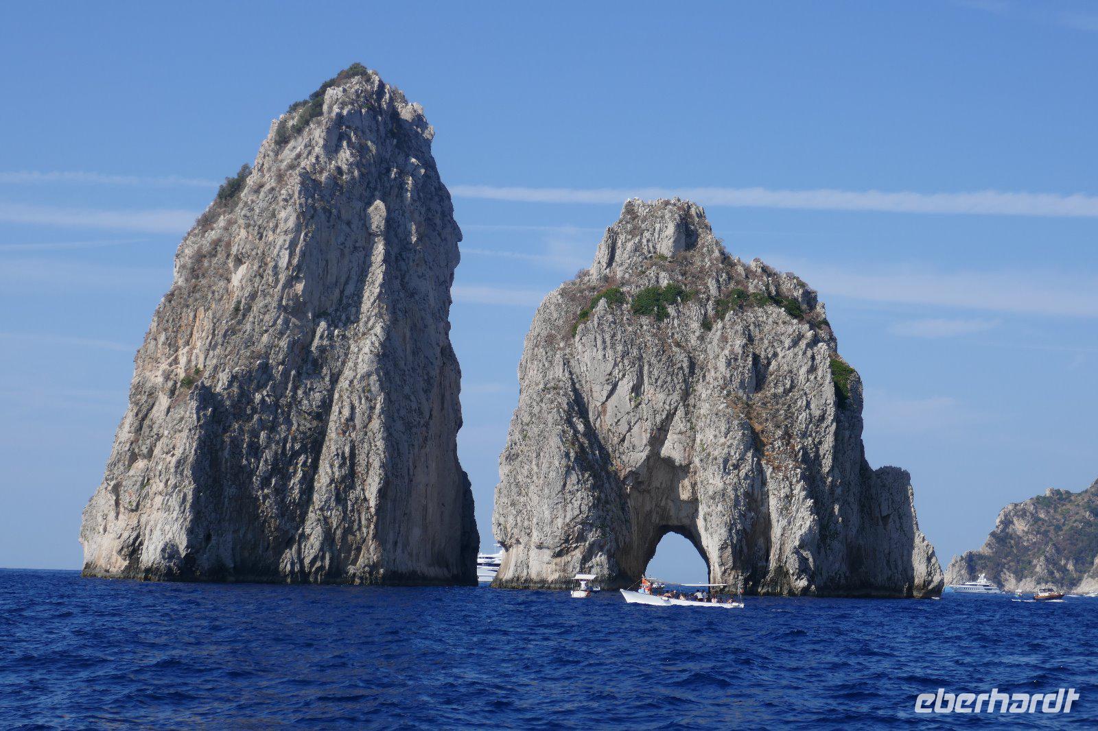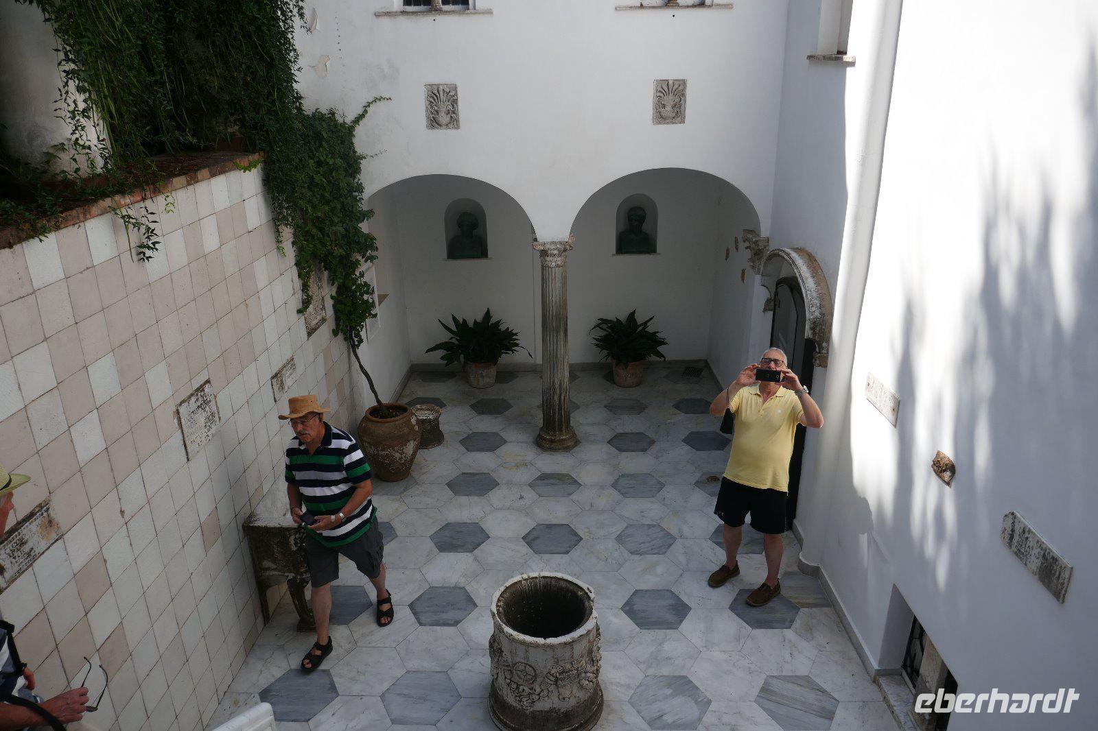 Jeder verbindet mit der Insel Capri etwas anderes. Ob es das Lied ist von der Sonne, die bei Capri rot im Meer versinkt oder einfach nur das Wassereis „Capri-Sonne". Vielleicht kommen auch die vielen Erinnerungen an die Fahrten mit dem Ford-Capri bei diesem Besuch zurück. Unsere Gruppe machte sich jedenfalls heute von Sorrent aus auf, die Insel zu erobern. Mit der Fähre setzt man hinüber und bevor wir dort ankamen hieß es sich einreihen in den Strom der vielen Tagestouristen. Wegen zahlreicher Grotten und dem schönen Blick auf das Meer wird die Insel nicht umsonst auch die Diva des Mittelmeers genannt. Als Einstieg eine Inselrundfahrt. Dabei fehlte natürlich nicht die Blaue Grotte. Von der Ferne erlebten wir diese. Ein Blick auf die bekannte Grotte aus der Fern hat genügt. Viele weitere Grotten und herrliche Motive folgten. Die Liebenden gaben sich einen Kuss bei der Durchfahrt durch den die Faraglioni-Felsen und schon waren wir wieder am Ausgangspunkt.Als nächstes steuerten wir Anacapri an. Nur mit Kleinbussen zu erreichen hatten wir auf der spannenden Fahrt immer wieder schöne Ausblicke aufs Meer. Eine Stelle wird sogar wegen der Enge u. dem sichtbaren Abgrund „Mama Mia" genannt. Am Ziel in Anacapri war es Mittag und Zeit eine Kleinigkeit zu sich zu nehmen. Danach spazierten wir gemeinsam auf der einzigen Straße zur Villa Munthe. Dabei wurde an einem Stand für Limoncello die Köstlichkeit probiert. Gemeinsam besichtigten wir das Haus und den Garten Munthes, der einer der schönsten in Italien ist. Danach brachten uns die Kleinbusse nach Capri zurück, wo wir entlang edler Geschäfte zu den Augustusgärten spazierten. Noch einen Blick auf die Straße, die Krupp bauen ließ und dann hieß es nach einer ausgiebigen Freizeit Abschied nehmen von Capri, der Diva des Mittelmeers und es ging wieder zurück zum Festland nach Sorrento. Das Versinken der roten Sonne live über Capri erlebten wir in tollen Rotschattierungen. Ein schöner Ausflugstag mit vielen Eindrücken ging zu Ende.