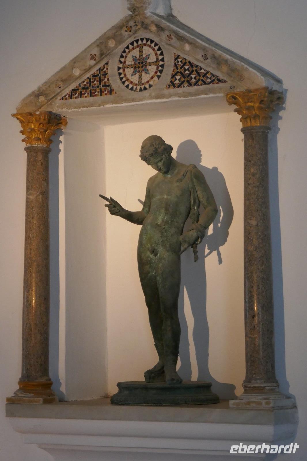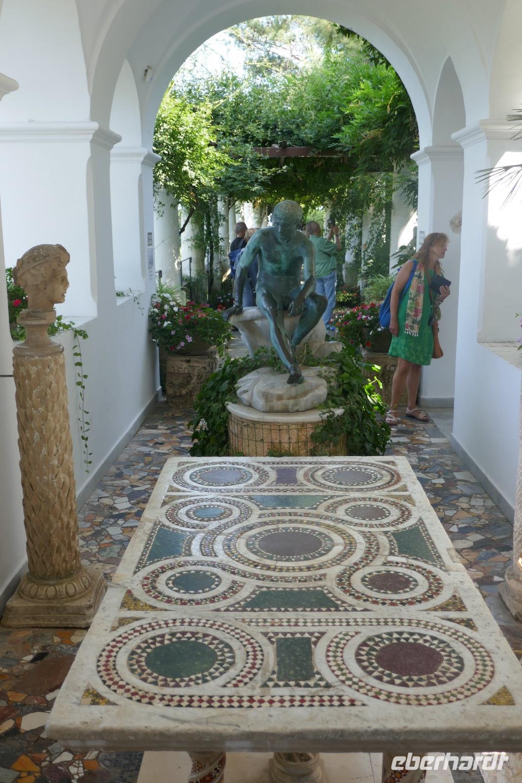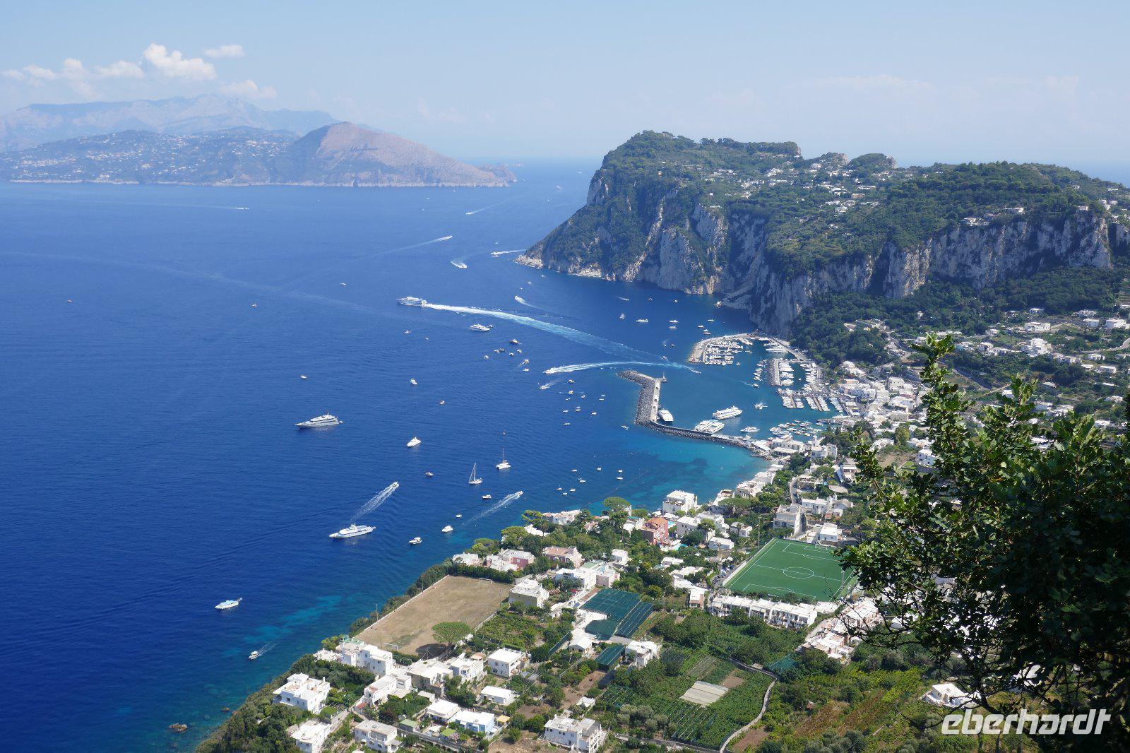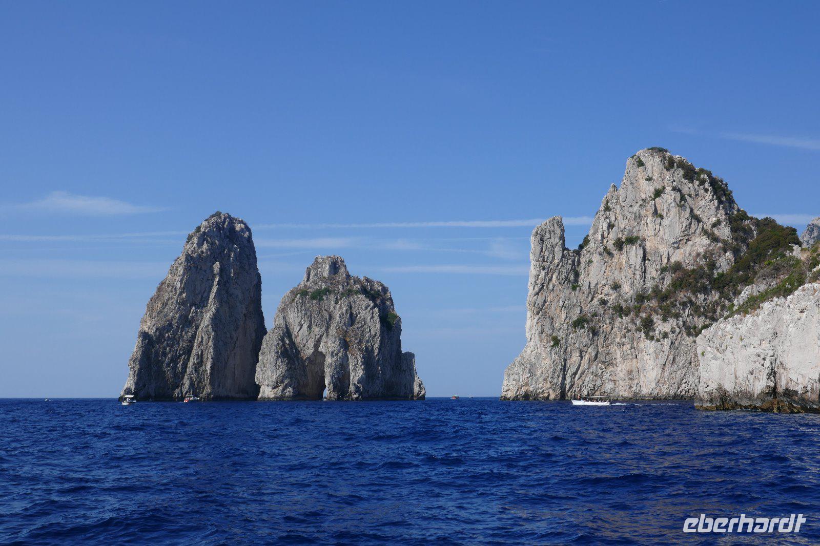 Jeder verbindet mit der Insel Capri etwas anderes. Ob es das Lied ist von der Sonne, die bei Capri rot im Meer versinkt oder einfach nur das Wassereis „Capri-Sonne". Vielleicht kommen auch die vielen Erinnerungen an die Fahrten mit dem Ford-Capri bei diesem Besuch zurück. Unsere Gruppe machte sich jedenfalls heute von Sorrent aus auf, die Insel zu erobern. Mit der Fähre setzt man hinüber und bevor wir dort ankamen hieß es sich einreihen in den Strom der vielen Tagestouristen. Wegen zahlreicher Grotten und dem schönen Blick auf das Meer wird die Insel nicht umsonst auch die Diva des Mittelmeers genannt. Als Einstieg eine Inselrundfahrt. Dabei fehlte natürlich nicht die Blaue Grotte. Von der Ferne erlebten wir diese. Ein Blick auf die bekannte Grotte aus der Fern hat genügt. Viele weitere Grotten und herrliche Motive folgten. Die Liebenden gaben sich einen Kuss bei der Durchfahrt durch den die Faraglioni-Felsen und schon waren wir wieder am Ausgangspunkt.Als nächstes steuerten wir Anacapri an. Nur mit Kleinbussen zu erreichen hatten wir auf der spannenden Fahrt immer wieder schöne Ausblicke aufs Meer. Eine Stelle wird sogar wegen der Enge u. dem sichtbaren Abgrund „Mama Mia" genannt. Am Ziel in Anacapri war es Mittag und Zeit eine Kleinigkeit zu sich zu nehmen. Danach spazierten wir gemeinsam auf der einzigen Straße zur Villa Munthe. Dabei wurde an einem Stand für Limoncello die Köstlichkeit probiert. Gemeinsam besichtigten wir das Haus und den Garten Munthes, der einer der schönsten in Italien ist. Danach brachten uns die Kleinbusse nach Capri zurück, wo wir entlang edler Geschäfte zu den Augustusgärten spazierten. Noch einen Blick auf die Straße, die Krupp bauen ließ und dann hieß es nach einer ausgiebigen Freizeit Abschied nehmen von Capri, der Diva des Mittelmeers und es ging wieder zurück zum Festland nach Sorrento. Das Versinken der roten Sonne live über Capri erlebten wir in tollen Rotschattierungen. Ein schöner Ausflugstag mit vielen Eindrücken ging zu Ende.