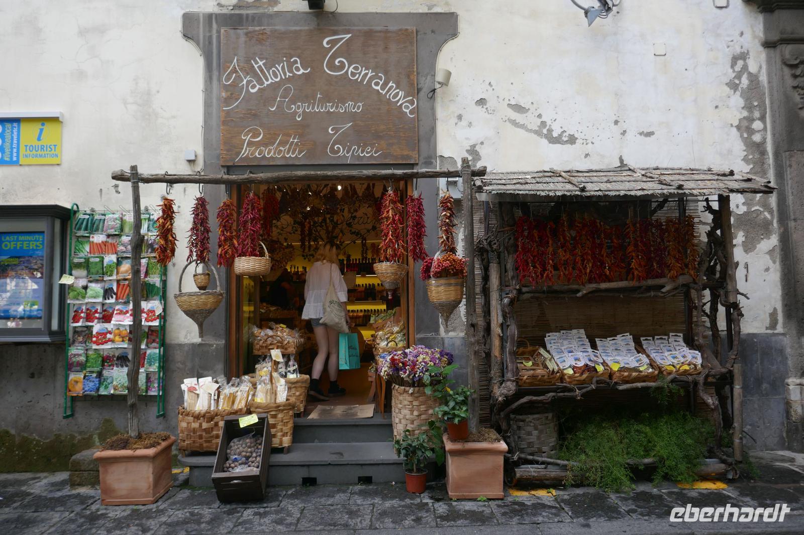 Ein Landgut in Mitten von Zitronenhainen war unser erstes Ziel. Hier wuchsen unendlich viele Zitronen auf riesigen Bäumen. Wir konnten uns auf dem Rundgang überzeugen, dass nicht nur die Bäume groß waren, sondern auch die Zitronen aus dem der köstlicher Likör gewonnen wird. Nicht nur diesen konnten wir probieren. So manche weitere Köstlichkeit wie z. B. Olivenöl oder Marmelade galt es zu probieren. Danach ging es nach Sorrent. Hier erfuhren wir bei einem Rundgang wichtiges über die Stadt und ihre Gebäude. Dabei kamen wir u. a. am Piazza Tasso, Palazzo Veniero, Dom oder der Loggia Sedile Dominova vorbei. Danach blieb noch Zeit bis zur Rückfahrt für eigene Erkundungen. Heute war der letzte Tag seine Geschenke zu besorgen oder die heimischen Aufträge zu erledigen.