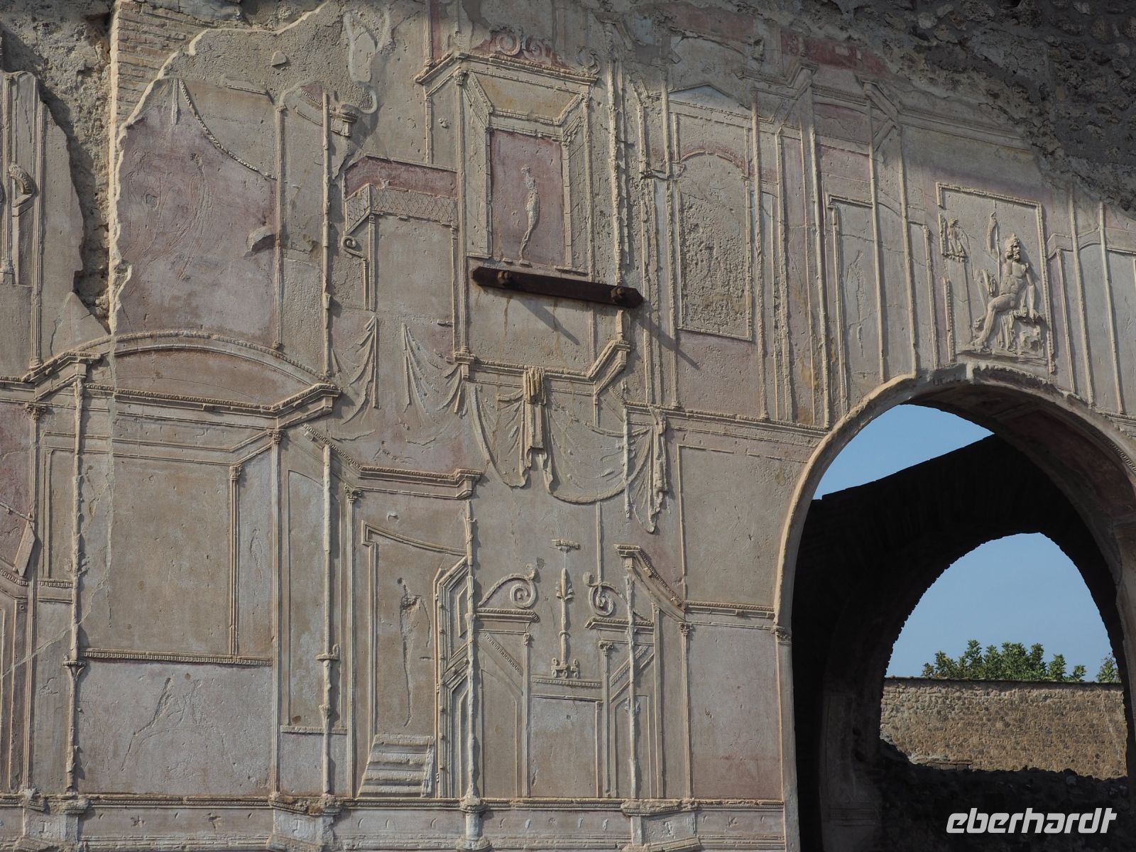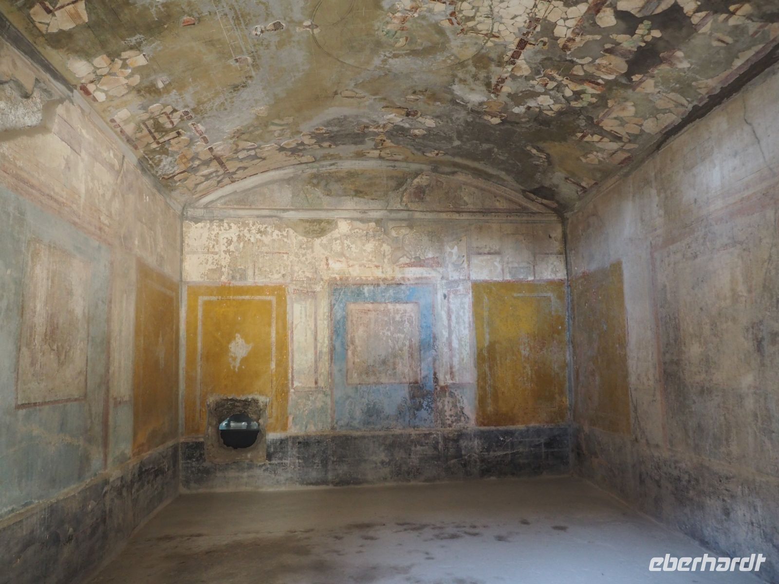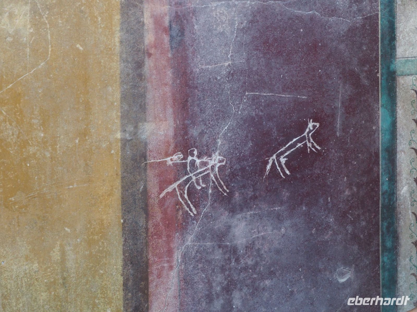 Auch kleine Läden kann man entdecken. Pietro erzählte schmunzelnd, dass man hier das verkauft hat, was man heute als ‚street food‘ bezeichnen würde. Sie waren also so eine Art Imbissbude. Es sind sogar noch die Vertiefungen zu entdecken, in denen damals die Töpfe ‚steckten‘. So konnte man den Vorübergehenden zeigen, was dort gerade gekocht wurde.