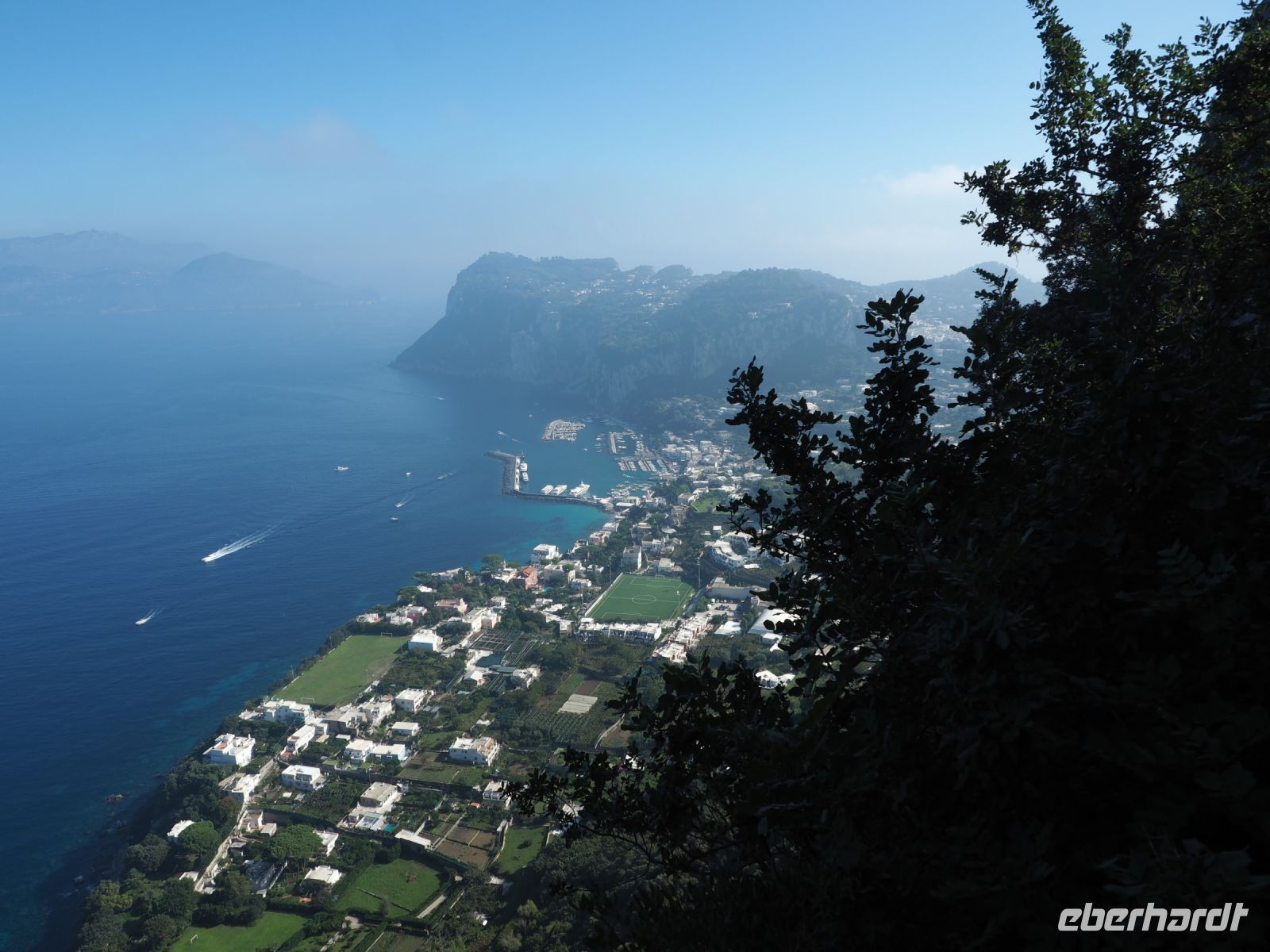 Von hier oben erblickt man auch die Marina Piccola, den kleinen Hafen am Fuße der legendären Via Krupp, die sich in vielen Windungen den Hang hinunter schlängelt.