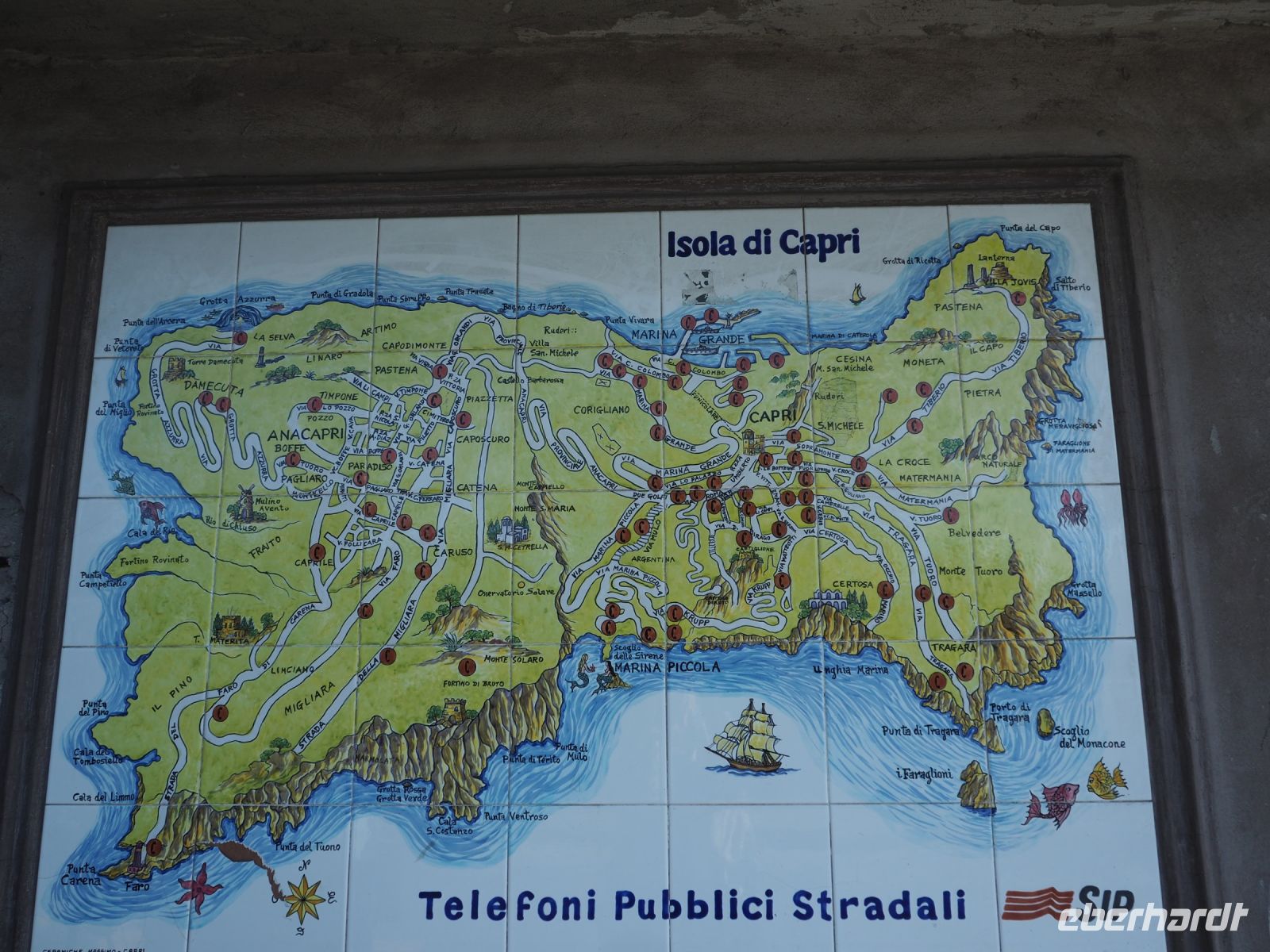 Zurück an der Piazzetta ging es weiter mit einem Inselbus auf einer abenteuerlichen Straße hinüber nach Anacapri. Links steil aufragende Berge, rechts steil abfallende Berge, manchmal musste man schon den Atem anhalten, aber keine Angst – die Busfahrer beherrschen ihr Handwerk und könnten die Strecken wahrscheinlich auch mit geschlossenen Augen zurücklegen.
