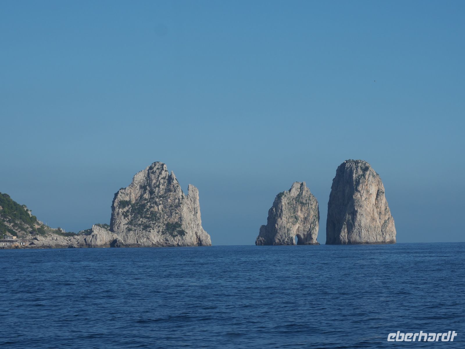 Von den Augustusgärten bietet sich eine unvergleichliche Aussicht über das weite Meer und die vorgelagerten Faraglioni, die so typischen Felsen vor Capri.