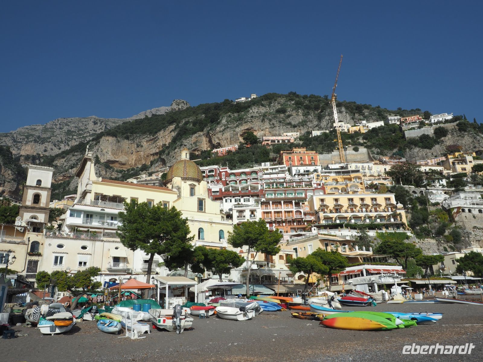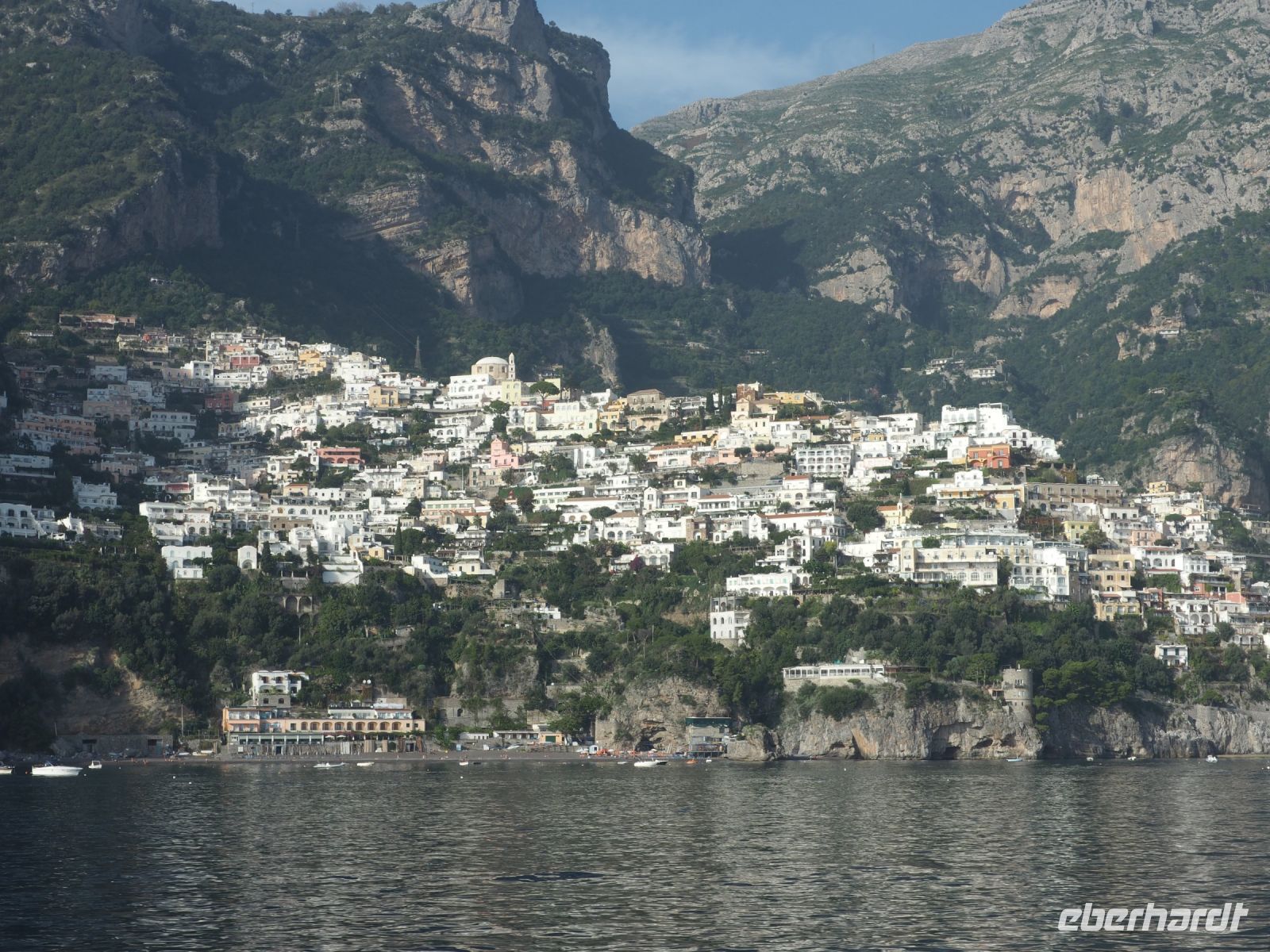Spektakulär war die Ankunft am Hafen von Positano. Die bunten Häuser stapeln sich förmlich übereinander und erstrecken sich den ganzen Hang hinauf. Ein wunderbarer Anblick.