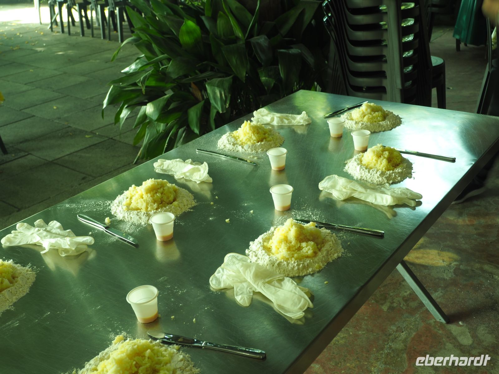 Rosa zeigte uns auch wie Mozzarella hergestellt wird. Auch das sieht gaaaanz einfach aus! So ein frischer Mozzarella schmeckt ganz besonders gut.