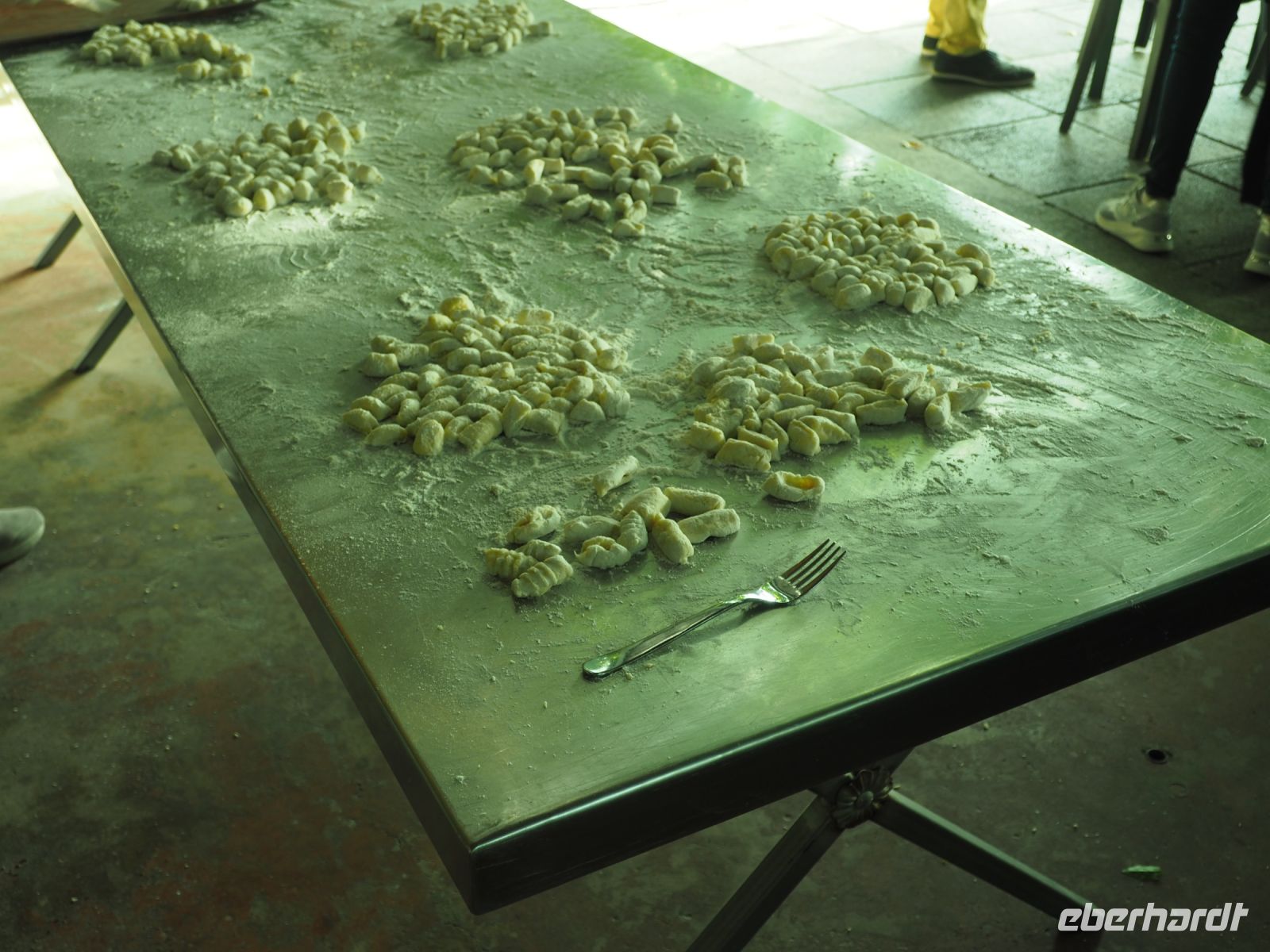 Und einer der männlichen Mitglieder der Reisegruppe, der große Bedenken hatte, ob er das überhaupt zustande bringen würde, nachdem die Küche sonst eher das Revier seiner Frau ist, erntete großes Lob von Rosa. Seine Gnocchi sahen auch wirklich perfekt aus! Aber insgesamt konnten sich die Gnocchi aller Teilnehmer sehen lassen!
