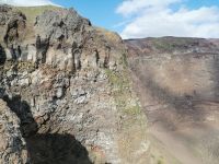 Nach der Besichtigung der antiken Stadt erwartete uns ein leckeres Mittagessen auf dem Landgut Cantina der Vesuvio mit verschiedenen Weinproben! Gut gestärt in der Cantina der Vesuvio, waren wir für den Aufstieg auf den mächtigen Vesuv gut vorbereitet. Unser Busfahrer Antonio brachte uns zum Ausgangspunkt am Vesuv und wir konnten in Eigenregie die ruhende Kraft des Vulkans erkunden und auf uns wirken lassen. Einige Reisegäste stiegen bis zum Vulkankrater hoch. Schon beim Aufstieg eröffnete sich eine großartige Panorama Richtung Neapel und Atlantik. Faszinierend war auch der Blick in den ca. 300 Meter tiefen Krater des Vesuvs, der ca. 500 Meter im Durchmesser aufweist. Glücklich und zufrieden kehrten wir von Vesuv nach Sorrento zurück und Antonio verabschiedete sich von uns mit einer neuen Audioaufnahme mit der weiblichen Stimme und wünschte uns noch einen guten Urlaub. Der traumhafte Sonnenuntergang verschönerte unseren heutigen Abend zusätzlich!