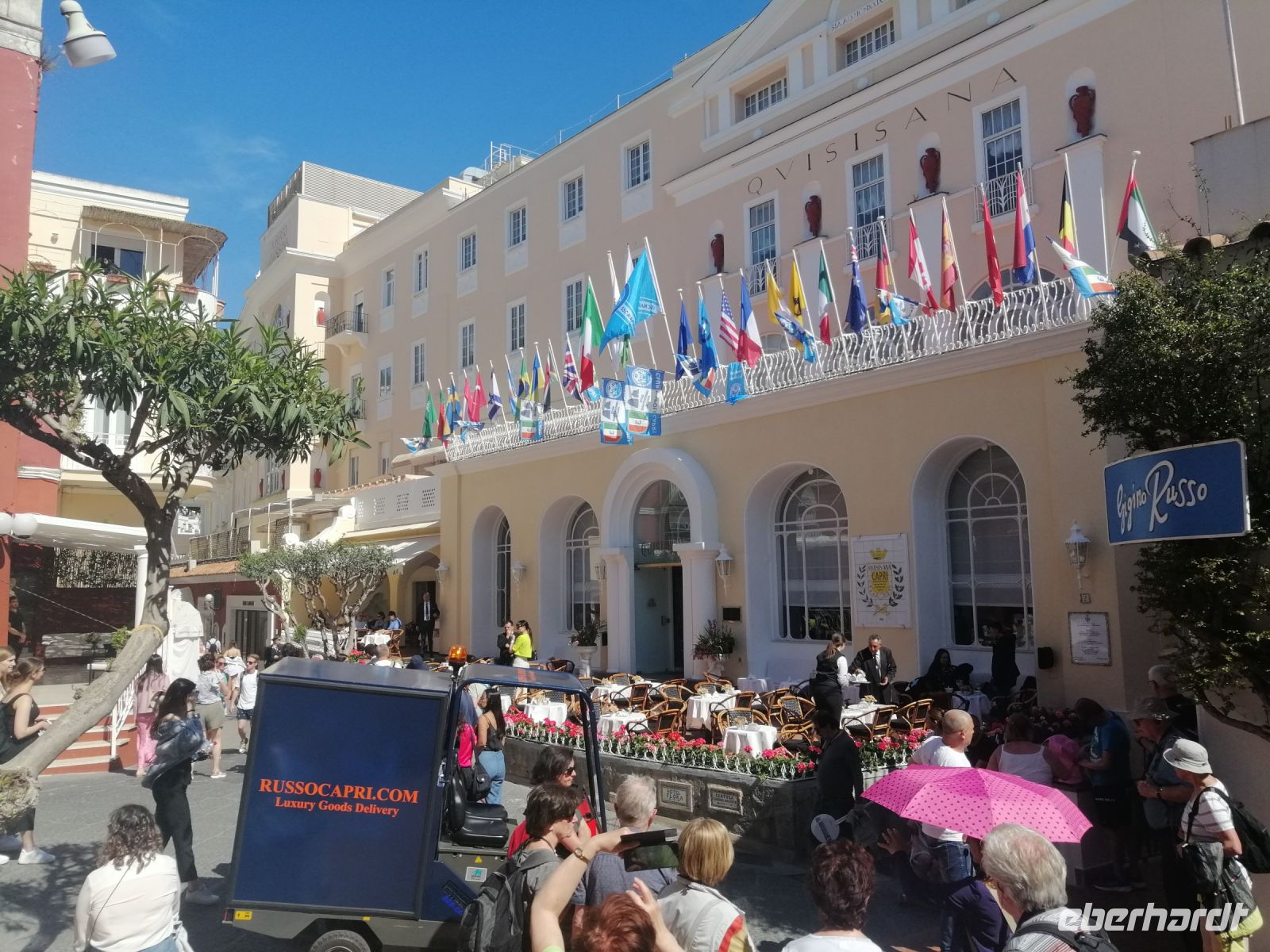 Gleich nach dem Frühstück trafen wir uns im Hotel mit Laura und gingen zum Hafen von Sorrent. Der Hafen war schon gut gefüllt und Reisegäste aus vielen Ländern warteten auf ihre Ausflugziele. Beim besten Wetter erreichten wir die Insel Capri und entschieden uns, nach der netten Empfehlung unserer Reiseleiterin, um die langen Wartezeiten in Capri zu vermeiden, eine Rundfahrt um die Insel Capri mit einem Schiff zu unternehmen. Diese Entscheidung ergab sich als die beste Entscheidung es Tages! Faszinierend schauten wir uns die Insel Capri vom Meer aus an und erkundeten viele Felsen, Grotten und Buchten, zu denen uns unser heutiger Kapitän ziemlich nah rangefahren hatte. Immer wieder gab es erklärende Wörter von der Laura, die teilweise auch das Mikrofon des Kapitäns nutzte, um uns besser informieren zu können. Nach der sehr entspannten und faszinierenden Schifffahrt um Capri, erreichten wir mit einem kleinen Bus das Örtchen Anacapri. Nach dem kurzen Rundgang und einigen Informationen zur Ortschaft, konnten wir eigenständig Anacapri erkunden. Einige Reisegäste besuchten die wunderschöne Villa San Michele von Axel Munthe und stiegen mit der Seilbahn auf Monte Solaro – zum höchsten Berg von Capri (fast 600 Meter). Auch das gastronomische Angebot war hier sehr vielfältig – besonderer Tipp ist die kleine Gaststätte in der Villa von Axel Munthe mit einem grandiosen Blick auf das Meer!