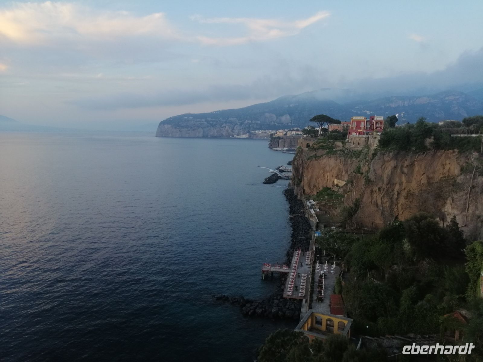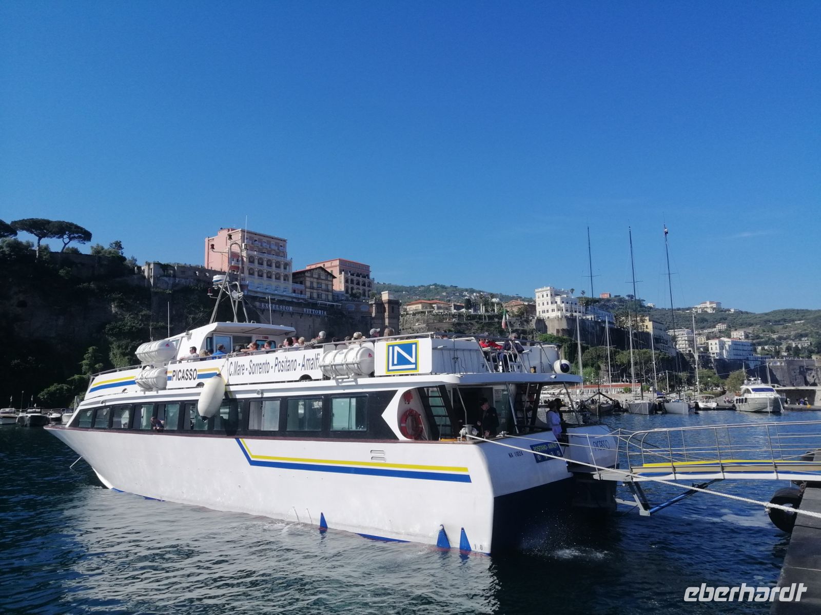 Kurz vor halb sechs Uhr verließen wir Positano und erreichten eine Stunde später Sorrent. Da heute alle Reisegäste anwesend waren, gab es eine nette Begrüßung im Namen von Eberhardt Travel in der Bar des Hotels, verbunden mit den besten Wünschen zu dem vor uns liegenden Urlaub an der Amalfiküste!