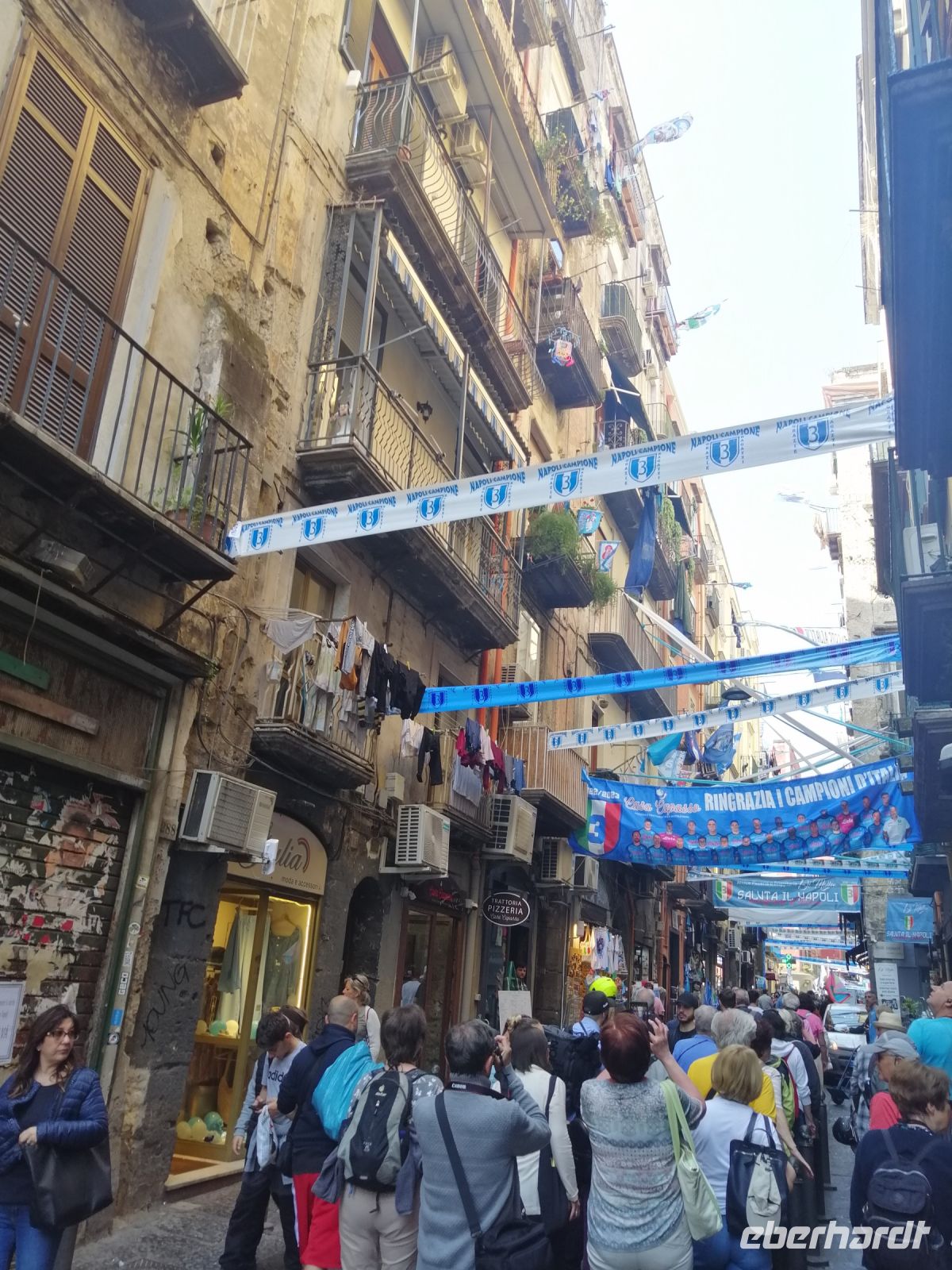 Heute stand die Besichtigung von Neapel auf unserem Programm. Wir trafen uns mit der Laura nach dem Frühstück im Hotel und starteten mit unserem heutigen Busfahrer Guiseppe Richtung italienischen Metropole in der großen Hoffnung keine Verkehrs-Marmelade, wie unsere Laura die Staus auf den Straßen bezeichnete, zu geraten! Bereits auf der Hinfahrt versorgte uns Laura mit den wichtigsten Informationen zu Neapel, angefangen von den drei Tunnel, durch die wir während unserer Tour mehrmals überquerten. In der Geburtsstadt der Pizza angekommen, starteten wir unseren Stadtrundgang in der Altstadt und besichtigten zuerst den Dom von Neapel – eine prachtvolle Kathedrale, die der Himmelfahrt Maria geweiht ist. Wir bewunderten auch die Krypta des Dom von Neapel, die den Namen des Schutzpatrons San Gennaro trägt. Der anschließende Spaziergang durch die engen Gassen der Altstadt führte uns über Piazza Gerolomini zu Piazzetta del Nilo, wo wir uns in einem Café mit leckerem italienischem Kaffee und Espresso stärkten.