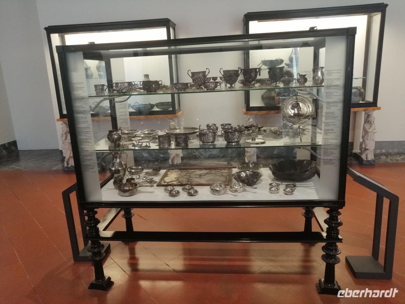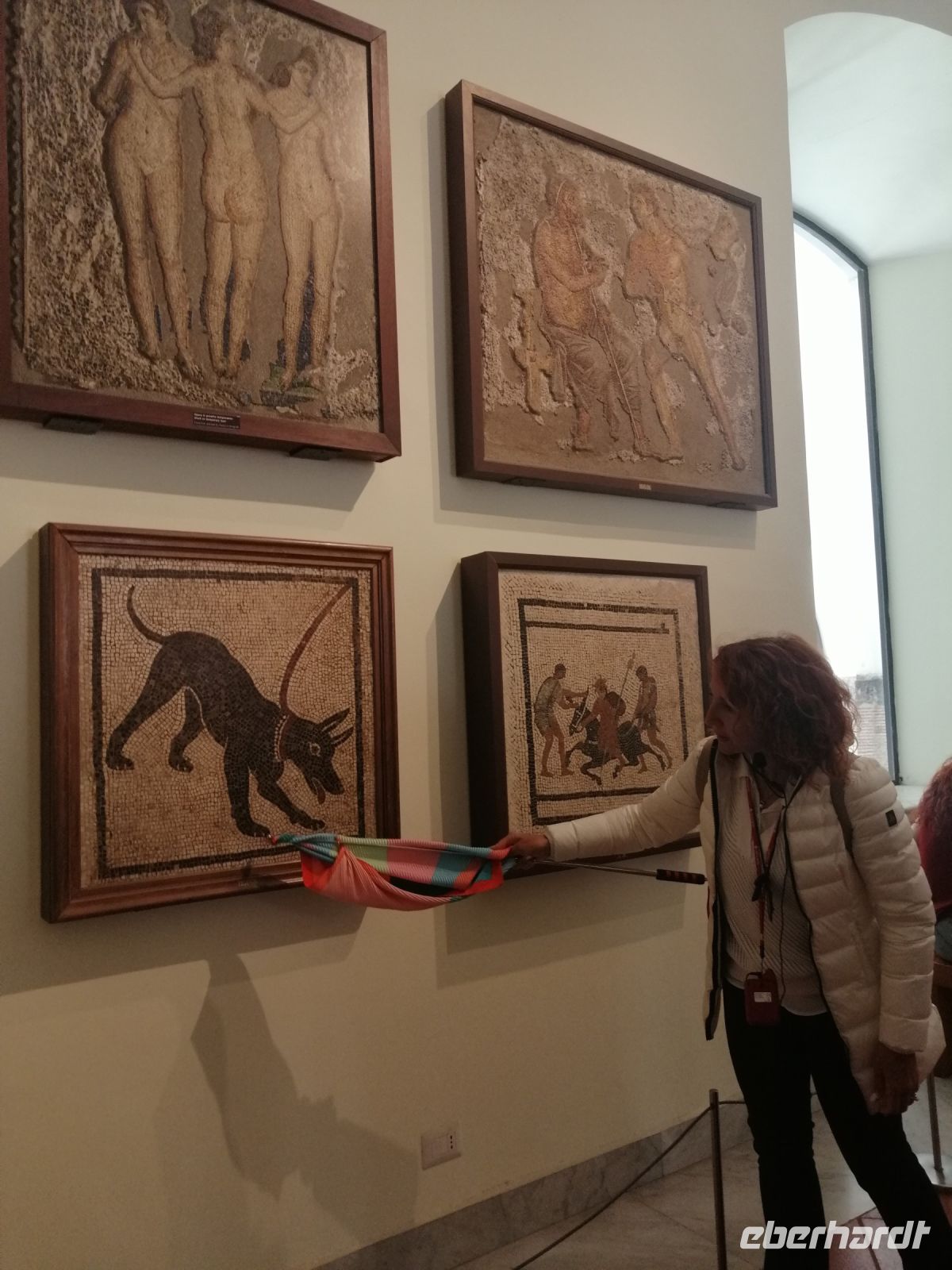 Nach dem leckeren Mittagsessen in der Pizzeria des Pizza-Champions Toto Sapore, besichtigten wir das archäologische Museum von Neapel. Im Museum besuchten wir das berühmte Geheimkabinett, in dem Funde rein sexueller und erotischer Natur ausgestellt waren und wo uns die Laura mit Informationen über Mosaikfresken aus Pompej und Statuen aus dem nahen gelegenen Herculaneum versorgte. Außerdem bewunderten wir im Museum auch das ausgestellte Silbergeschirr und die Ausstellung medizinischen Instrumente, Türgriffe und Öllampen. Besonders beeindruckend war die blaue Vase, auf der wie auf einem Schmuckstein aus weißem Glas hinreißende mythologische Szenen vor dunklem Hintergrund herausgeschnitten wurden – in einer üppigen Weinranke tummeln sich kleine Putten bei der Weinernte und berauschen sich am süßen Wein. Dabei dekoriert das heitere Treiben eine kostbare Urne. Was haben Wein und üppige Natur mit dem Sterben zu tun? Möglicherweise gab es auch bei den Römern die Hoffnung auf ein Leben nach dem Tod! Mit vielen Eindrücken kehrten wir nach Sorrent zurück und freuten uns auf eine Entspannung im Schwimmpool des Hotels oder gleich im Meer, was auch einige Reisegäste auch wahrnahmen.