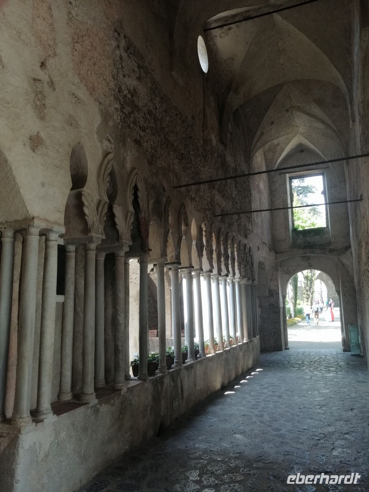 Der heutige Tag stellte gleich von Anfang an eine Herausforderung für uns dar: unser Busfahrer Mario verbrachte fast zwei Stunden in der Verkehrs-Marmelade, verursacht durch einen Verkehrsunfall, der zu einem 17-km langen Stau bei Neapel führte und kam eine Stunde später als vereinbart. Aufgrund eines Missverständnisses in der Reiseausschreibung ging unsere heutige Route nach Ravello über Pompej, Sant Egidio und Corbara. Unsere neue Fremdenführerin - -Daniele – wartete auf uns schon in Ravello und begleitete uns durch die wunderschöne mediterrane Gartenanlage der Villa Rufolo. Wir genossen das atemberaubende Panorama von der Gartenterrasse auf das azurblaue Meer uns lauschten Daniele zu. Sie erzählte uns über die Geschichte der Villa Rufolo und die viele Musikveranstaltungen, die hier regelmäßig stattfinden – unter anderem auch die berühmten Richard-Wagner-Festspiele.