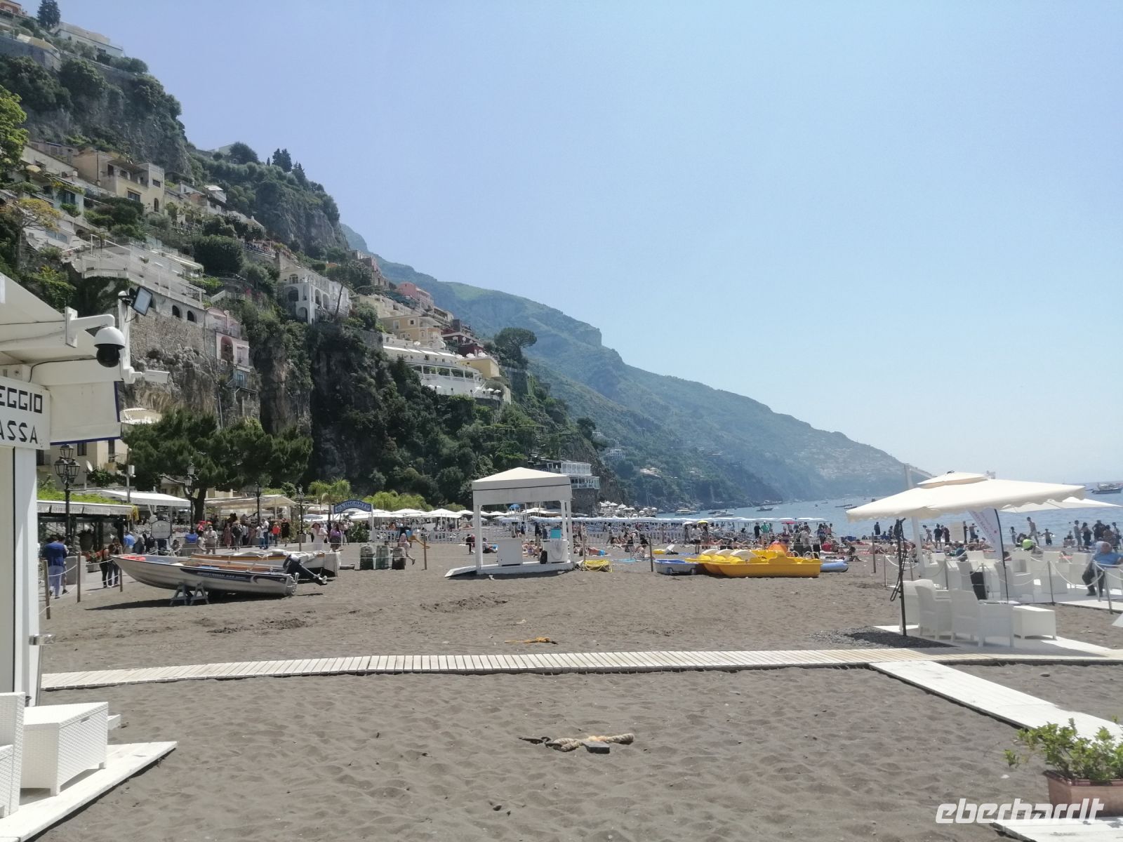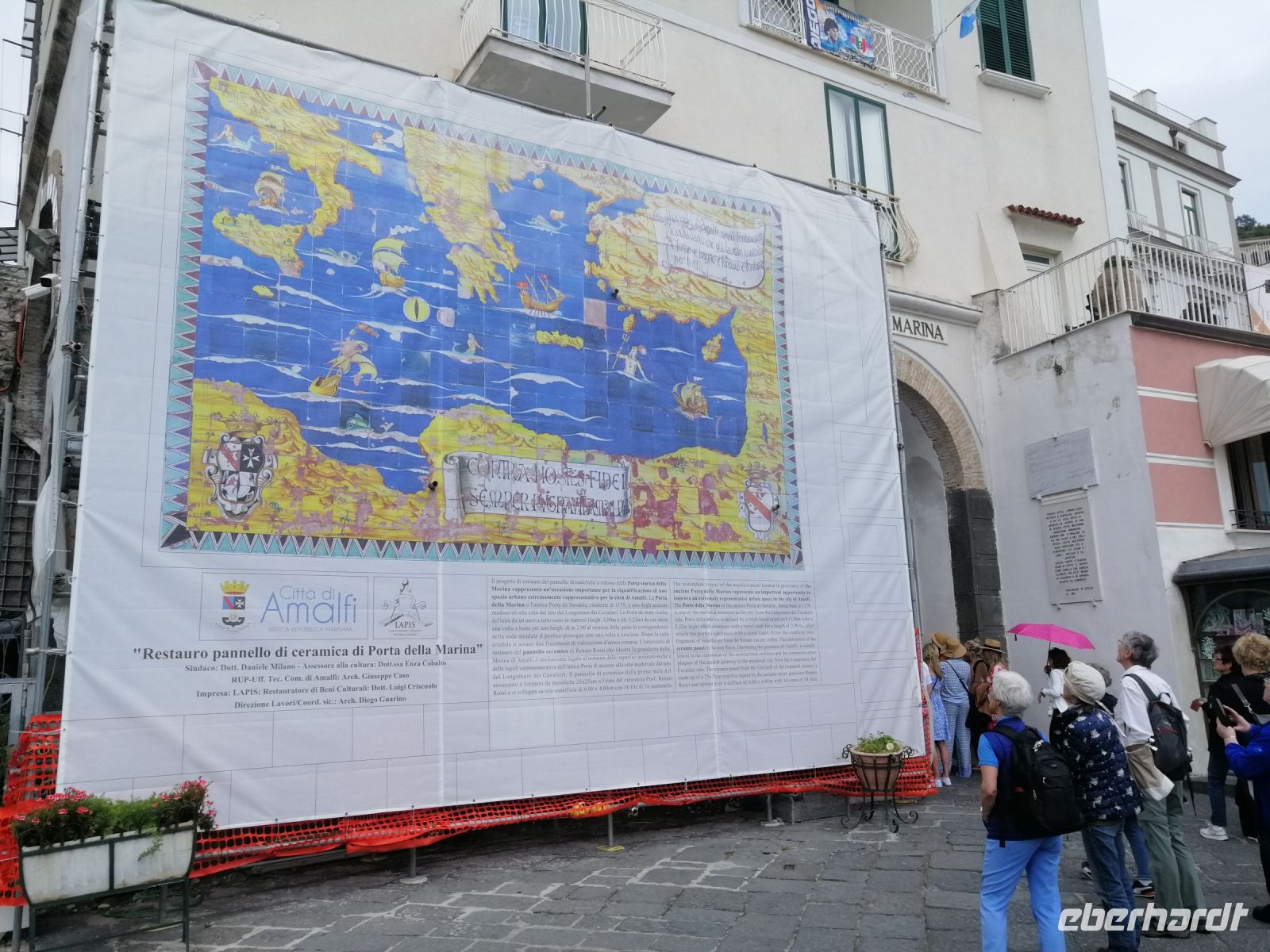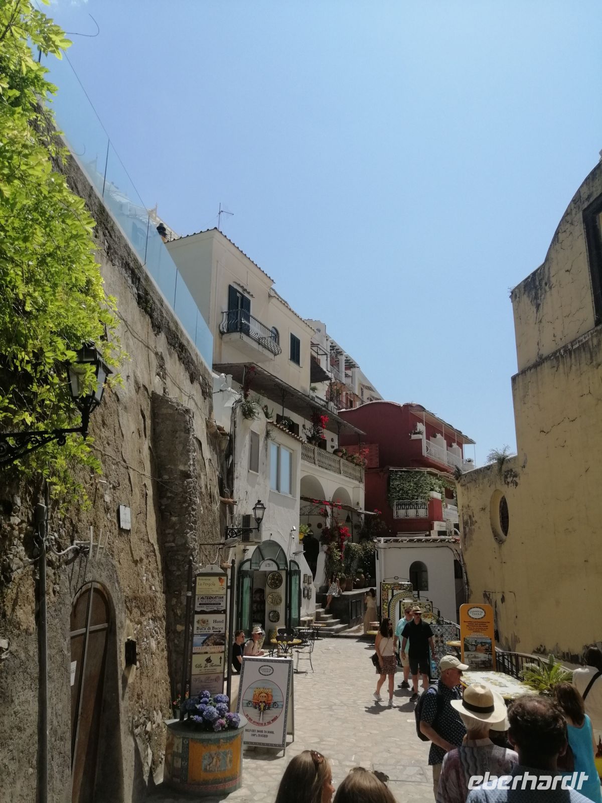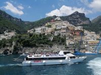 Schon bald erreichten wir den stylischen Badeort Positano – einst Fischerdorf und heute eine sehr beliebte Touristenhochburg. In Positano verließen wir den Reisebus und machten einen kleinen Spaziergang bis zum Zentrum der Altstadt- die Kirche Santa Maria Assunta. Ab hier hatten wir nun die freie Zeit, um Positano selbständig zu erkunden. In Räumlichkeiten der Kirche lief gerade die Krippen-Ausstellung: Übersetzung des Evangeliums ins Neapolitanische, die einige Reisegäste sich gleich angeschaut haben. Ein Teil der Reisegäste nutzte die Freizeit, um durch die Gassen von Positano zu bummeln. Gegen Mittag versuchten wir vom Hafen von Positano mit einem Linienschiff zu kommen. Aufgrund der Bauarbeiten und der großen Menschenmassen, dauerte es leider ziemlich lange, bis unser Schiff kam und wir endlich los gefahren sind.