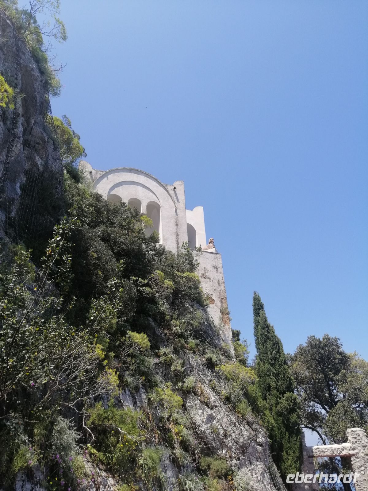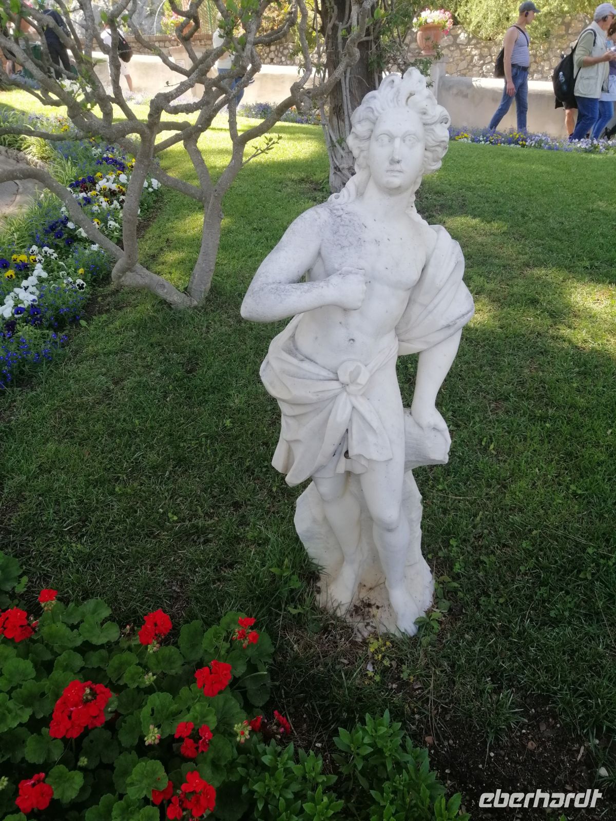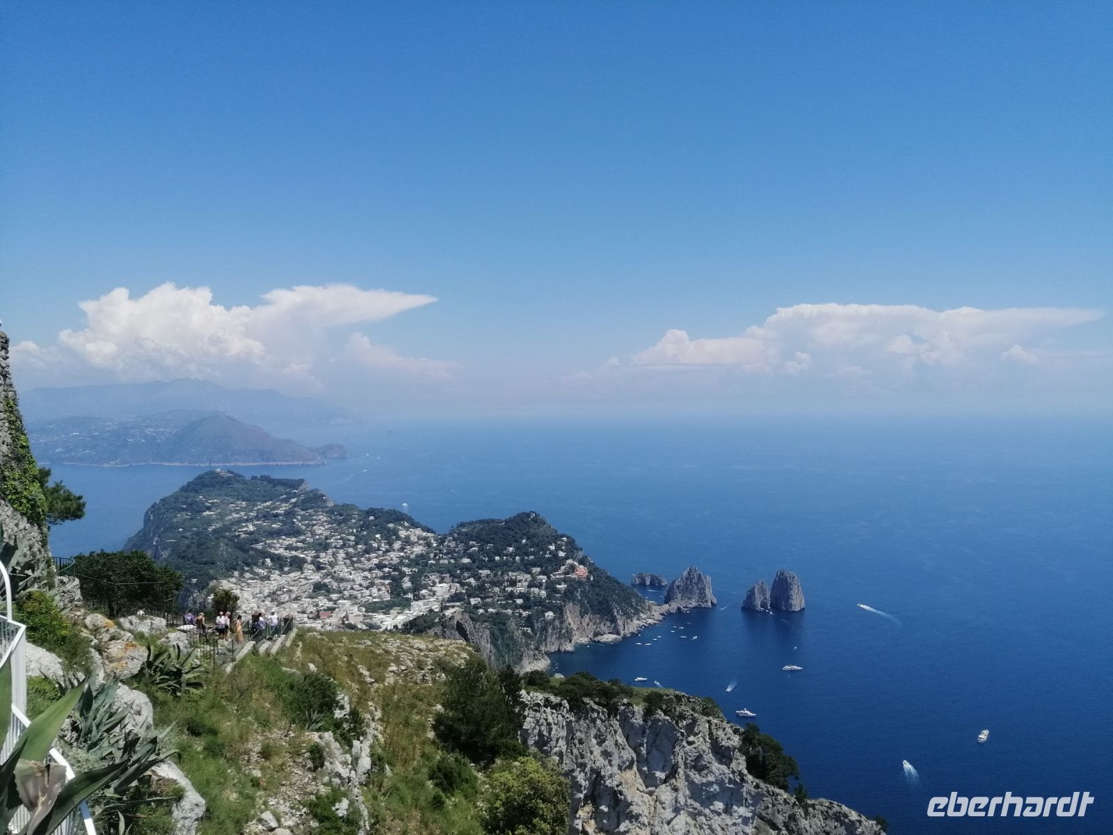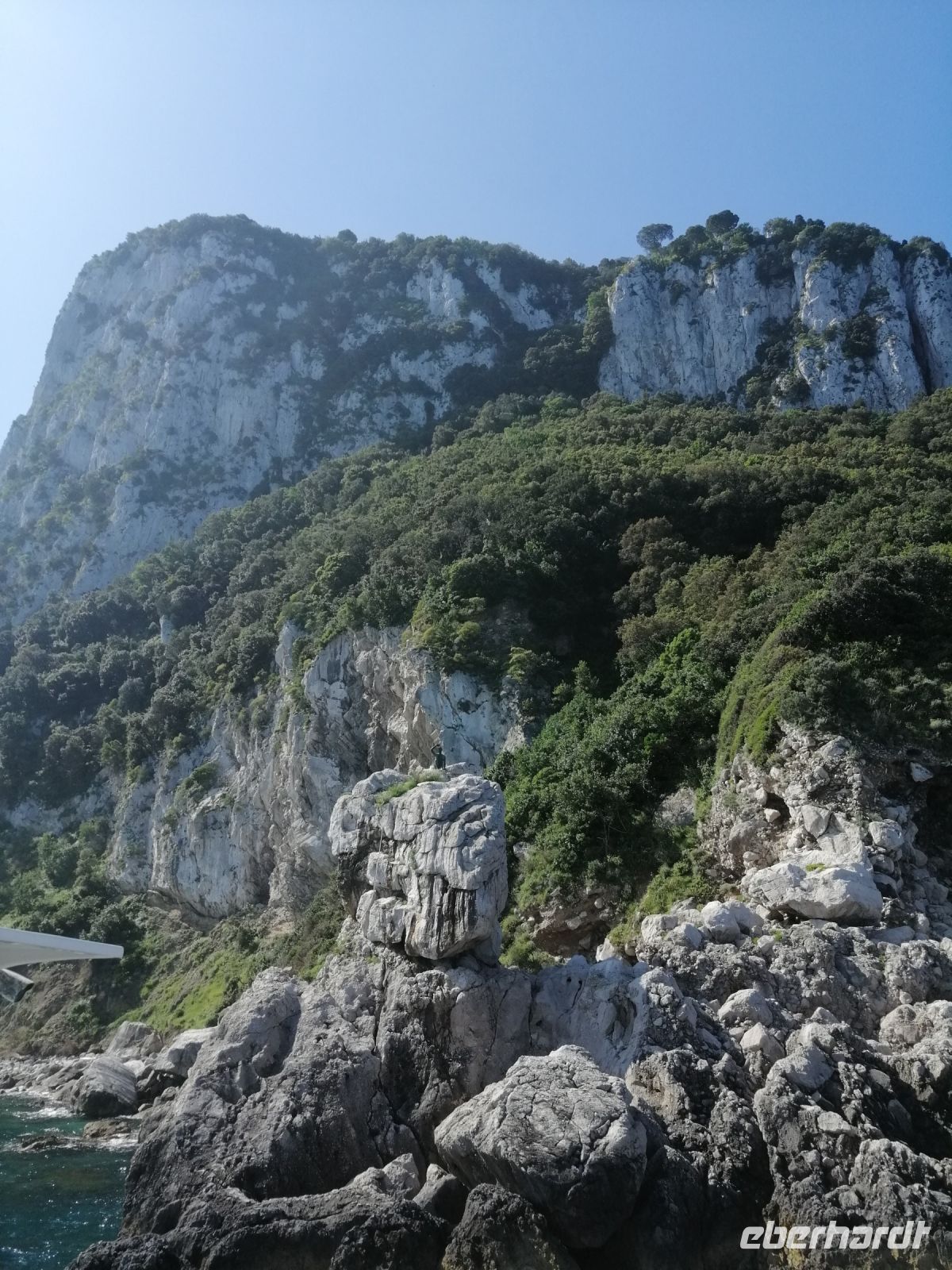 Nach dem Frühstück holte uns unser Busfahrer Ciro in Nocera Superiore ab und brachte zum Hafen von Castellammare di Stabia. Von dort starteten wir unseren heutigen Schiffsausflug zur Insel Capri. Das Wetter heute spielt mit und wir sind alle sehr gespannt auf diese wundervolle Insel! Nach Ankunft in Marina Grande von Capri, stiegen wir gleich auf ein kleineres Boot um und starteten eine Inselrundfahrt: eine ausgezeichnete Möglichkeit die Insel Capri beim besten Wetter von außen kennenzulernen. Der traditionelle Gruß - Ciao Gennarino (!) – an einen jungen Knaben (Gennarino Scugnizzo), der an einem Felsen in Form einer Statue saß, verstärkte nun unsere Erfolgsaussichten auf der Insel zusätzlich! Nach der grandiosen Schiffsrundfahrt mit vielen Grotten, Felsen, fantastischen Aussichten und spannenden Erzählungen von der Laura, kehrten wir zum Hafen von Capri zurück und setzten unsere Inselerkundung mit Anacapri fort.