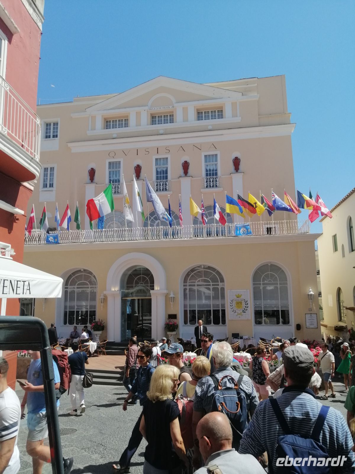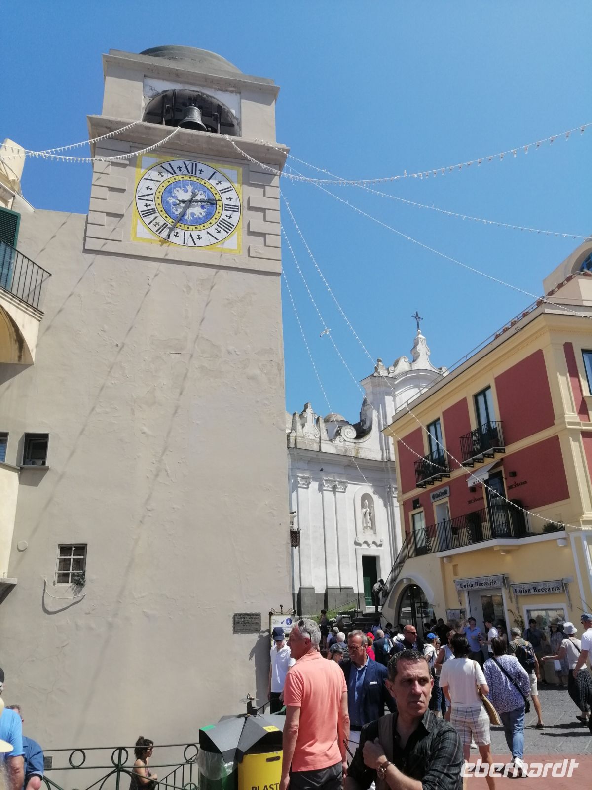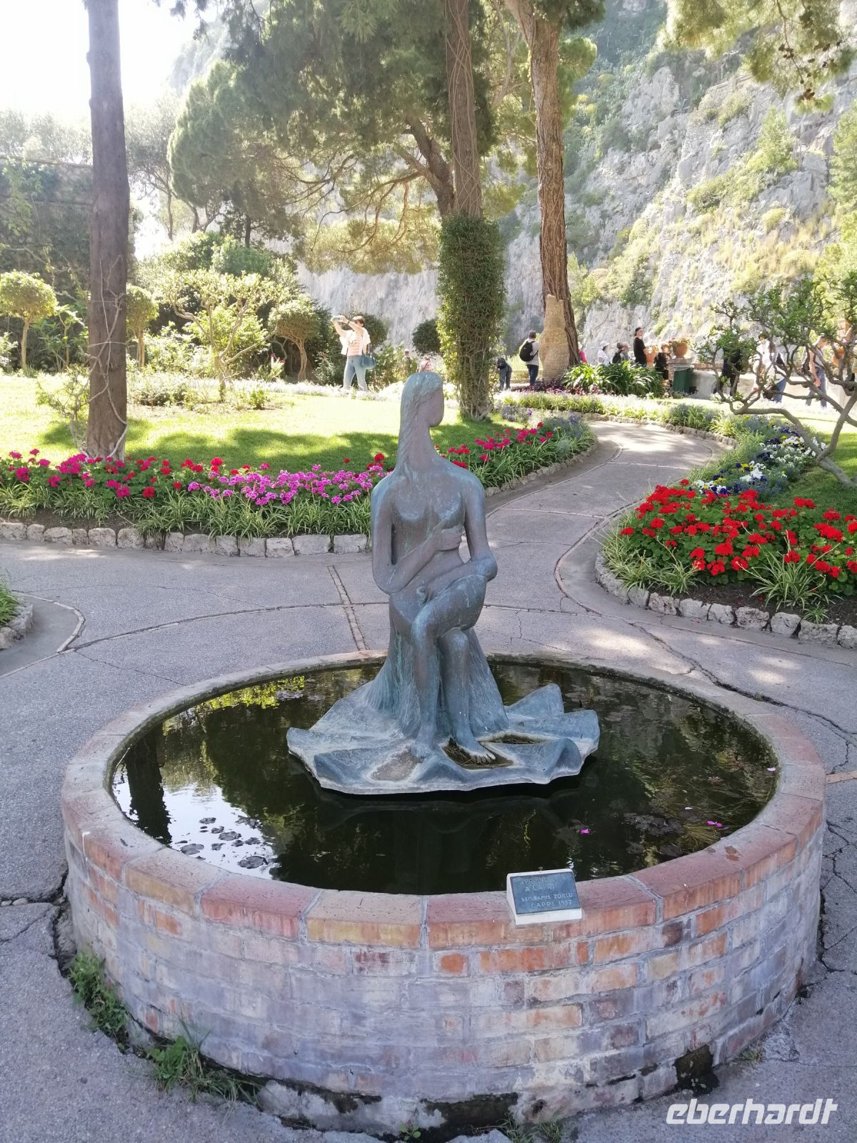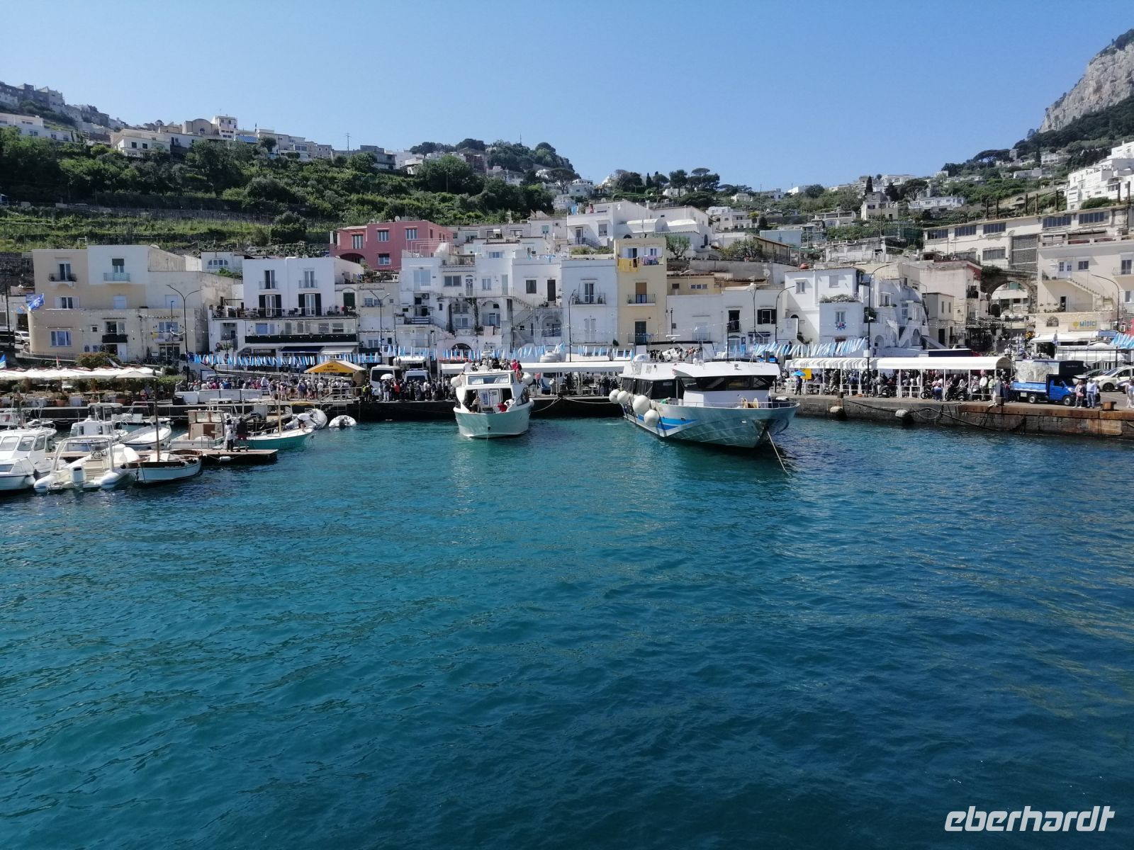 Nach dem Frühstück holte uns unser Busfahrer Ciro in Nocera Superiore ab und brachte zum Hafen von Castellammare di Stabia. Von dort starteten wir unseren heutigen Schiffsausflug zur Insel Capri. Das Wetter heute spielt mit und wir sind alle sehr gespannt auf diese wundervolle Insel! Nach Ankunft in Marina Grande von Capri, stiegen wir gleich auf ein kleineres Boot um und starteten eine Inselrundfahrt: eine ausgezeichnete Möglichkeit die Insel Capri beim besten Wetter von außen kennenzulernen. Der traditionelle Gruß - Ciao Gennarino (!) – an einen jungen Knaben (Gennarino Scugnizzo), der an einem Felsen in Form einer Statue saß, verstärkte nun unsere Erfolgsaussichten auf der Insel zusätzlich! Nach der grandiosen Schiffsrundfahrt mit vielen Grotten, Felsen, fantastischen Aussichten und spannenden Erzählungen von der Laura, kehrten wir zum Hafen von Capri zurück und setzten unsere Inselerkundung mit Anacapri fort.