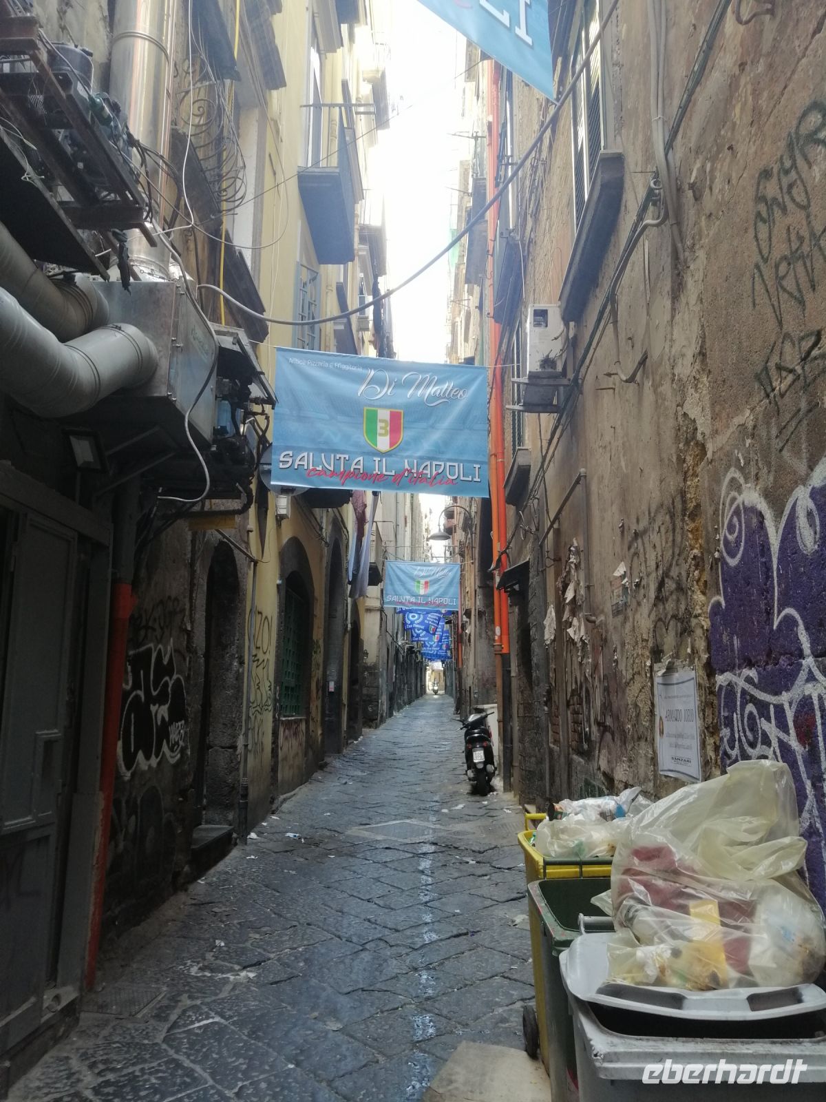 Nach dem gemütlichen Frühstück starteten wir heute Richtung Neapel. Das Wetter ist gut und wir freuen uns auf die Stadt der Gegensätze – so wird Neapel oft beschrieben. Aufgrund von einem für diese Strecke nicht ungewöhnlichen Stau, trafen wir unsere heutige neue Begleiterin - Daniela - etwas später als geplant. Aber Italiener nehmen es gelassen: allora, chi va forte va incontro alla morte: nach dem Motto - wer es zu schnell angeht, der geht dem Tod entgegen. Unseren Stadtrundgang mit Daniela starteten wir mit der berühmten Galerie Umberto I. Diese Galerie wurde als Einkaufspassage von dem Architekten Emanuele Rocco geplant und zwischen 1887-1890 errichtet. Besonders interessant fanden wir den Eingangsbereich in die Galerie von der Theaterseite aus. Die Portalbögen werden von vier Säulen paarweise flankiert. Auf denen des Blindportals befinden sich Marmorstatuen, die in weiblicher Form die vier Kontinente Europa, Asien, Afrika und Amerika darstellen. Auf den Säulen des eigentlichen Eingangsportals befinden sich vier Marmorstatuen, die die Jahreszeiten Herbst, Winter, Frühling und Sommer darstellen. Sie symbolisieren den Lauf der Zeit und sind mit den darüber liegenden Nischen verbunden, wo sich links der Genius der Wissenschaft, mit aufgeschlagenem Buch und Erdkugel und die Arbeit mit Amboss und Schmiedehammer befinden. Bei der abschließenden Figurengruppe darüber flankieren Industrie und Handel, dargestellt mit Zahnrad und Anker auf der linken Seite, sowie rechts die Medizin den Äskulapstab haltend, den Reichtum. Fasziniert von dieser Architektur, legten wir eine kurze Pause ein: um entweder einen echten italienischen Kaffee Napoletano zu probieren oder einfach durch die Stadt in Ruhe zu bummeln.