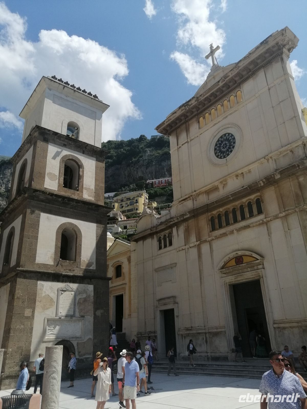 Aber bereits schon hier merkten einige Reisegäste, dass es günstig gewesen wäre schwindelfrei zu sein, um diese anspruchsvolle Fahrt machen zu können. Die Mehrheit der Reisegäste genoss die atemberaubende Ausblicke und hörte Laura zu: vor dem Bau der Straße SS 163 (so wird die Bergstraße auf Landstraßen bezeichnet), waren die Orte an der Amalfitana vor allem auf dem Wasserweg zu erreichen. Im Landesinneren verband sie ein System von Maultierpfaden und Treppenwegen miteinander, von denen einige als Wanderwege genutzt werden. Die Hänge der Ausläufe der Monti Lattari (Milchberge) wurden in Jahrhunderten landwirtschaftlich kultiviert. Wir bekamen die Informationen über die Vegetation der Region: Oliven- und Zitronenbäume aber auch Wein fühlen sich hier besonders wohl. Kruz vor halb elf erreichten wir Positano: eine Perle der Amalfiküste. Ehemals ein kleines Fischerdorf, entwickelte sich die Ortschaft zu einem sehr gefragten Ferienort. In Amalfi unternahmen wir einen kleinen Stadtrundgang und besichtigten den Dom von Sant Andreas, einem heiligen Apostel – mit einem eindrucksvollen Kreuzgang und einer Krypta.