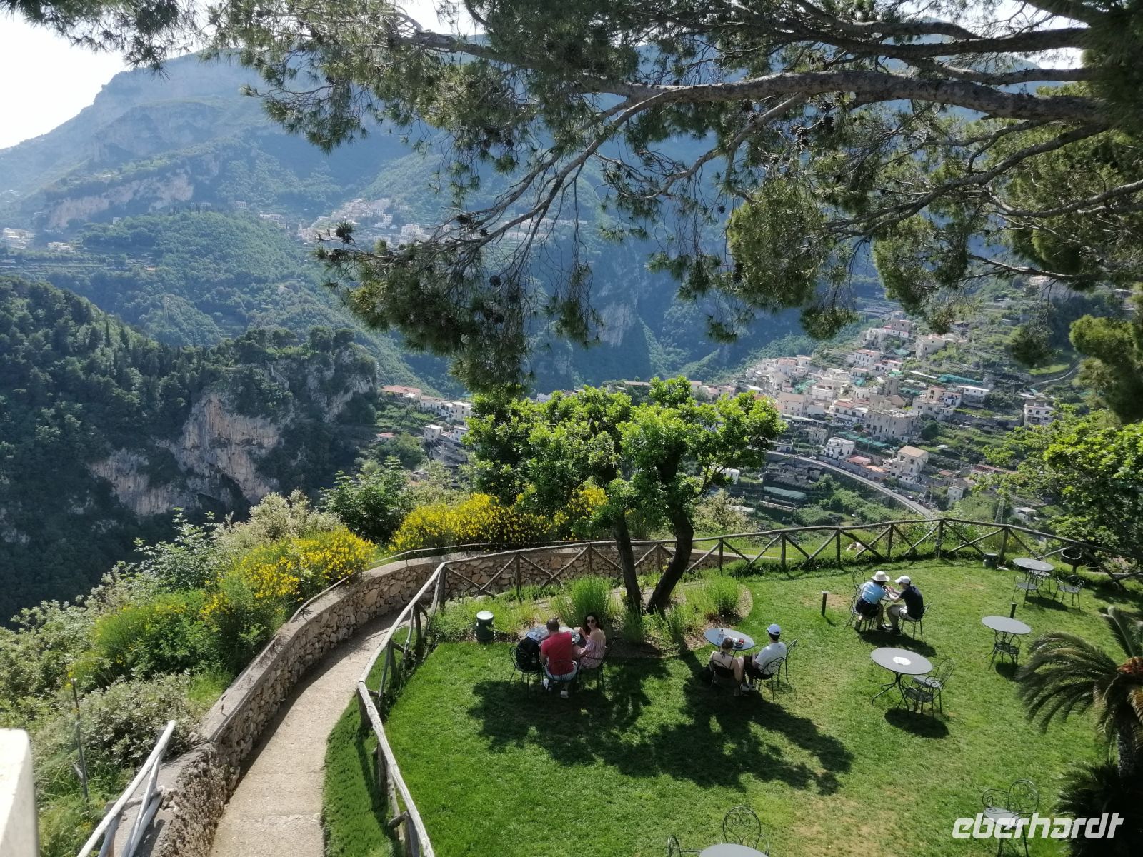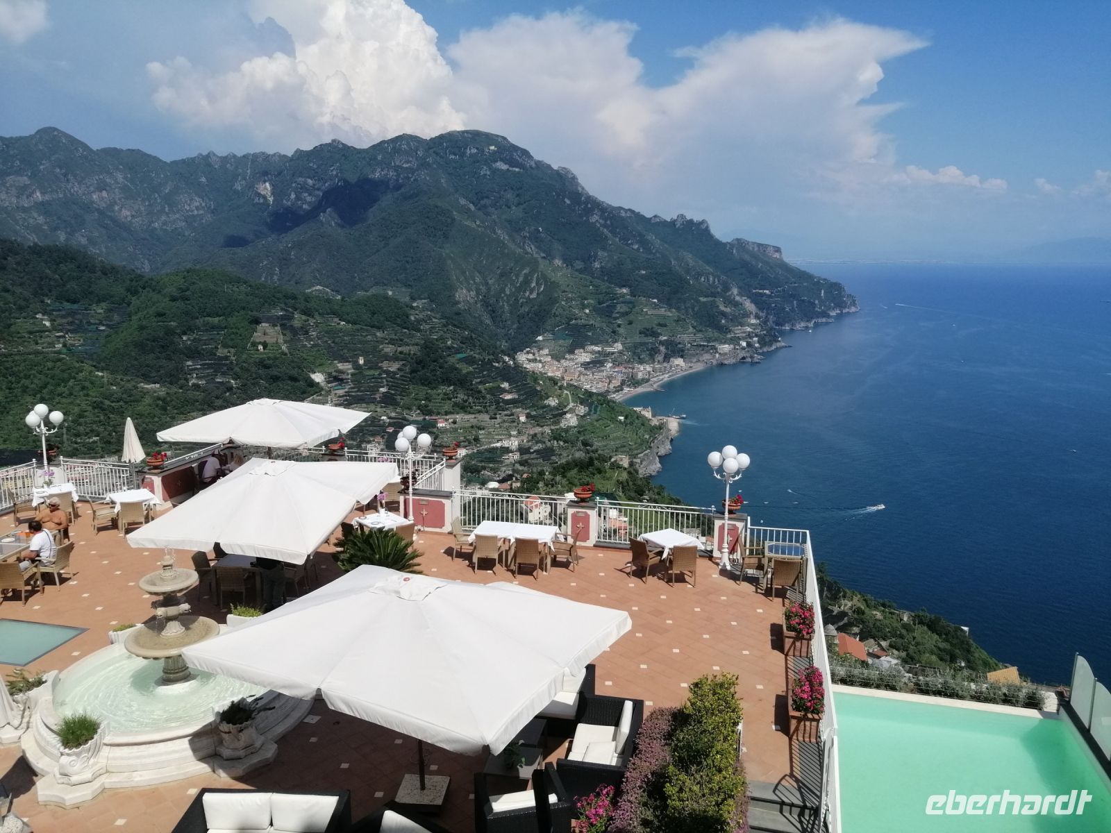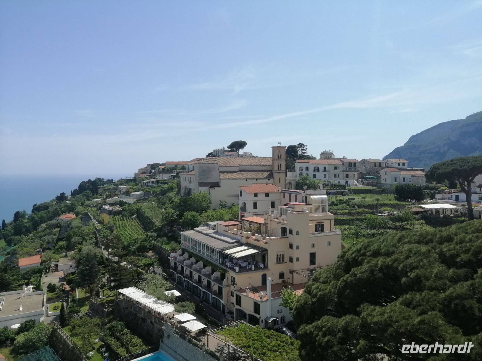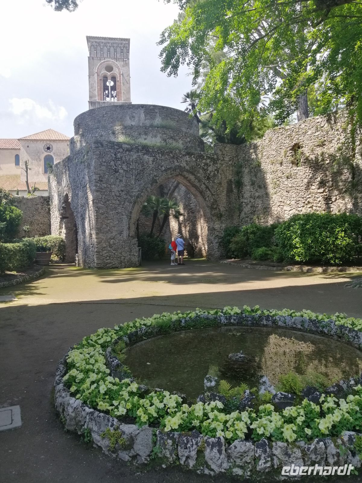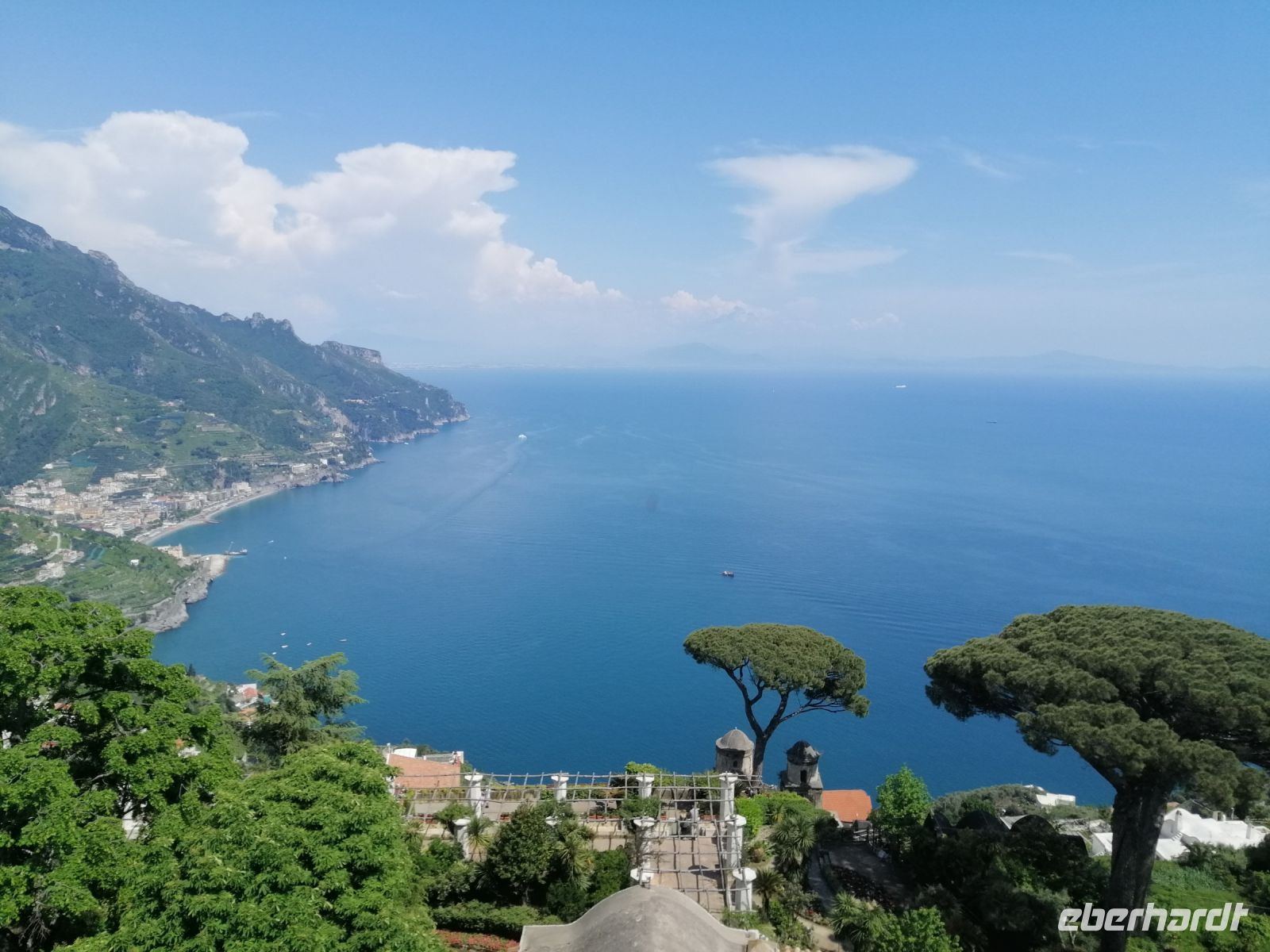 In Amalfi hat uns unsere heutige Begleiterin, Mena, in Empfang genommen, wir stiegen in unseren Bus ein und Ciro fuhr uns in die Berge nach Ravello. Während der kurzen Fahrt informierte uns Mena über die Seerepublik Amalfi und deren maritimen Bedeutung in der Region vom 9. bis zum 13. Jahrhundert. Amalfi war eines der Zentren des italienischen Handels und der Schifffahrt, mit einem eigenen See- und Handelsrecht sowie einer florierenden Schifffahrtsindustrie. Die Stadt hatte auch sehr enge politische und wirtschaftliche Beziehungen zu den anderen Seerepubliken der Region wir Genua und Venedig. Inzwischen waren wir schon in Ravello angekommen und unternahmen gleich einen Rundgang durch die Altstadt. Mena informierte uns über die Geschichte der wunderschönen Bergstadt und gab auch wertvolle Empfehlungen zum Mittagessen. Anschließend besichtigten wir die Villa Rufolo. Mena erzählte uns, dass Amalfitaner erfolgreiche Händler, die mit Ägypten, dem Osten und dem Westen des Mittelmeers Handel betrieben haben. Eine der bedeutendsten Kaufmannsfamilien waren die Händler der Familie Rufolo. Heute finden auf dem Gelände der Villa viele musikalische Veranstaltungen statt – zum Beispiel Musikfestspiele zu Ehren von Richard Wagner. Nach dem Besuch der Villa Rufolo hatten wir noch ausreichend Zeit das Städtchen Ravello in eigener Regie kennenzulernen. Sehr zu empfehlen ist auch die andere bekannte Villa der Stadt mit einem wunderschönen Garten: die Villa Cimbrone! Es ist unglaublich aber wahr: man kann tatsächlich viel Zeit in diesem kleinen Ort verbringen und wunderbare Eindrücke und Erlebnisse sammeln. Später trafen wir uns zu der vereinbarten Uhrzeit und fuhren zum Hotel Villa Albani zurück.