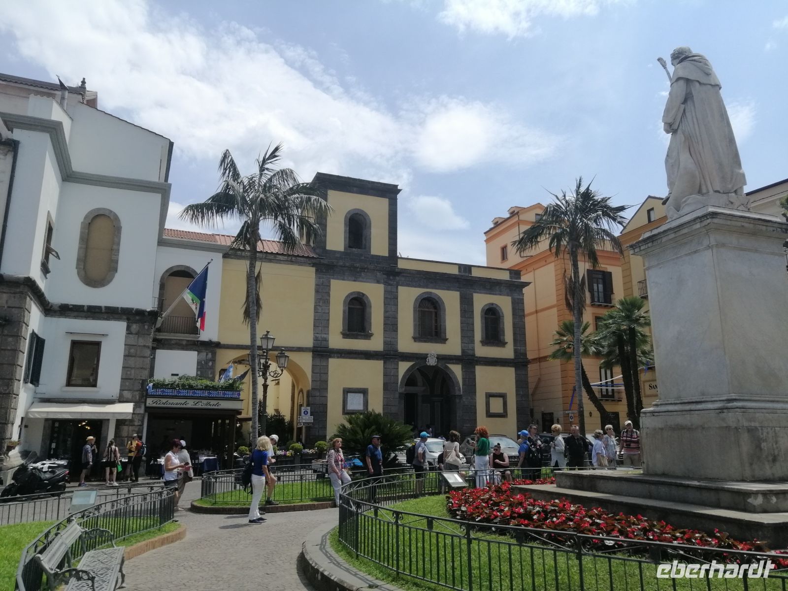 Wir freuten uns auf den heutigen Tag besonders sehr: denn heute betreute uns die Laura wieder und zwar in ihrer Geburtsstadt Sorrent. Außerdem steht heute auch noch einen Kochkurs auf der Agenda! Also, wir starteten die Stadtbesichtigung mit dem Besuch der Zitronen-Kooperative direkt am Busparkplatz. Eine kleine Limoncello-Verkostung steigerte unsere gute Laune zusätzlich und wir gingen dann zum Hauptplatz der Altstadt - Piazzo Tasso. Der Piazzo trägt den Namen einen eiheimlichen Dichters Torquato Tasso. Anschließend gingen wir zum Tal der Mühlen und schauten uns den verborgenen Schatz von Sorrent an. Laura erzählte uns über eine um 900 n.Chr. erbaute und erst im 19. Jahrhundert verlassene Getreidemühle, die dem Tal seinen Namen gab. Durch die engen Gassen gingen wir dann zur Kathedrale von Sorrent weiter und schauten uns diese auch von innen an. Besonders interessant war die Krippenvitrine, an der Laura sich mehr Zeit genommen hat, um uns darüber zu informieren. Danach spazierten wir zum letzten erhalten gebliebenen Adelssitz der süditalienischen Region Kampanien - Sedil Dominova und bewunderten die schönen Fresken dieses Hauses aus dem 14. Jahrhundert. Laura erzählte uns, dass früher in diesem Gebäude sich der Adel der Stadt versammelte, um politische Angelegenheiten zu besprechen und zu regeln. In Sorrent besichtigten wir ebenfalls die Küstenpromenade, von der aus der Hafen der Stadt zu sehen war und den Platz von Sant Antonino. Am Denkmal von Sant Antonino informierte uns Laura über die Basilika, die zu den wichtigsten Kirchen von Sorrent zählt und dem Schutzpatron der Stadt – Sant Antonino -gewidmet ist.