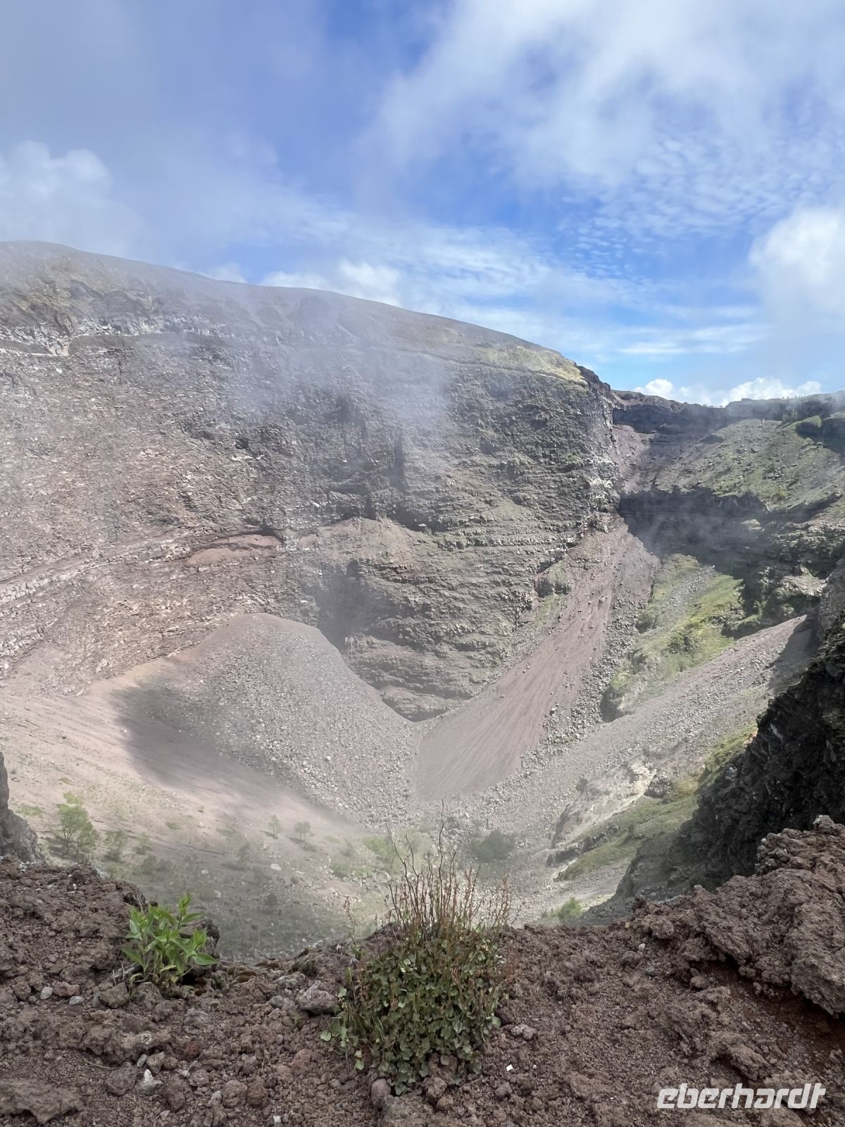 Nun war ein gewisses Abenteuer angesagt. Auch wenn der Vulkan tief und fest schläft, der Aufstieg ist nicht ganz ohne. Mit festem Schuhwerk ging es den steilen Anstieg hinauf zum Kraterrand. Jeder konnte in seinem Tempo den Kraterrad erobern. Heute wurde nur eine Zigarre geraucht. Zum Abschluss ging es in ein Weingut in der Nähe vom Pompeji. Vulkangestein lässt dort edel Tropfen reifen, die wir zusammen mit kleinen Leckereien als eine Art Aperitivo genossen. Danach ging es zum Hotel zurück.