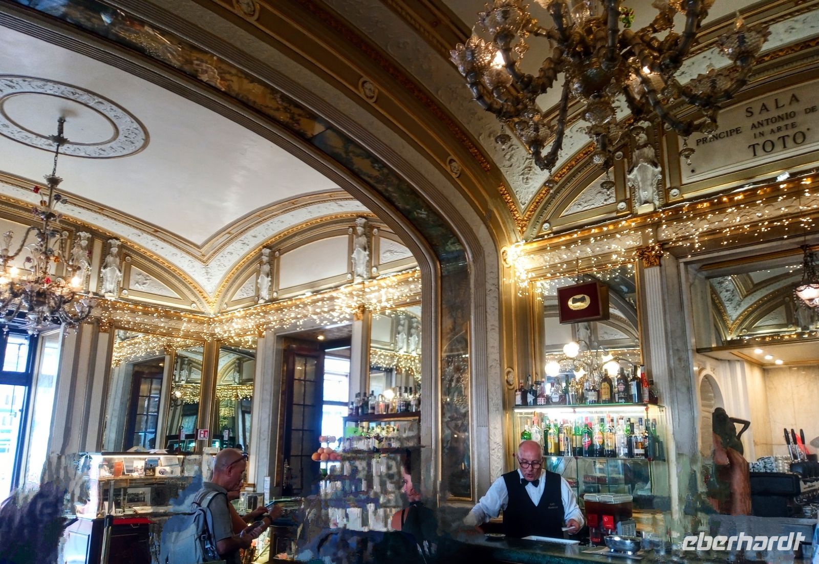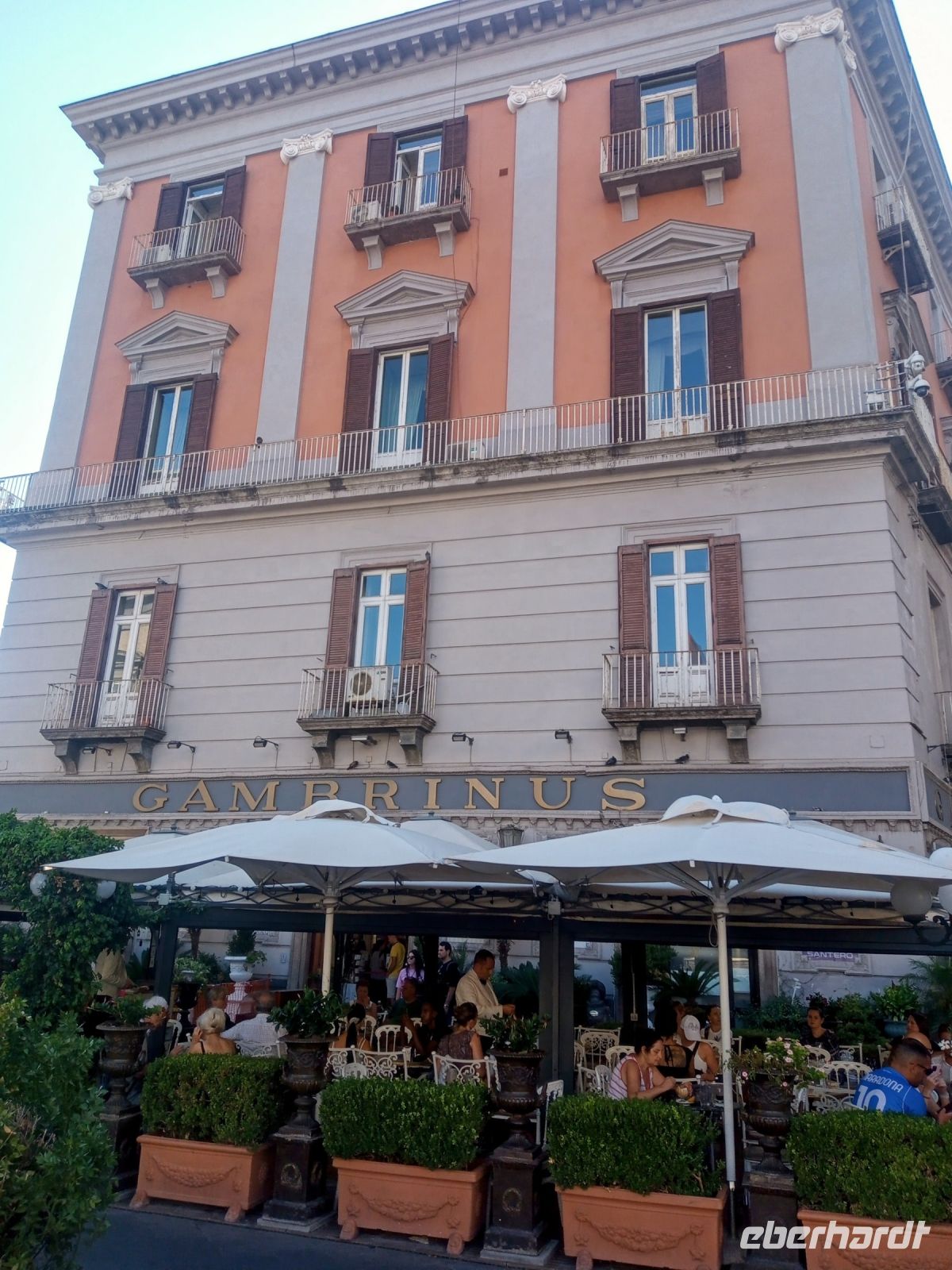 Zur Mittagszeit wollten alle die Möglichkeit nutzen, eine echte neapolitanische Pizza zu probieren, die in Neapel ja traditionell weich und nicht knusprig ist. Gut gestärkt setzten wir nach der Mittagspause unseren Stadtrundgang fort und bestaunten die berühmte Krippengasse. Bei laufenden Erklärungen zu vielen weiteren Prachtbauten erreichten wir schließlich die mächtige Galleria Umberto I die in nur drei Jahren errichtet wurde, das älteste und erste Opernhaus Italiens sowie die Piazza Plebiscito, wo wir einen herrlichen Blick auf den Palazzo Reale hatten. Nicht weit davon befindet sich das historische Café Gambrinus,wo wir uns einen starken Espresso genehmigten bevor wir nach etwas Freizeit den Rückweg antreten wollten. Die verschiedenen Eindrücke der Stadt – von der historischen Architektur bis hin zu den lebendigen Straßen sind schon ein echtes Erlebnis.