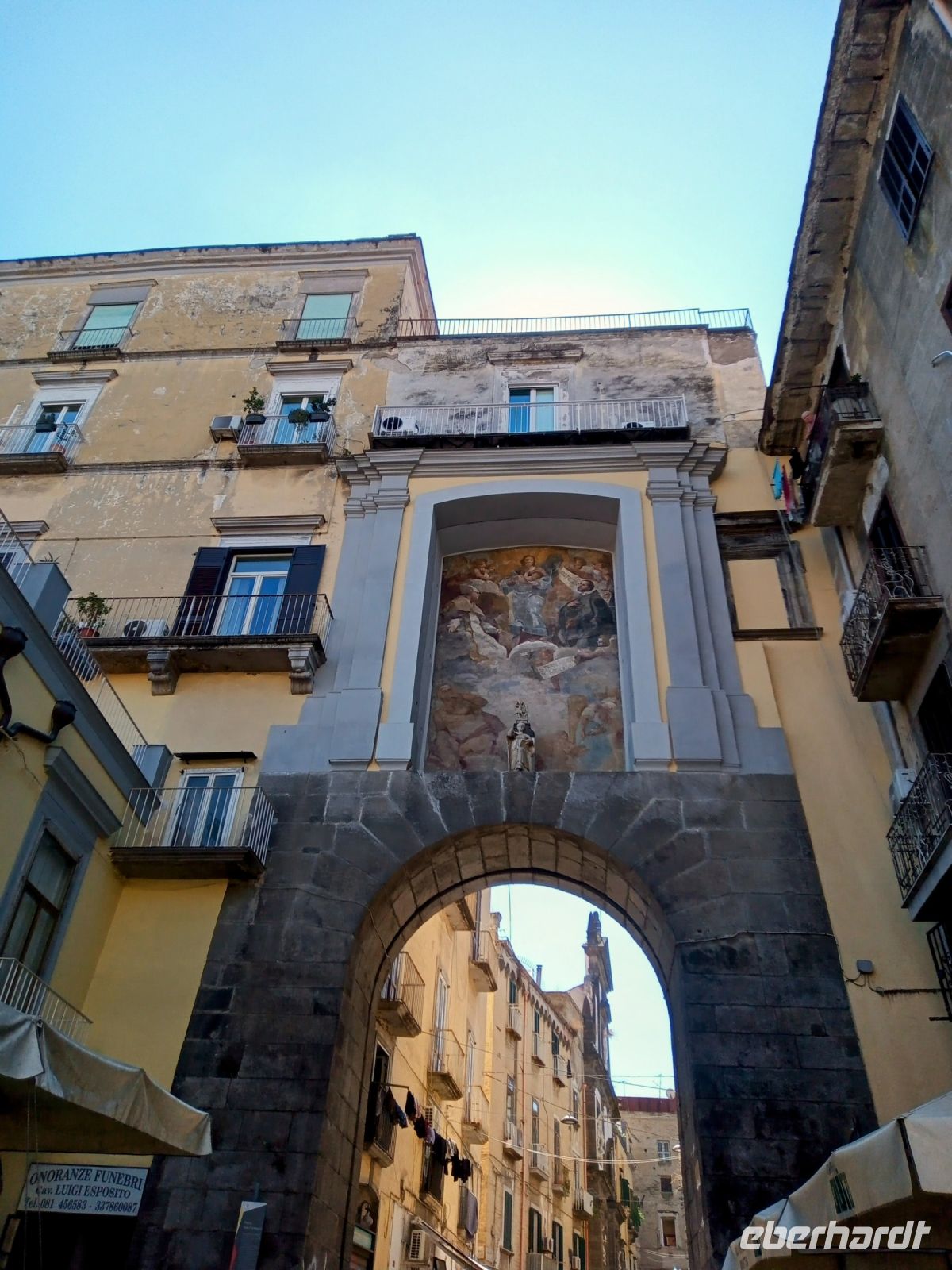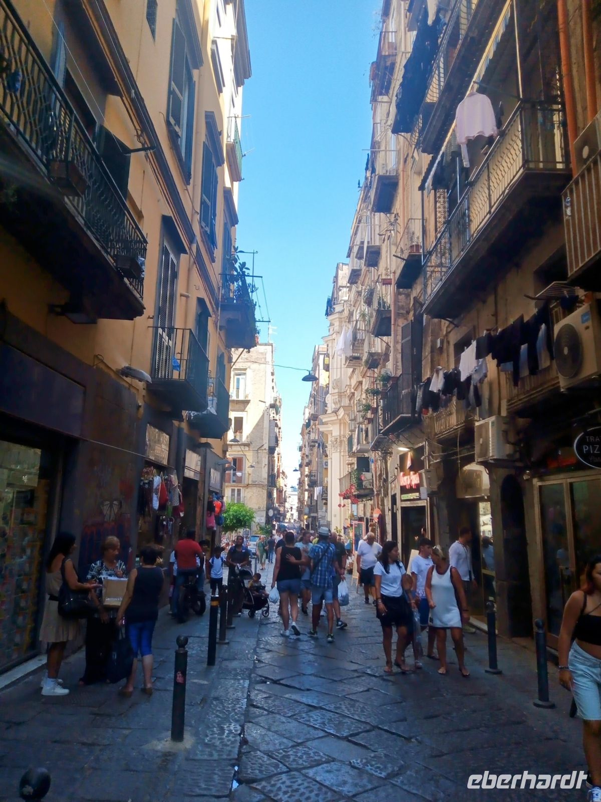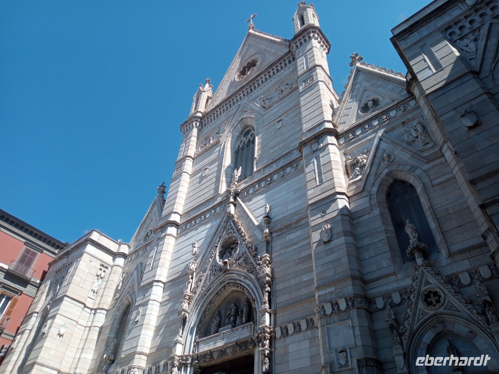 Nach dem Museumsbesuch begann unsere Erkundung der Altstadt Neapels zu Fuß. Wir spazierten bis zum imposanten Dom, den wir von innen besichtigen. Interessant und für uns etwas befremdlich war der Mythos um den heiligen Gennaro. Das eingetrocknete Blut des früheren Bischofs wird im Dom in zwei Ampullen in einer silberner Monstranz aufbewahrt. An den Gedenktagen werden diese in die Reliquienkapelle gebracht, geschüttelt, und meist verflüssigt sich dann der Inhalt vorübergehend.