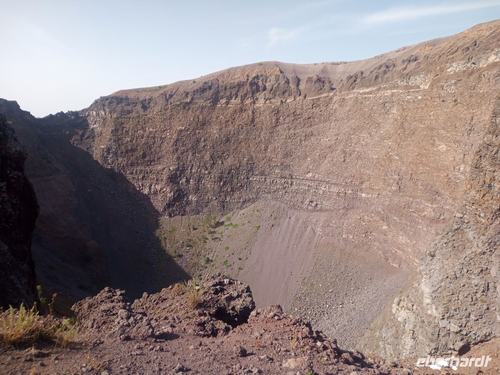 Frisch gestärkt ging es weiter zum Höhepunkt des Tages: der Aufstieg zum Vesuv. Der Vesuv erhebt sich majestätisch über den Golf von Neapel und bietet einen spektakulären Anblick. Der Aufstieg zum Kraterrand war eine Herausforderung – 300 Meter steil bergauf, bei schwüler Hitze –doch die Mühe wurde belohnt. Wir erreichten den Gipfel und blickten in den riesigen Krater des Vulkans. Der Anblick war überwältigend, und die Ausblicke über die Bucht von Neapel waren atemberaubend.