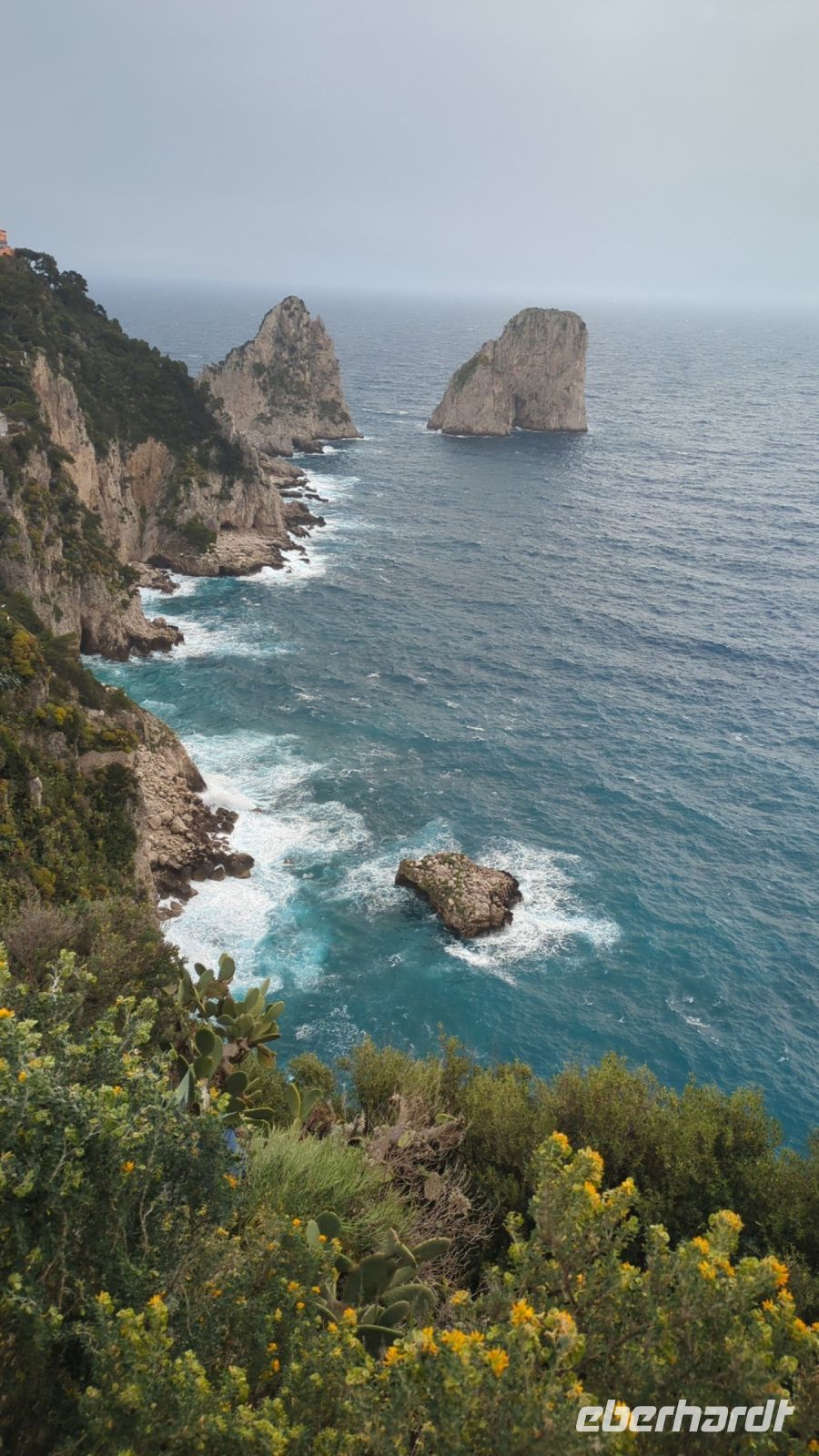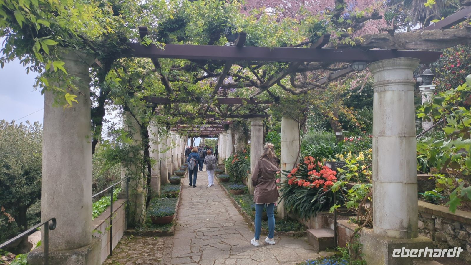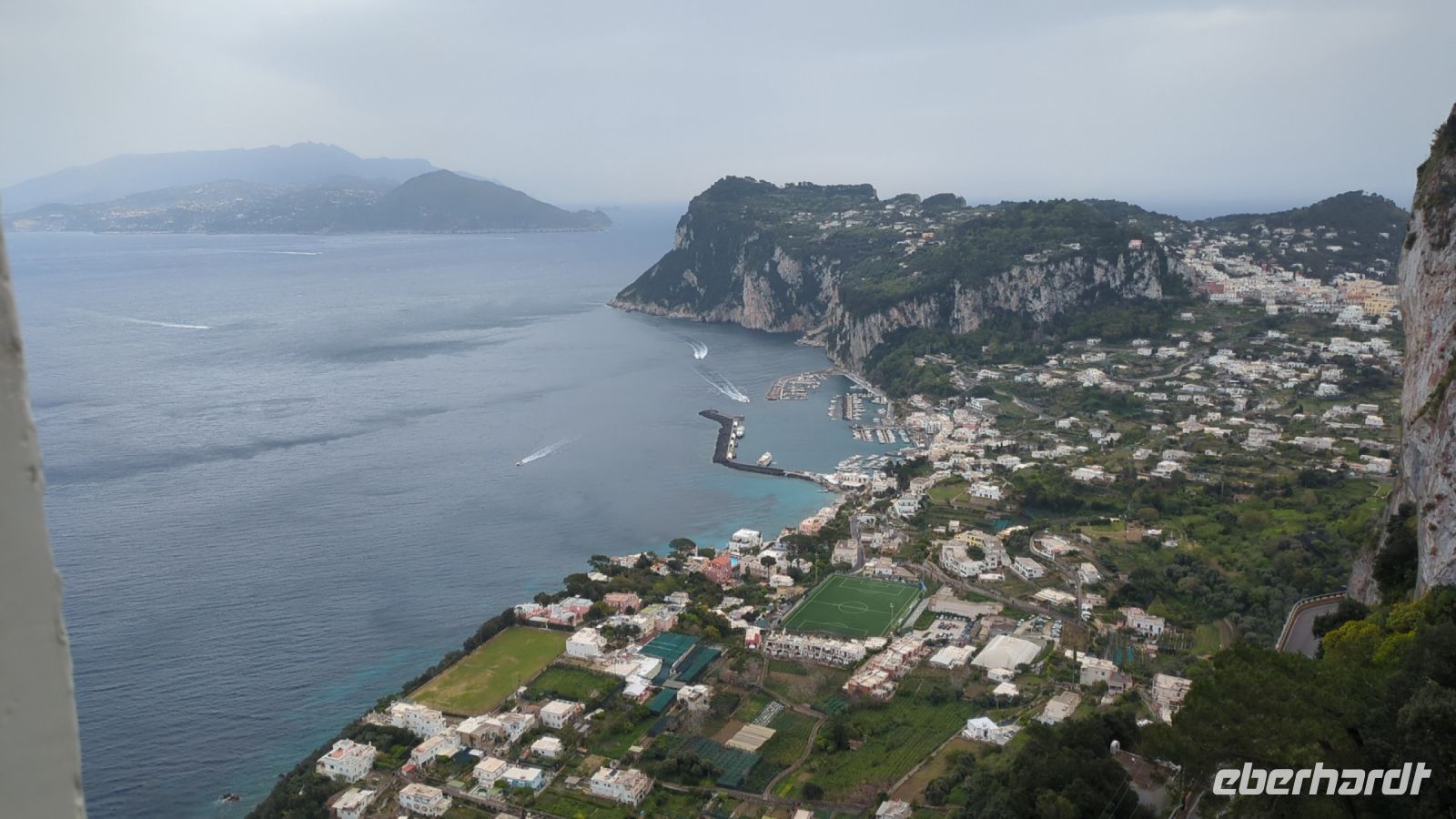 Am Morgen erreichten wir nach einem kurzen Fußweg im Hafen von Castellammare unser Schiff, das uns nach Capri brachte. Dort angekommen erwarteten uns bereits die Kleinbusse, die uns zunächst nach Anacapri, einem der beiden Orte auf Capri brachte. Da die Straßen sehr eng sind, können Busse normaler Größe auf Capri nicht fahren. Anacapri ist der kleinere Ort auf Capri. Er ist weniger überlaufen. In Anacapri besichtigten wir die bekannte Villa San Michele, des schwedischen Arztes Axel Munthe, der diese Ende des 19. Jahrhunderts errichten ließ. Nach einem schmackhaften Mittagessen, bei dem sich die meisten Gäste natürlich für Pizza entschieden, fuhren wir in den Ort Capri, den Hauptort der Insel. Der von Katia geführte Stadtrundgang brachte uns auch in die Augustgärten. Diese sind ein botanisches Kleinod, das vom Deutschen Industriellen Alfred Krupp im frühen 20. Jahrhundert angelegt wurde. Gleich daneben befindet sich die Villa von Albrecht Krupp.