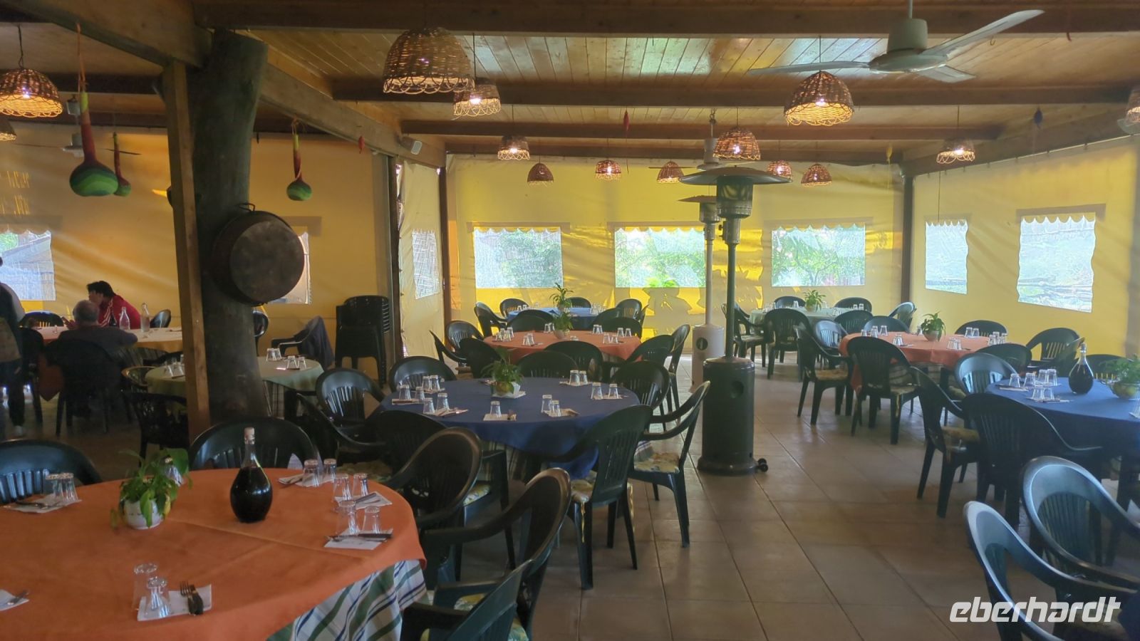 Anschließen fuhren wir in die Cantine del Vesuvio, einem malerischen Landgasthof inmitten von Weinbergen am Hang des Vesuvs. Hier gab es für uns mehrere Sorten selbst hergestellten Wein und ein reichhaltiges neapolitanisches Essen.