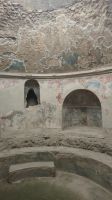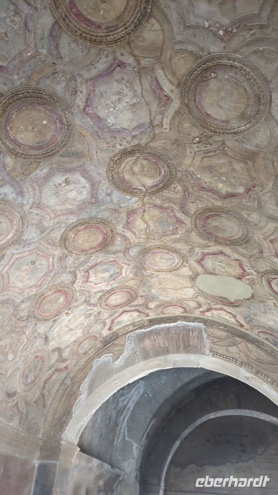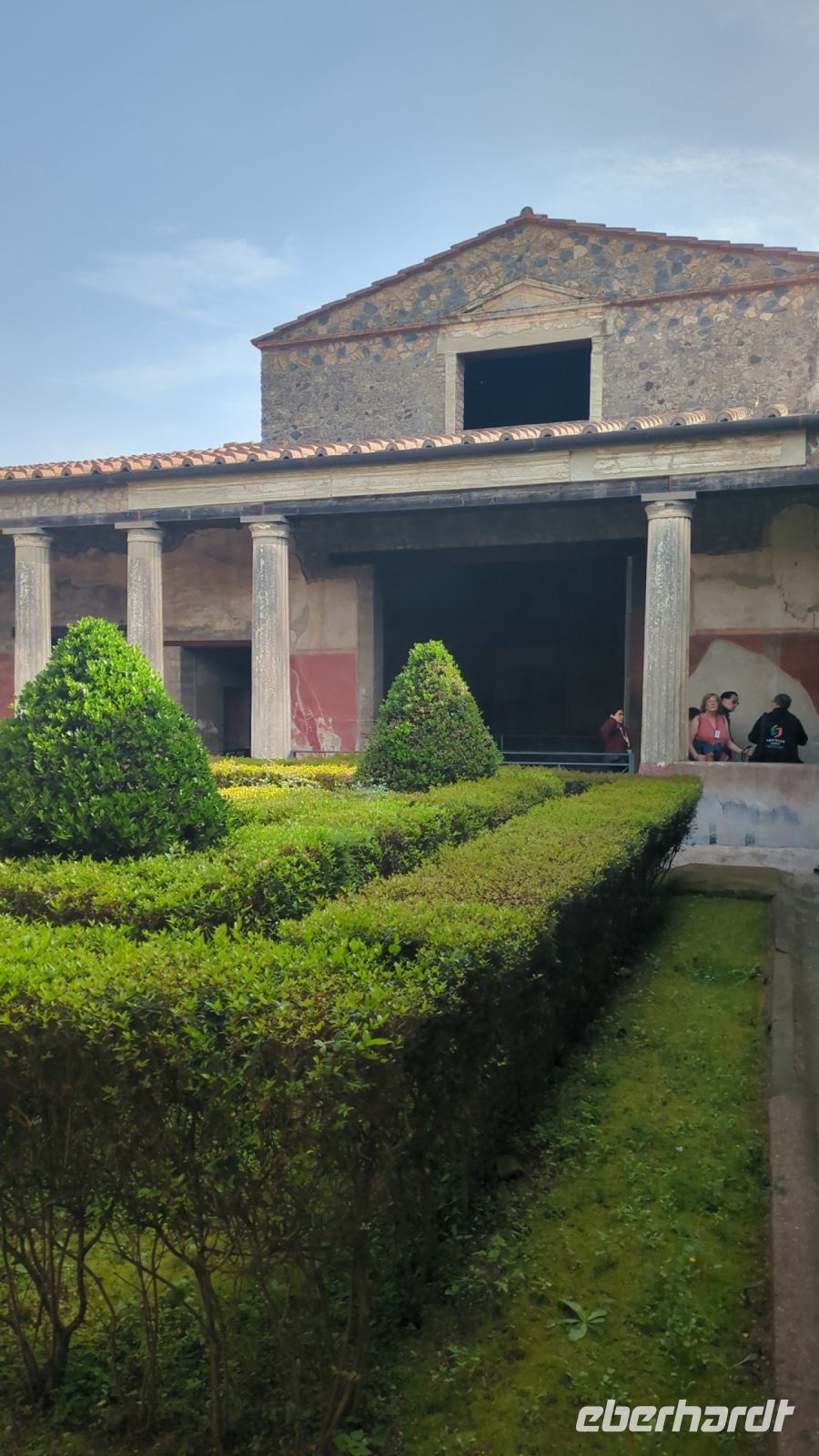 Bei unserem Rundgang sahen wir das Amphitheater, das mehreren tausend Zuschauern Platz bot, die Straßen, deren Pflasterung noch heute hält und natürliche viele Gebäude mit Innenhöfen, Wandmalereien und Brunnen. Ausführlich sahen wir uns ein Badehaus mit seiner gut durchdachten Heizung an.