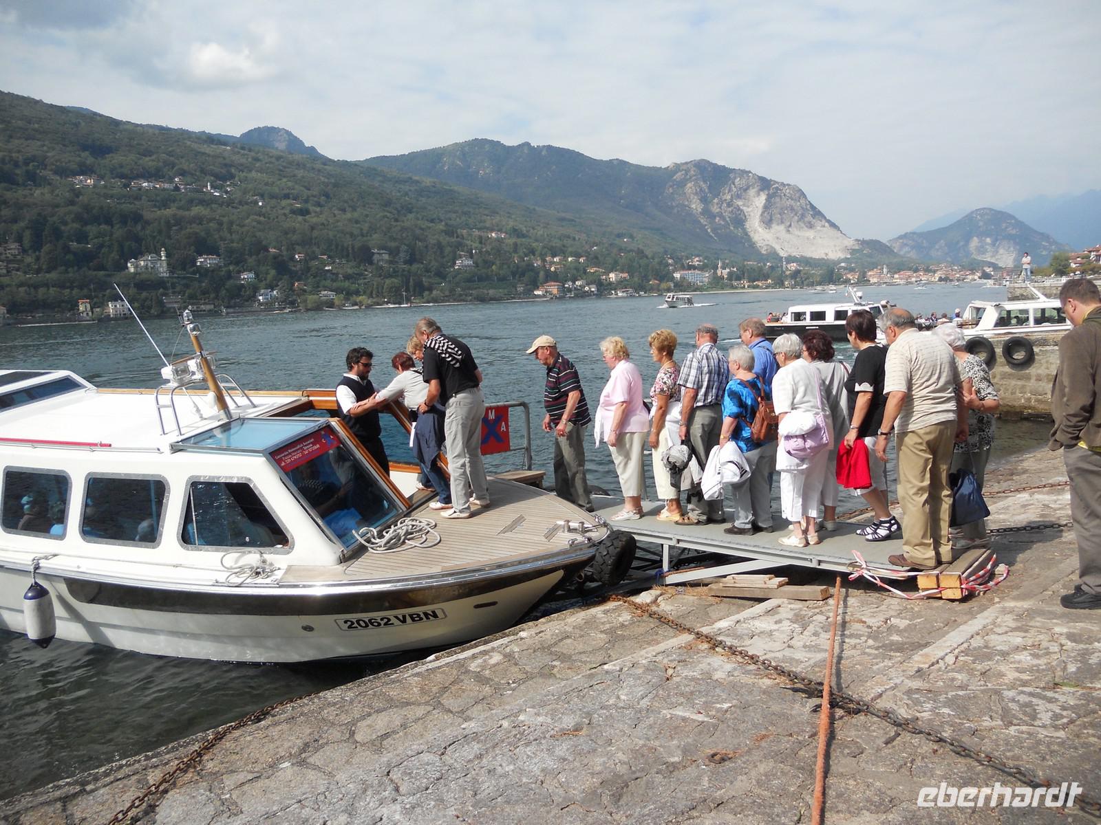 Nach der langen Anreise gibt es am 2. Tag einen busfreien Tag, wir steigen um aufs „Boot" und genießen einen herrlichen Sonntag auf dem Lago Maggiore. Wir starten von der Bootsanlegestelle unmittelbar am Hotel, wegen niedrigem Wasserstand müssen wir ein wenig weiter laufen. Dann fahren wir zu den berühmten Borromäischen Inseln, zuerst zur Isola Bella, der „Schönen". Wir besichtigen den prachtvollen Palast mir örtlicher Führung, und genießen anschließend jeder individuell, die herrliche barocke Gartenanlage. Bei schönstem Sommerwetter! Danach fahren wir zur nahen Isola Pescatori, der „Fischerinsel". Malerische Gassen und Plätze erwarten uns, mit einladenden Ristorante. Zum Abschluß verbringen wir den Tag in Stresa, dem mondänen Küstenort mit quirliger Altstadt und üppig grüner Seepromenade. Dann fahren wir mit dem Boot zurück übern See zu unserem Hotel in Ispra.
