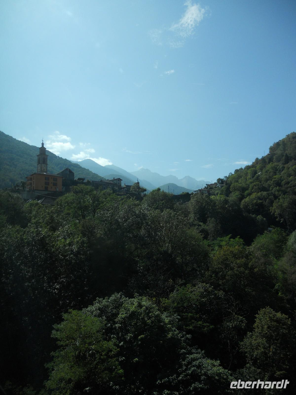 Am 3. Tag unserer Reise fahren wir mit der Centovallibahn, von Domodossola in den italienischen Alpen bis nach Locarno in der Schweiz. Dabei sind etwa 1100 m Höhenunterschied zu überwinden, das macht die Fahrt so abwechslungsreich und spannend. Der Panoramazug führt uns über 83 Brücken und durch 31 Tunnel, und durch eine wunderbare Landschaft. Schwierig ist nur das Fotografieren, man muss ziemlich schnell sein, oder halt in Ruhe nur im Jetzt mit den Augen genießen. In Locarno angekommen orientieren wir uns ein wenig gemeinsam, und dann bestimmt jeder seinen eigenen Weg. Denn es ist Mittagszeit und ziemlich heiß, da bietet sich vor allem ein Spaziergang an der schattigen Uferpromenade an: genießen und lustwandeln. Die Rückfahrt mit dem Bus führt uns entlang der Westseite des Lago Maggiore zurück nach Ispra.