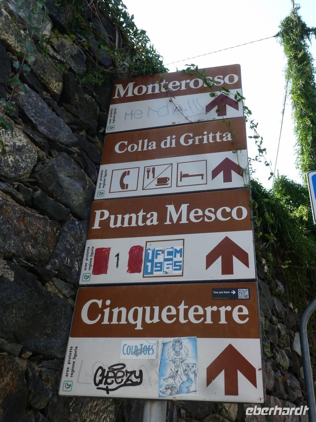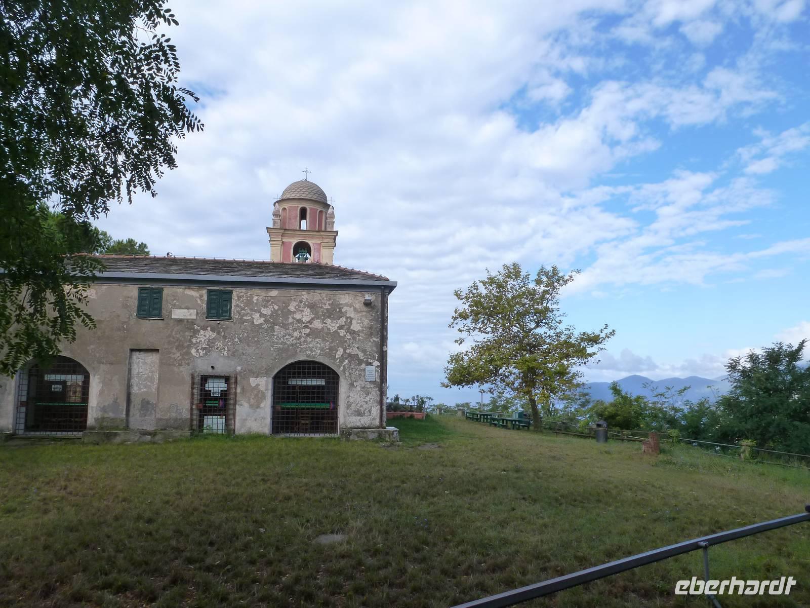 Nur 341 Höhenmeter sind es vom Bahnhof in Riomaggiore bis zur Kirche „ Madonna di Monte Nero". Nach einer Stunde und 15 Minuten Anstieg haben wir die Kirche erreicht. Eine Rast mit herrlicher Aussicht auf Riomaggiore lässt uns die Anstrengung schnell vergessen. Durch ein Picknick gestärkt machen wir uns auf den Weg zum nächsten markanten Punkt, den Colle del Telegrafo. Dort schmeckt der Cappuccino noch besser...