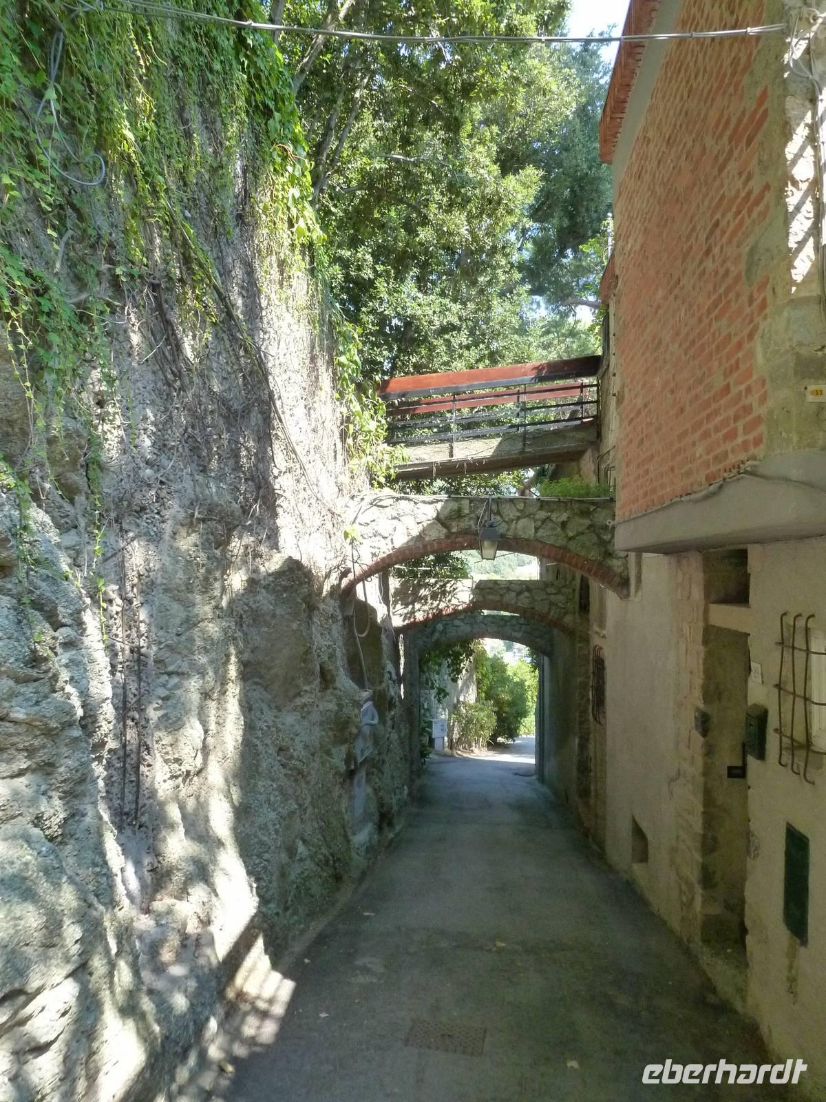 Jetzt beginnt der Aufstieg durch die schmalen Gassen von Bonassola auf den Hausberg „Scernio", den wir aber nur am Rand streifen. Von ca. 180 m Höhe genießen wir den Blick auf das Meer und die weite Bucht von Levanto. Wir spazieren die Uferpromenade entlang und erahnen durch die Ausblicke, das Levanto mit Recht als „Tor der Cinque Terre" bezeichnet wird.